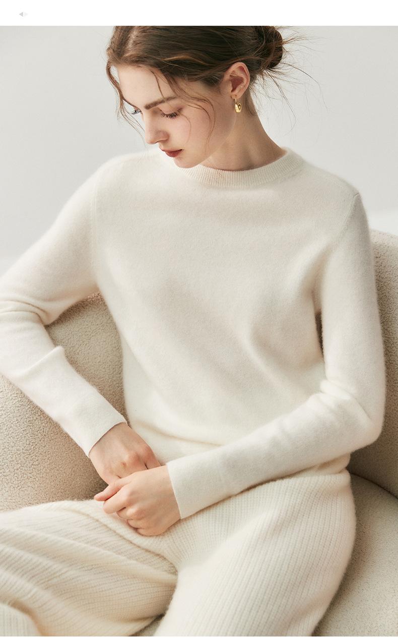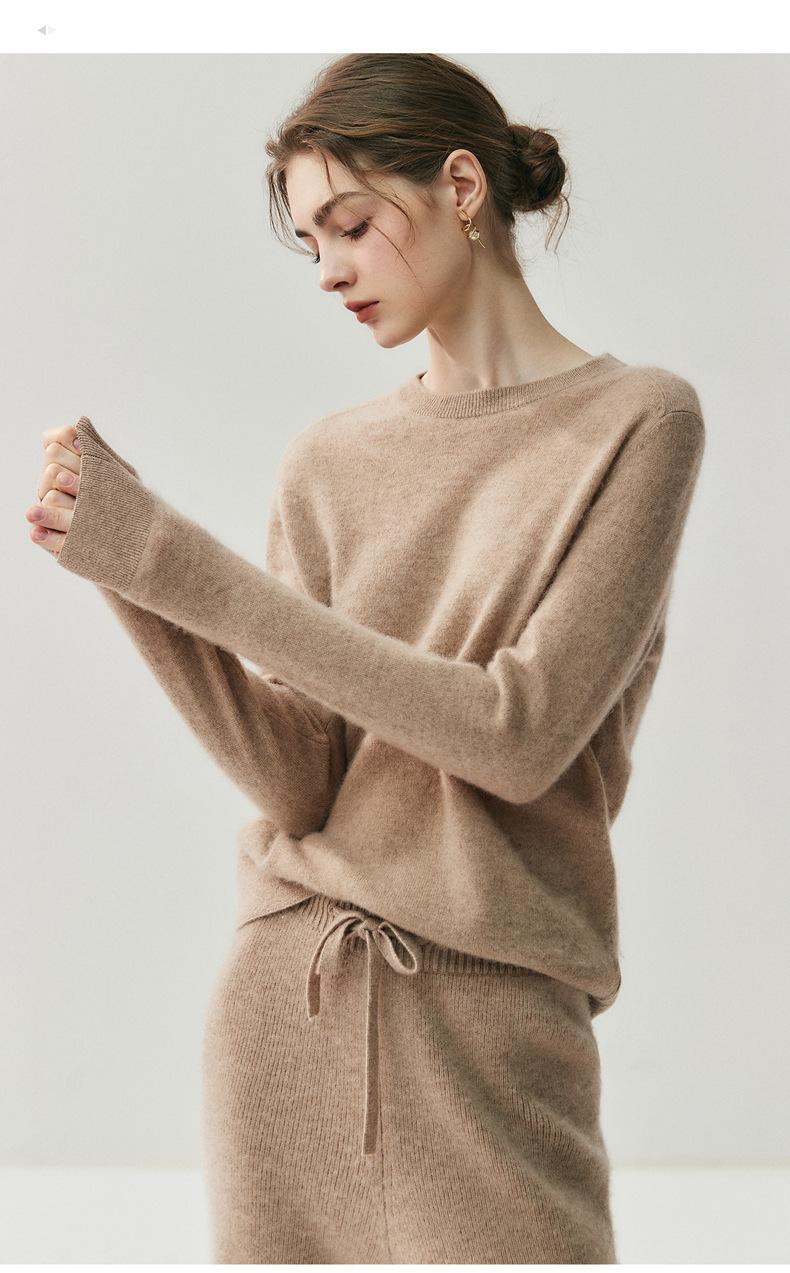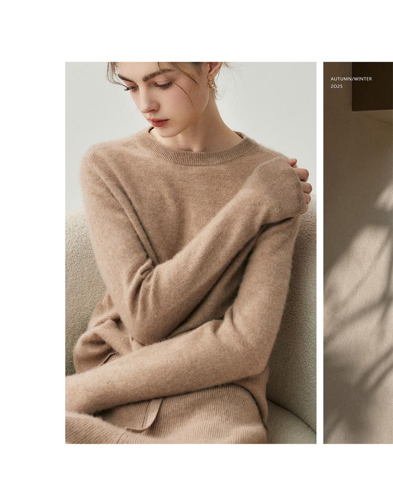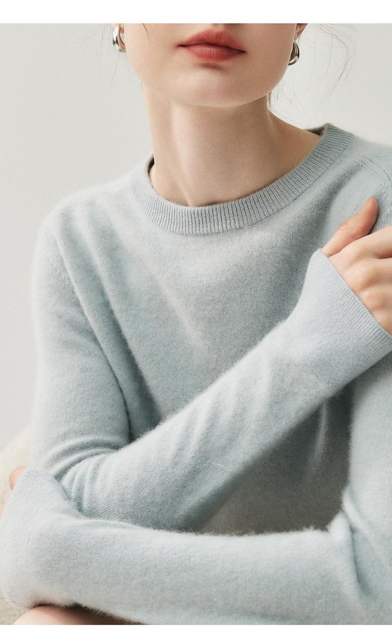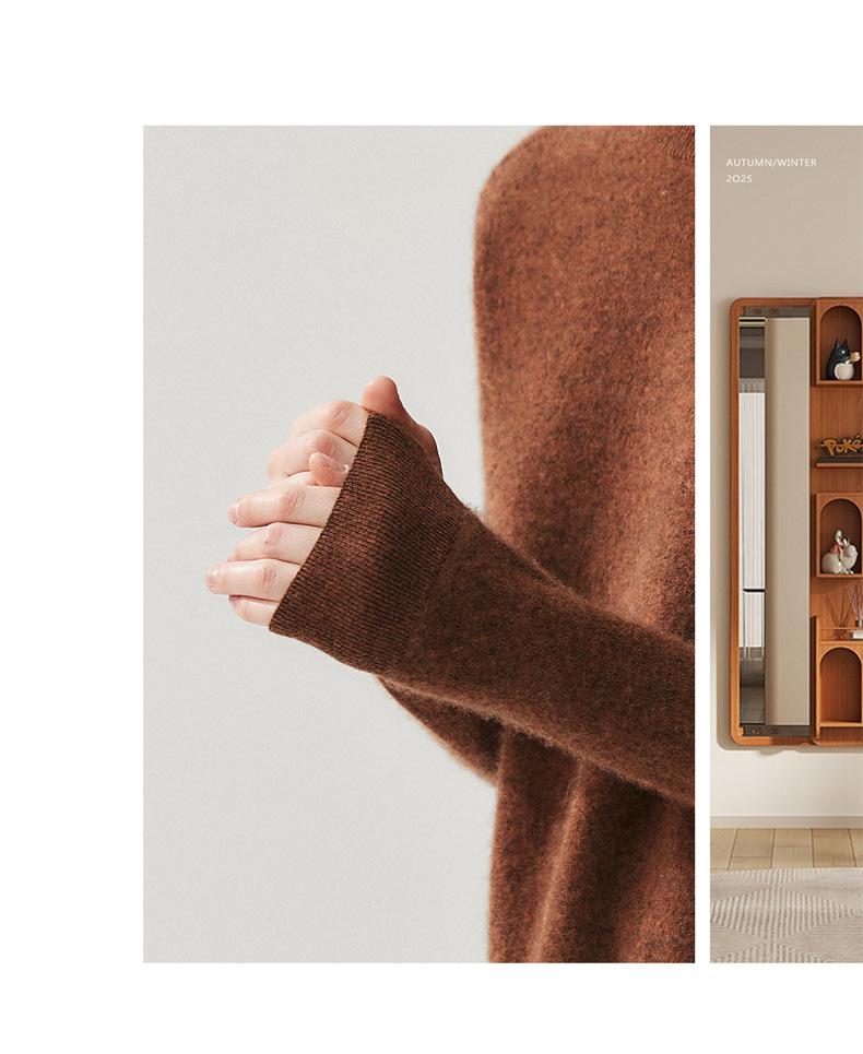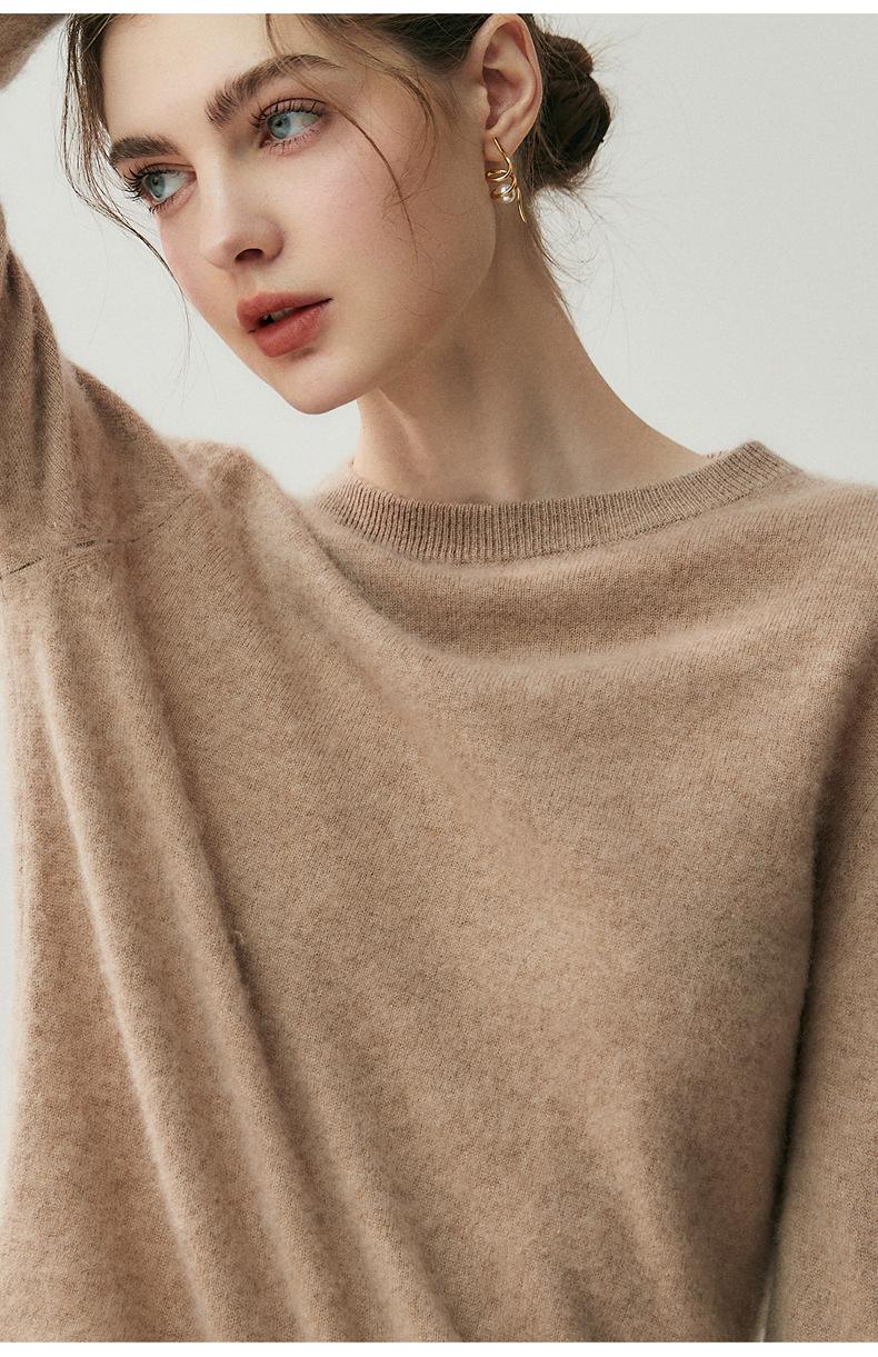 Nueva Otoño/Invierno Color Sólido para Mujer Camiseta Base de Punto de Cachemira Suelta Adelgazante Gruesa Suéter Jersey Cuello Redondo Manga Larga
