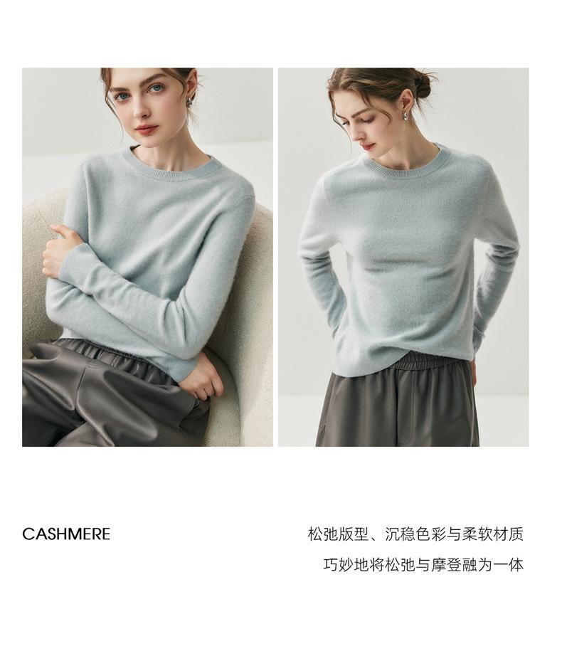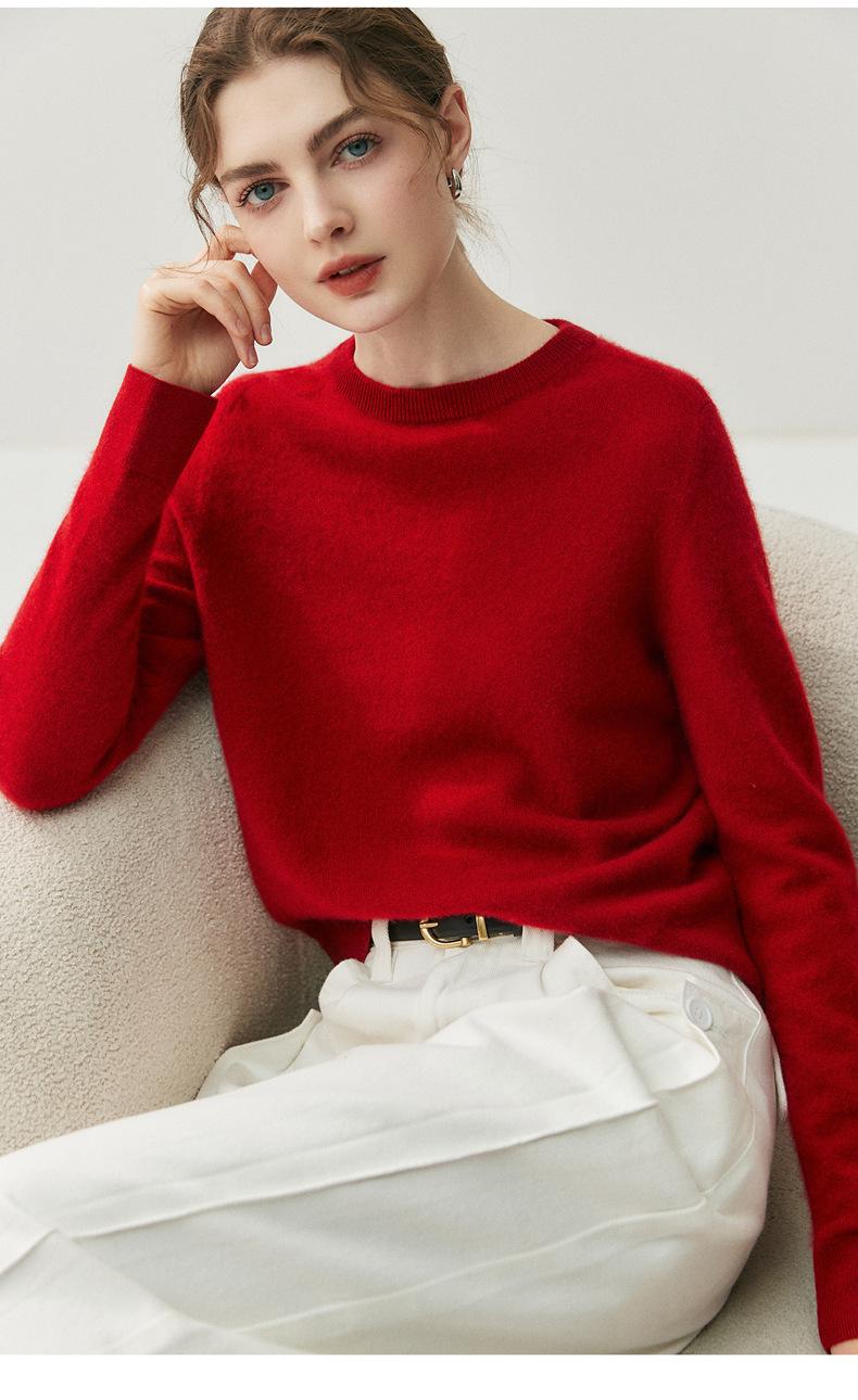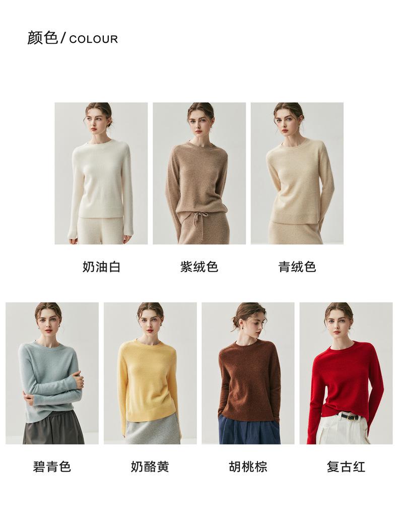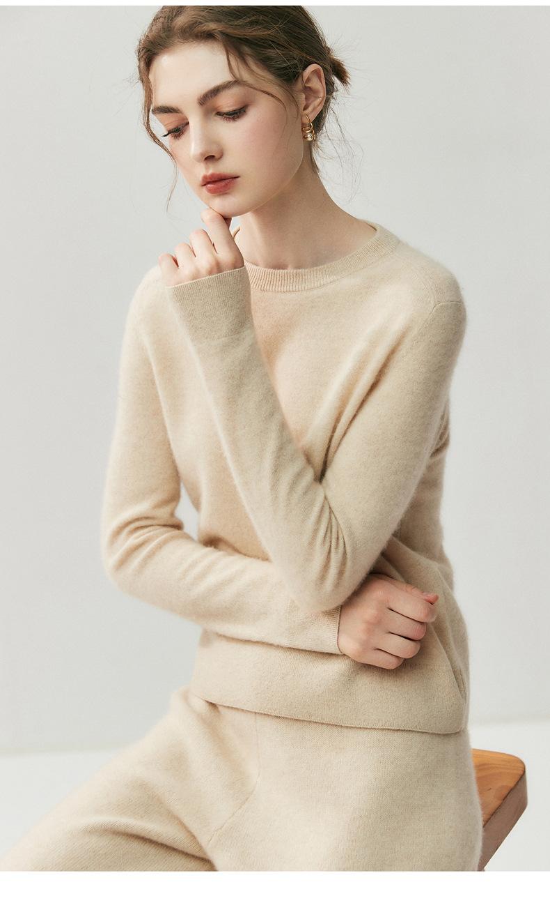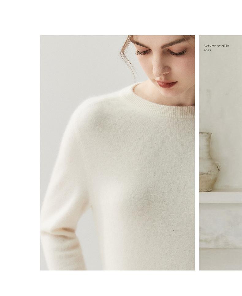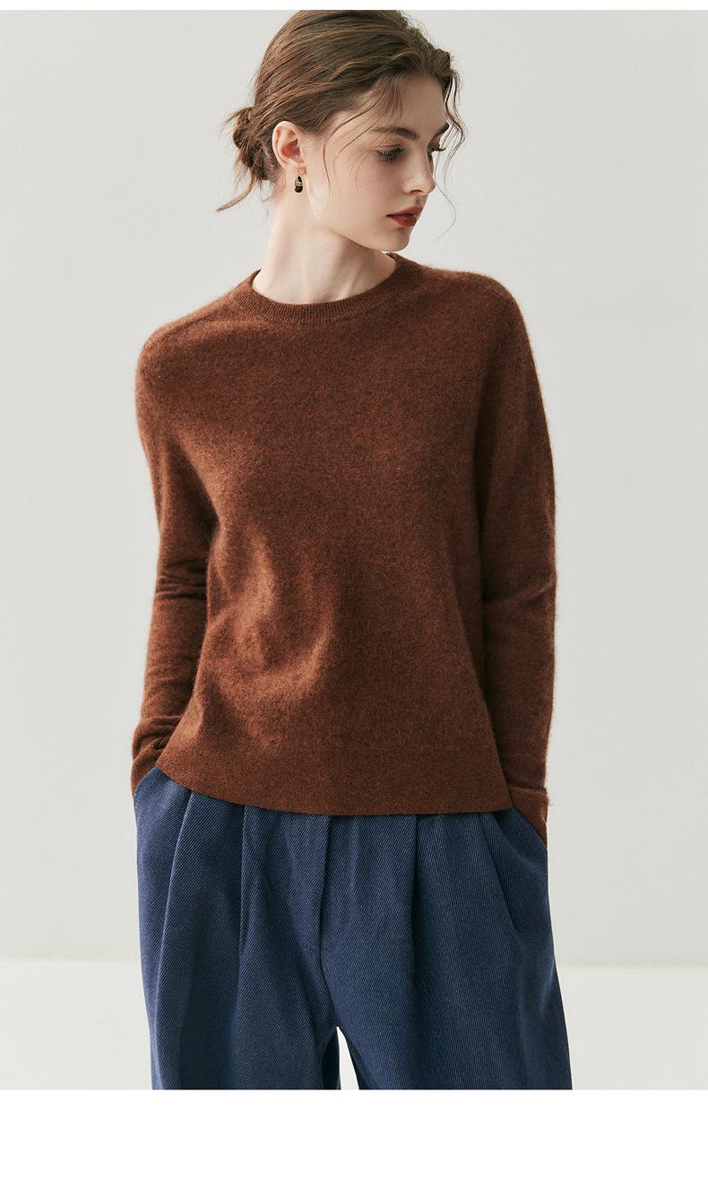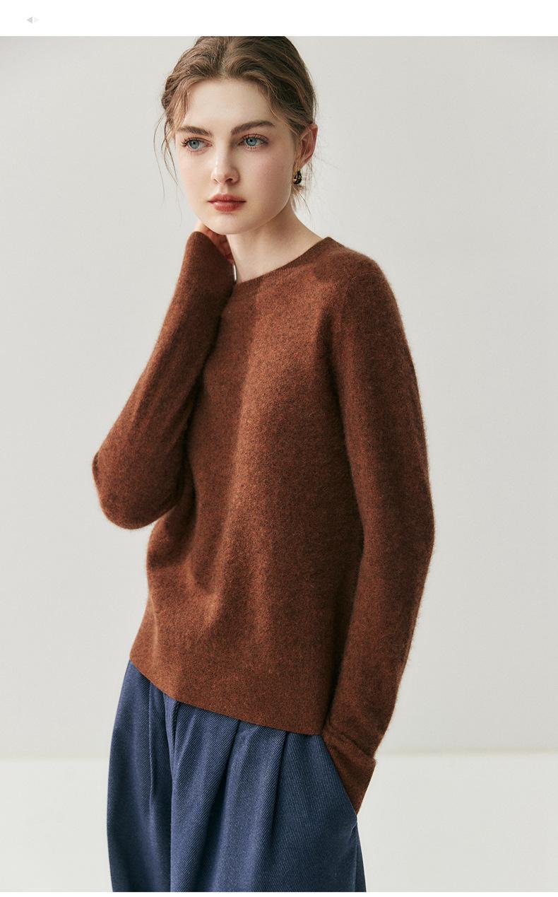 Nueva Otoño/Invierno Color Sólido para Mujer Camiseta Base de Punto de Cachemira Suelta Adelgazante Gruesa Suéter Jersey Cuello Redondo Manga Larga