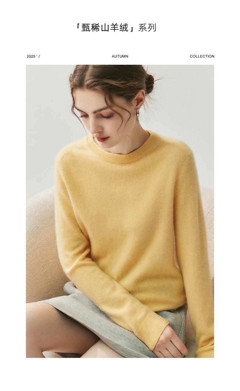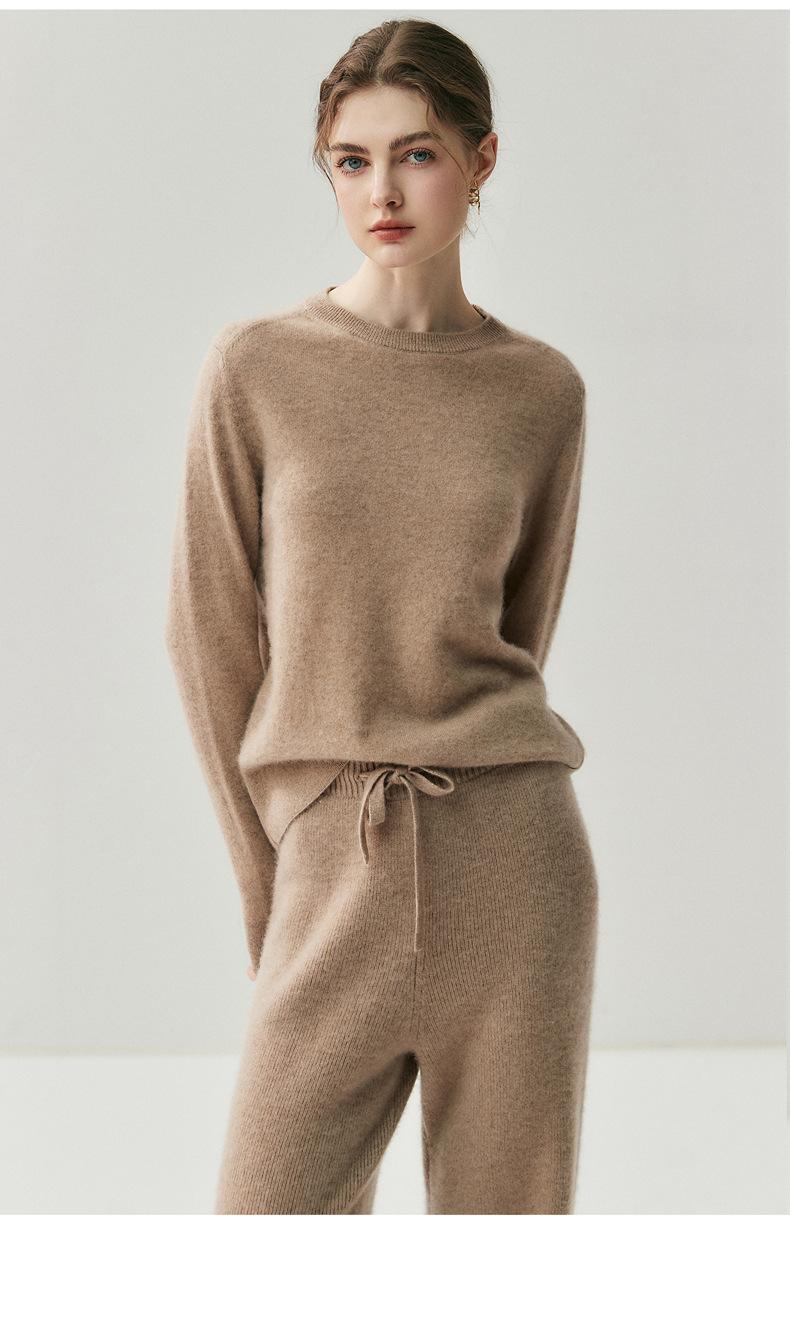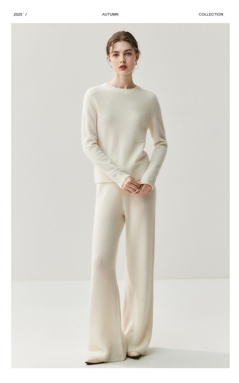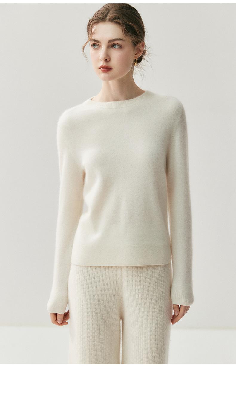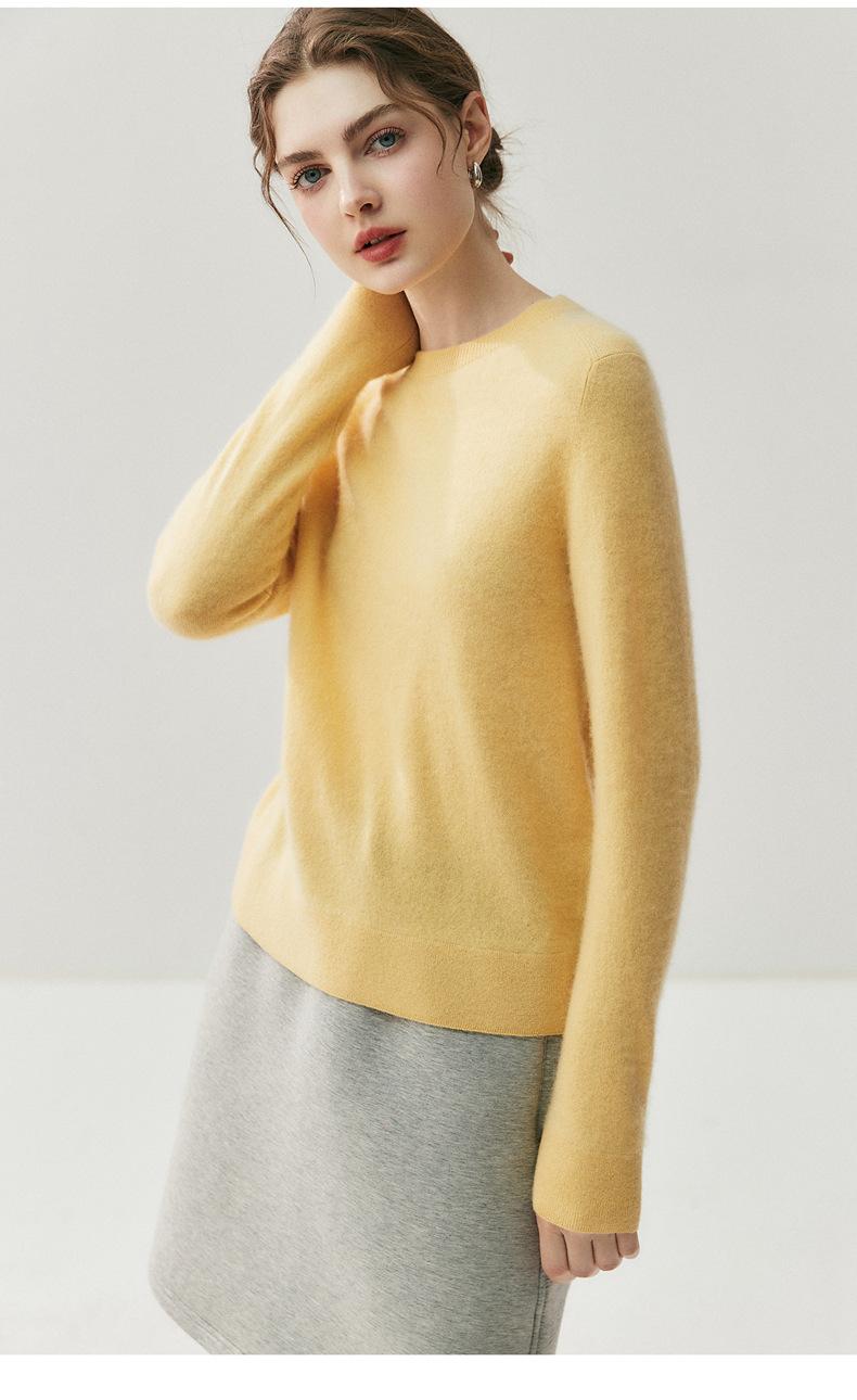 Nueva Otoño/Invierno Color Sólido para Mujer Camiseta Base de Punto de Cachemira Suelta Adelgazante Gruesa Suéter Jersey Cuello Redondo Manga Larga
