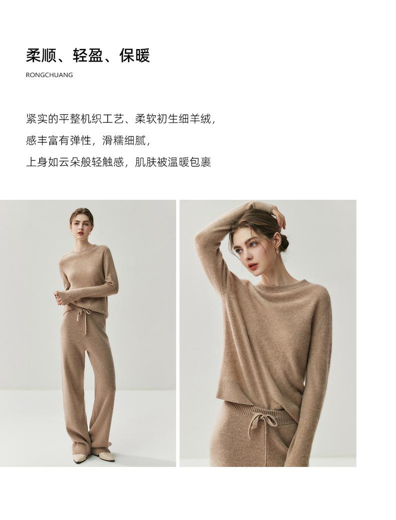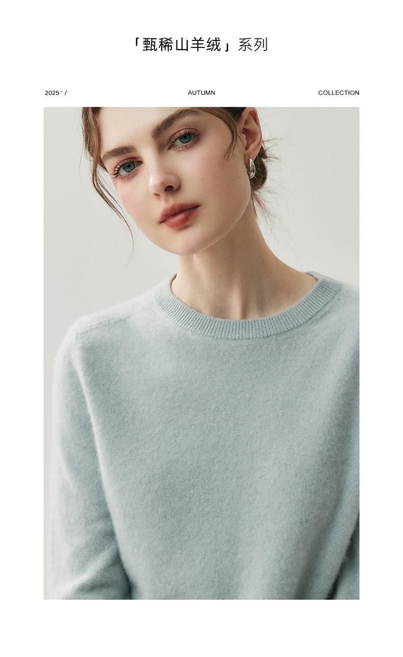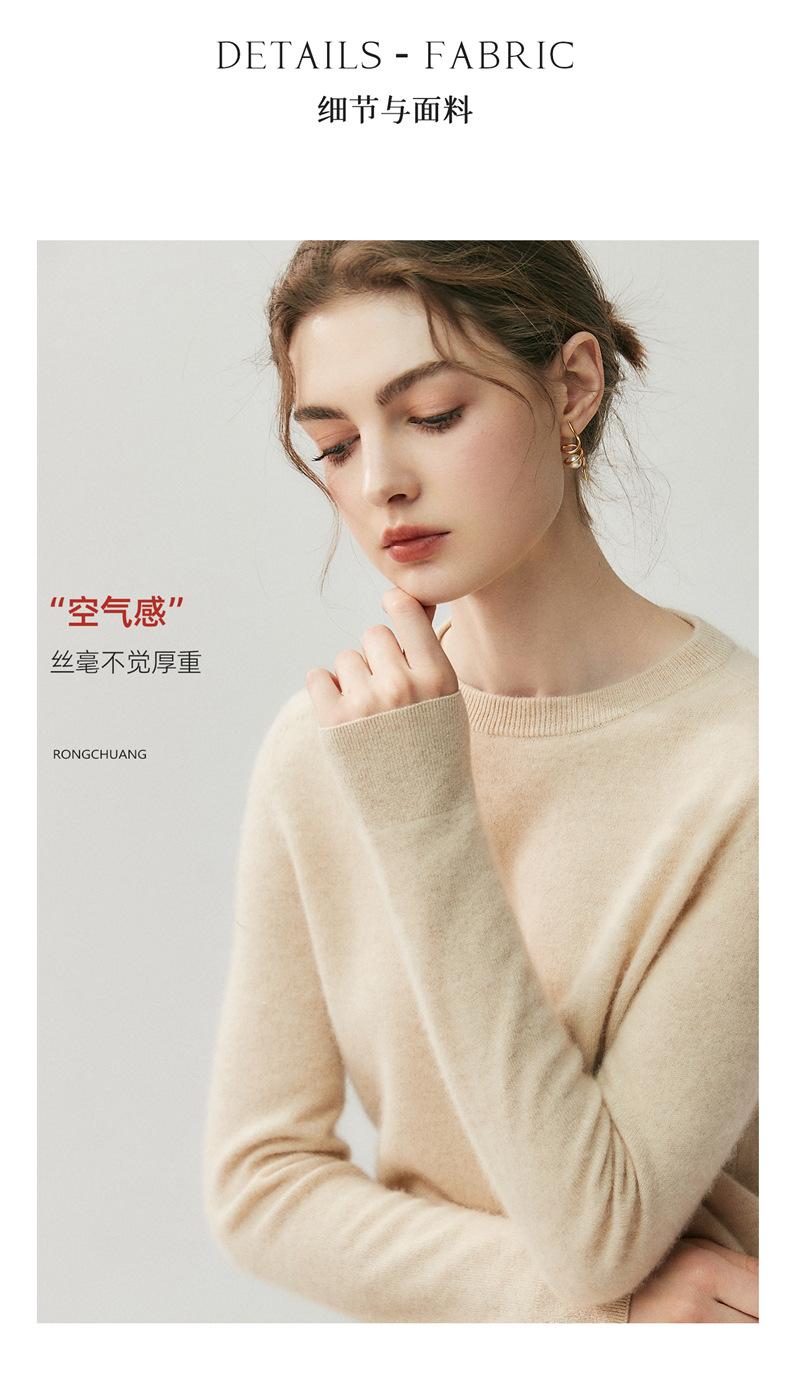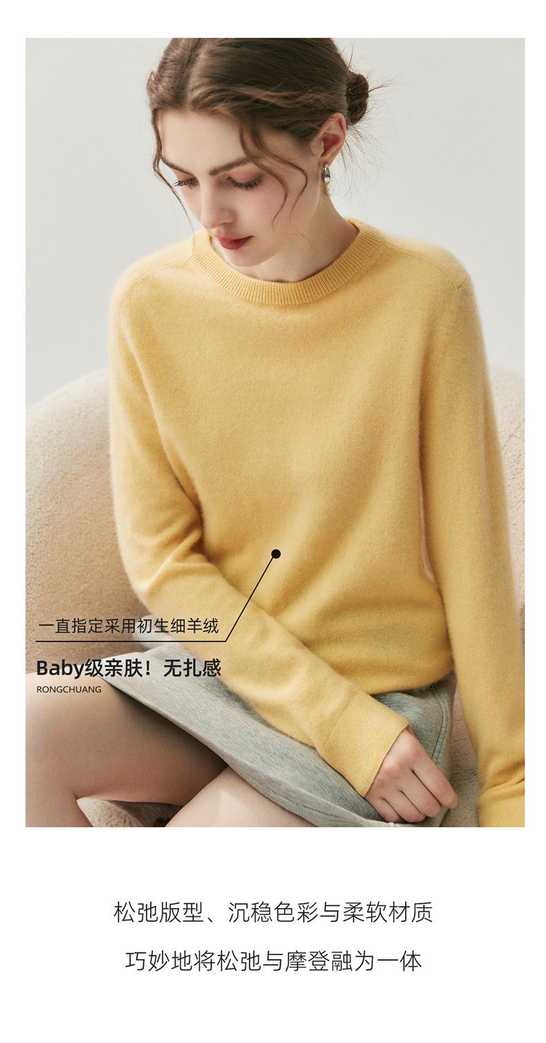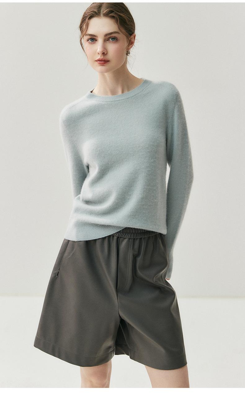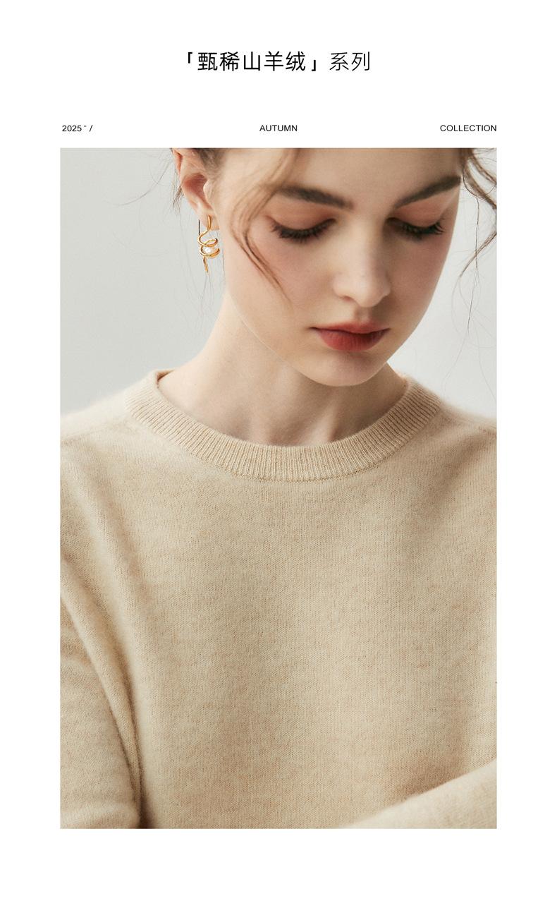 Nueva Otoño/Invierno Color Sólido para Mujer Camiseta Base de Punto de Cachemira Suelta Adelgazante Gruesa Suéter Jersey Cuello Redondo Manga Larga