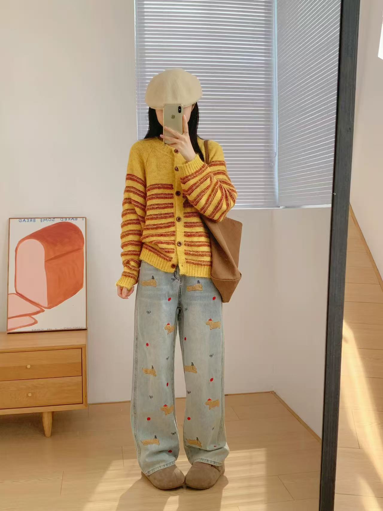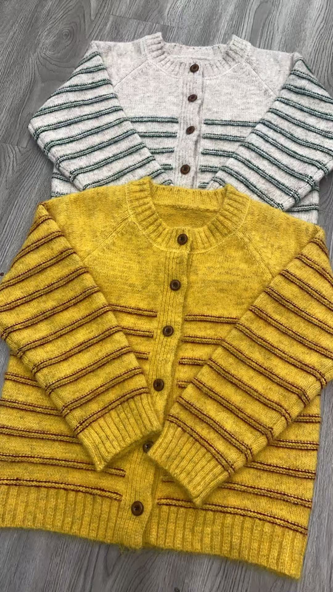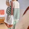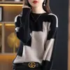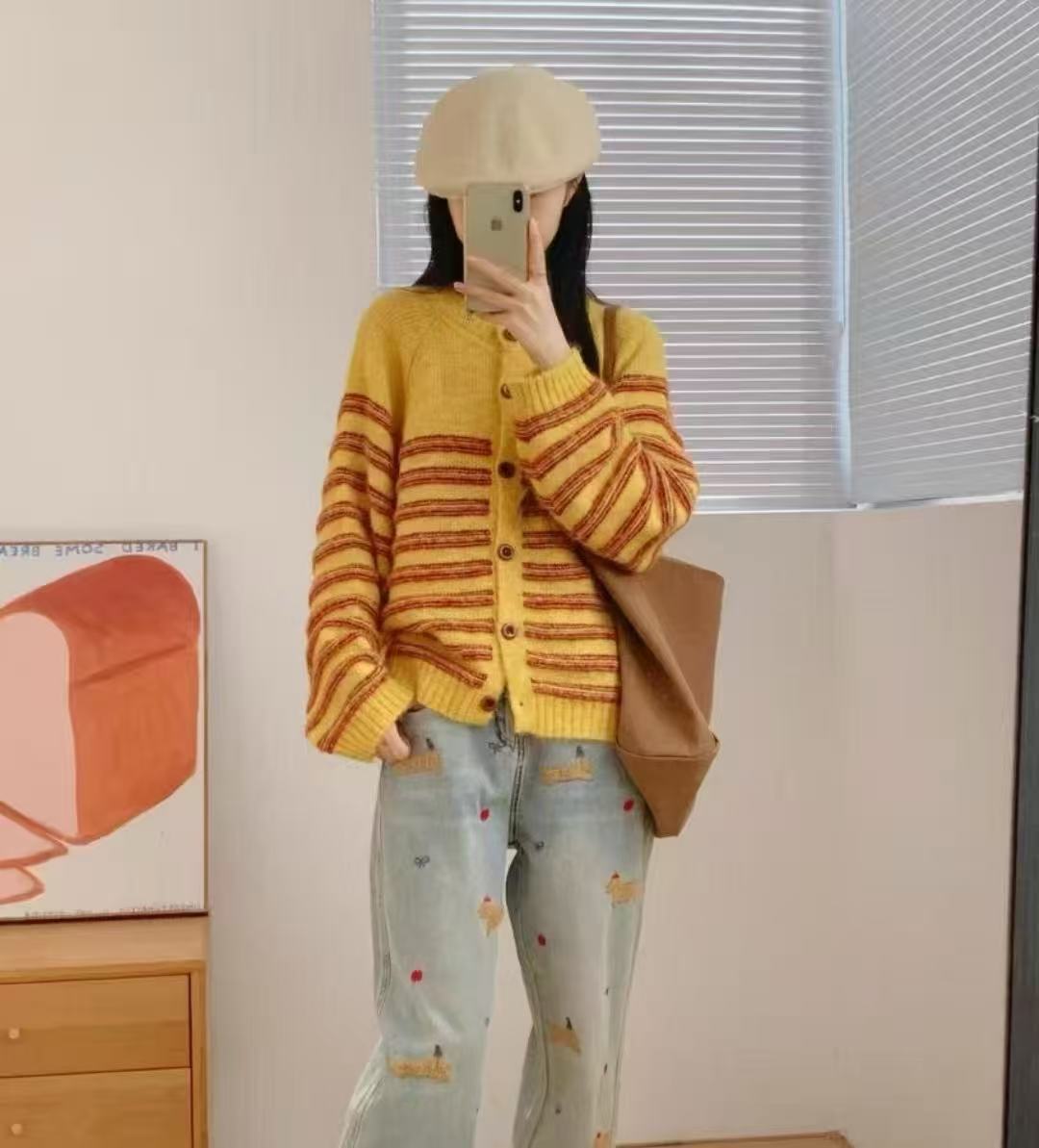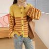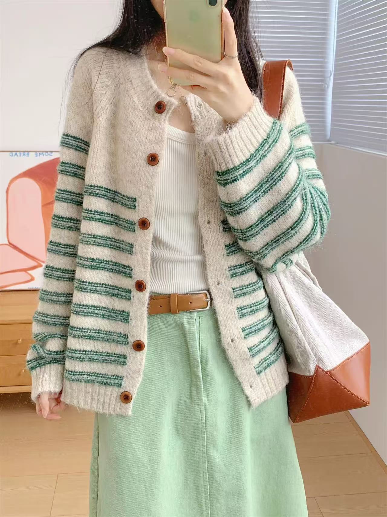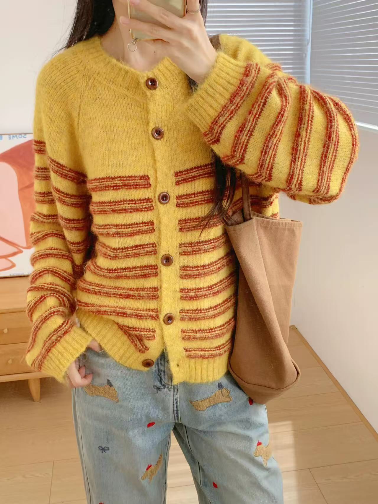 Retiro en Mostrador Marca Grande Etiqueta Cortada Ropa de Mujer Estilo Holgazán Suéter Rayado Mujer Otoño Invierno Retro Temperamento Grueso Top de Punto