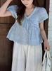 Camisa Francesa de Encaje de Manga Corta con Cuello en V para Mujer 2025 Verano Nuevo Estilo Coreano Dulce y Versátil Camisa Corta para Personas Pequeñas