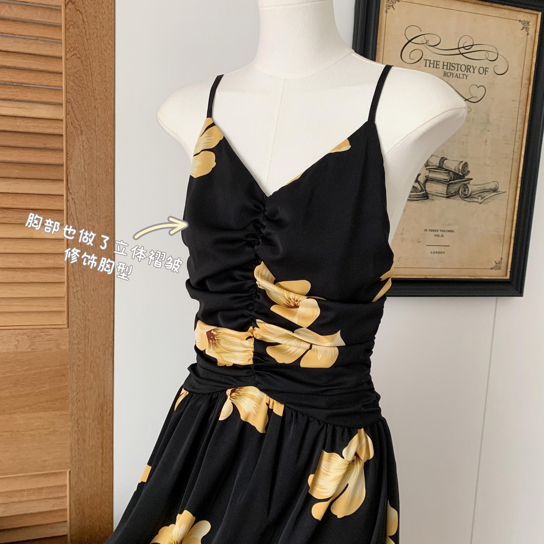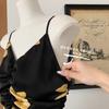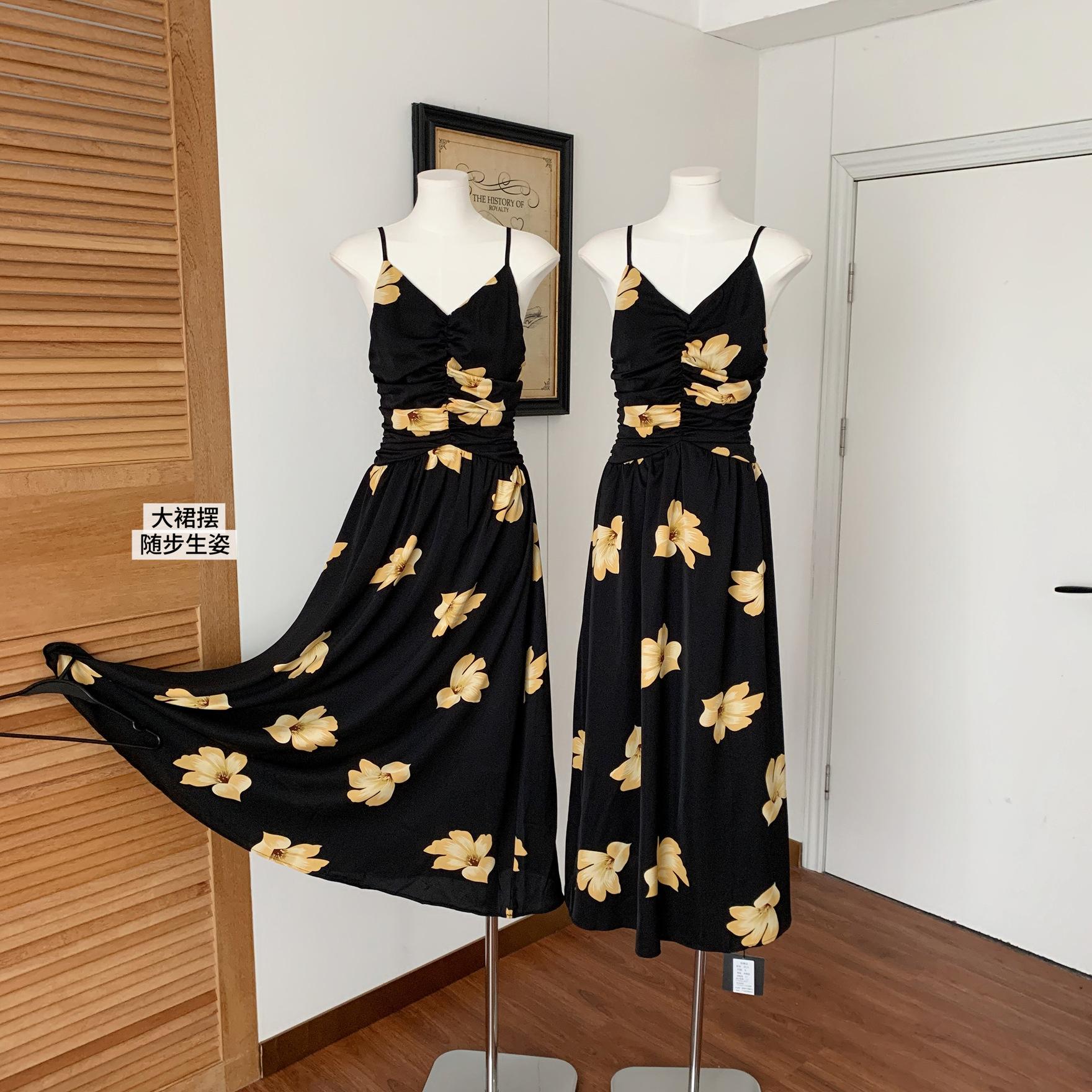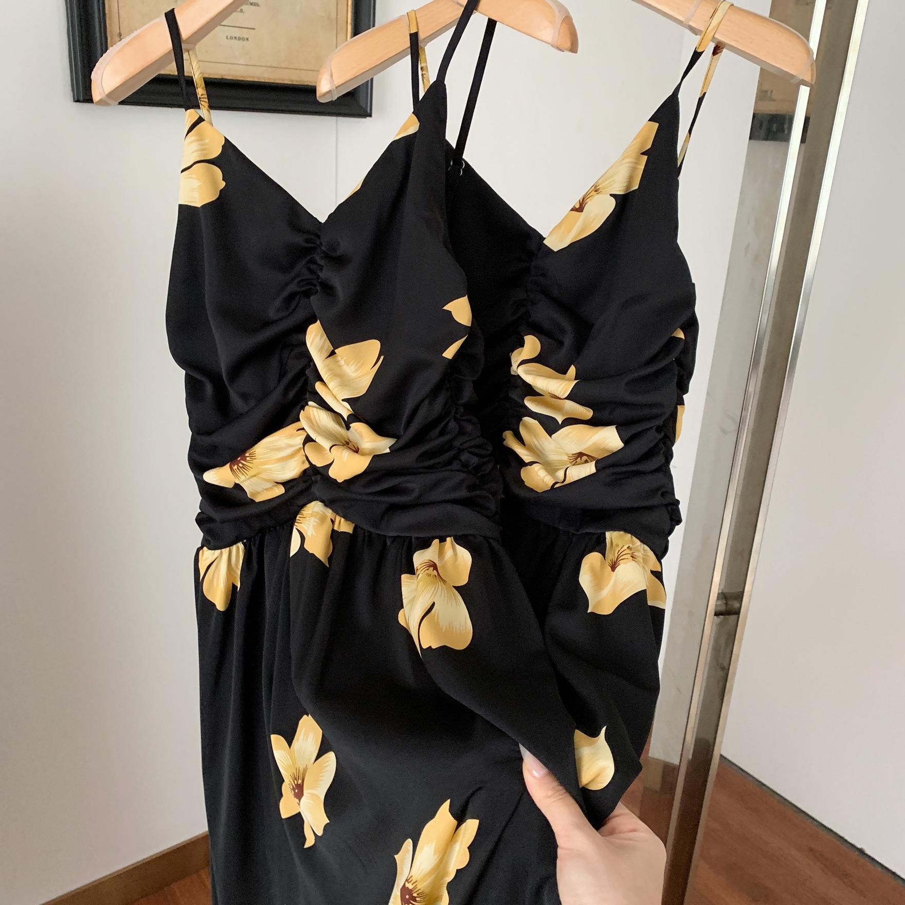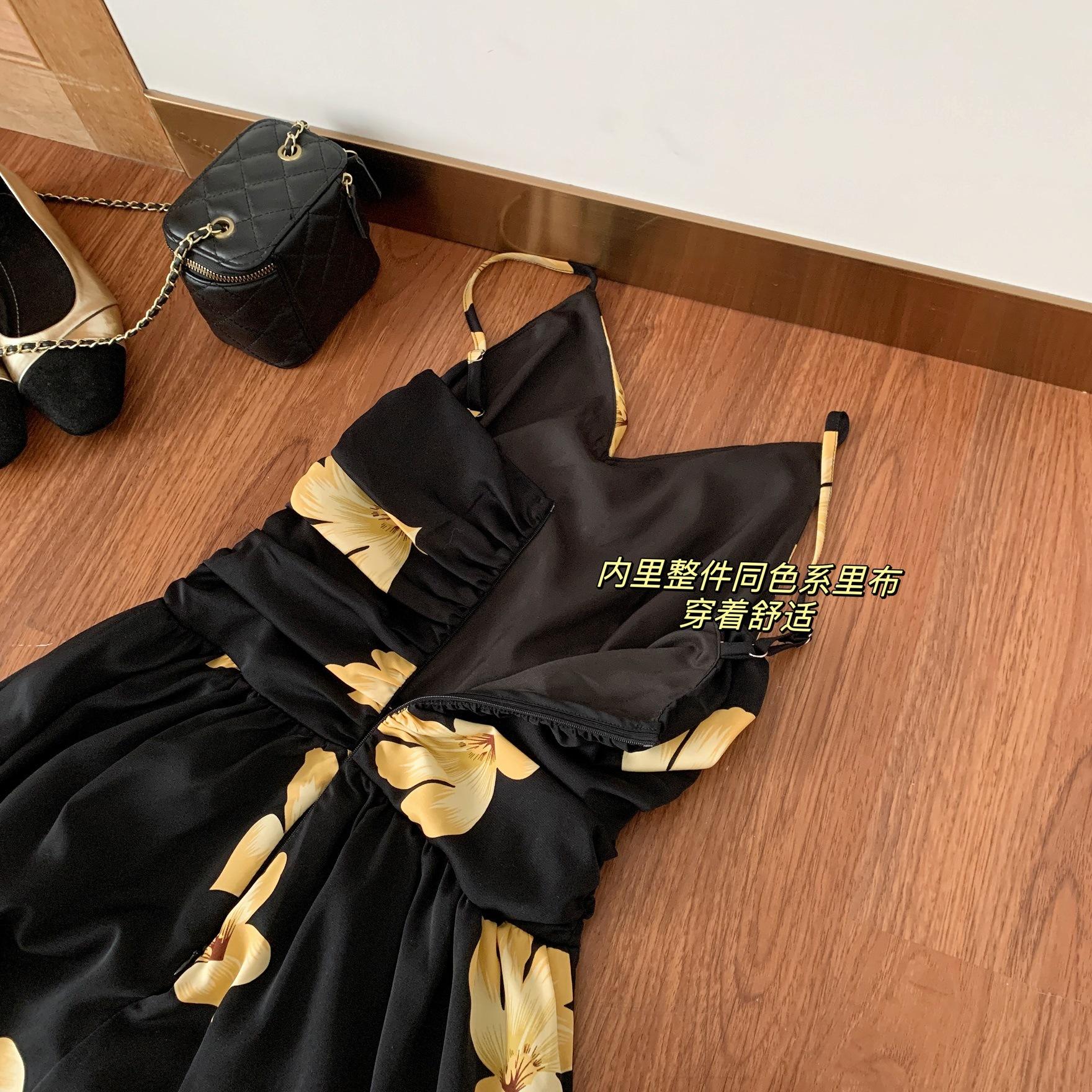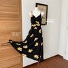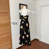 Vestido de tirantes estampado para mujer 2025 Verano Nuevo Estilo Francés Elegante Falda Negra
