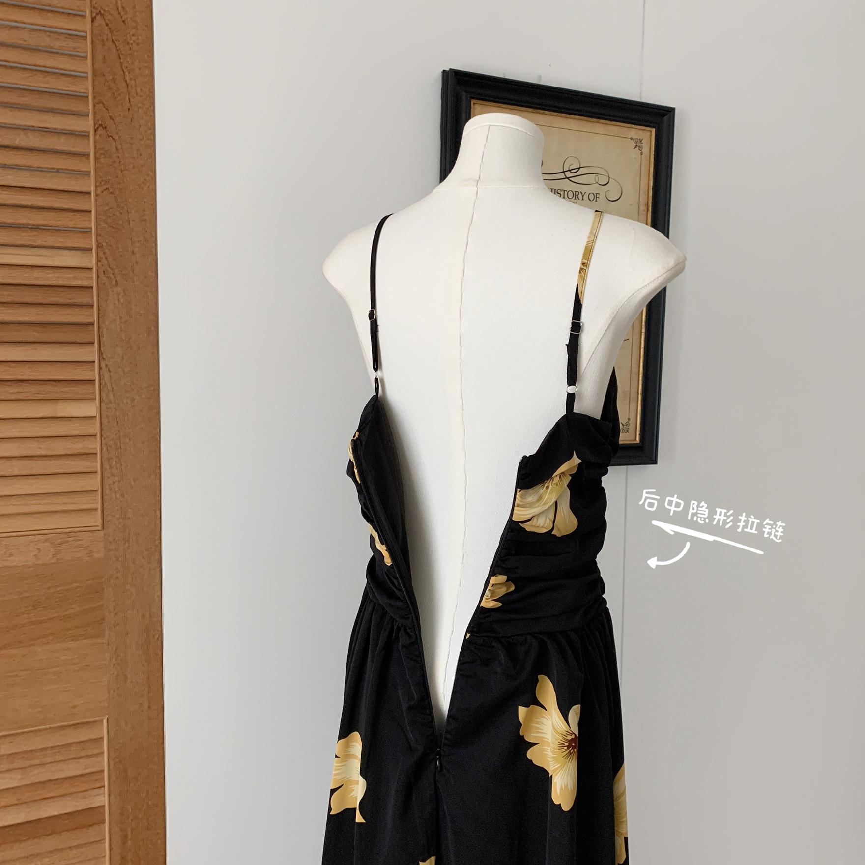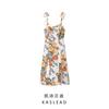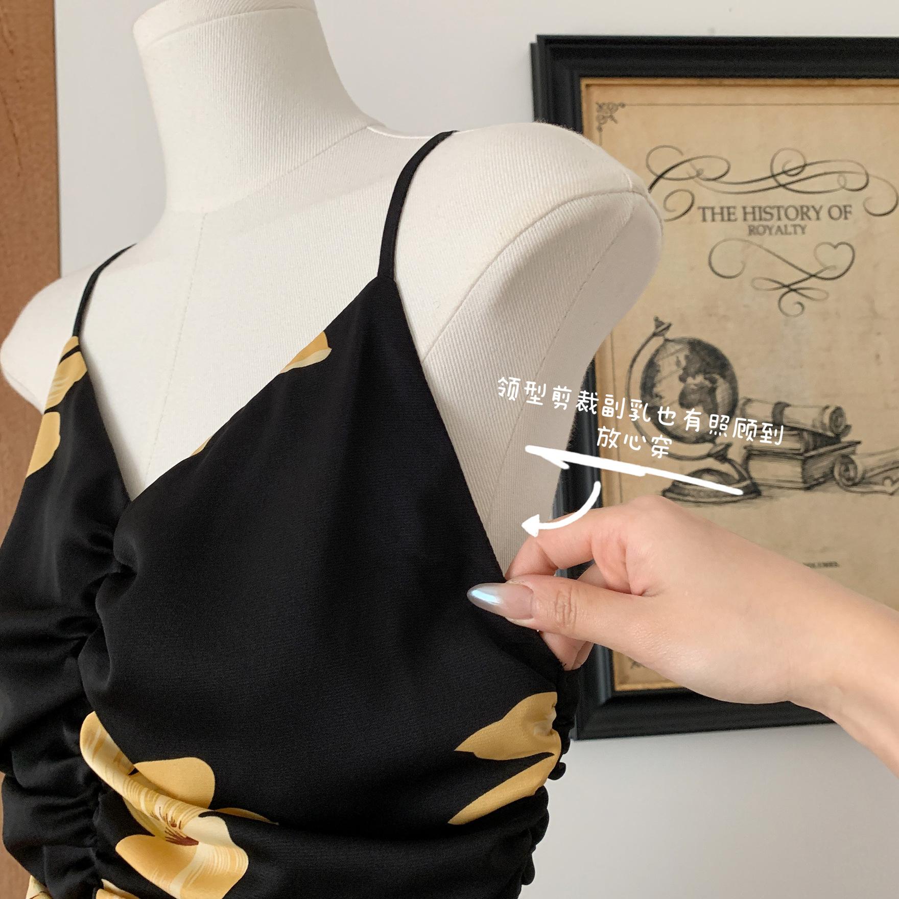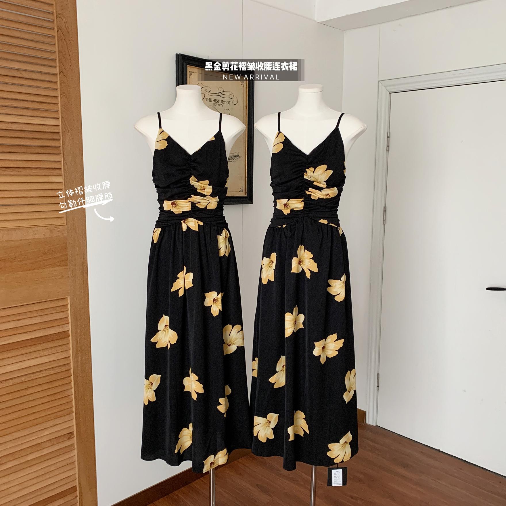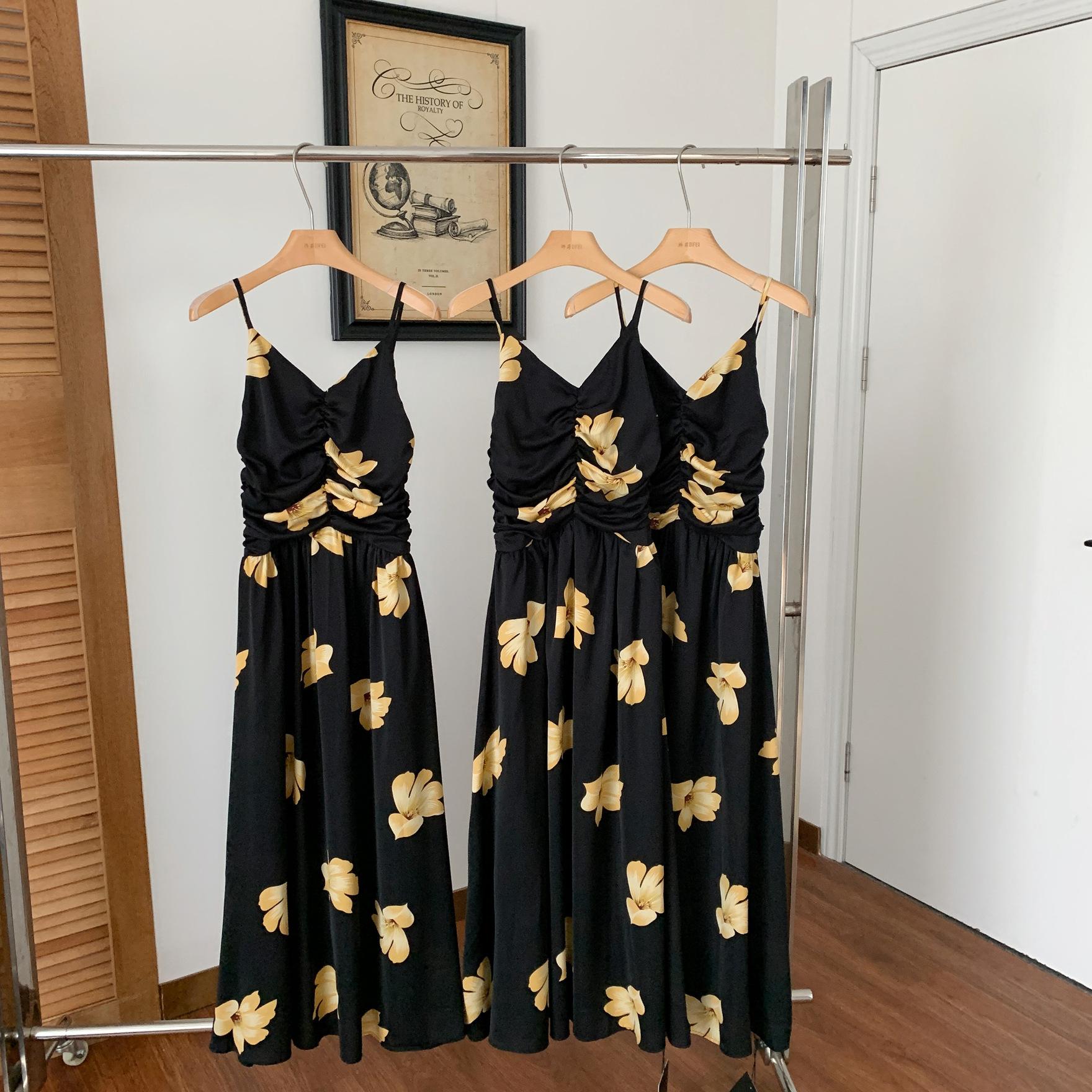 Vestido de tirantes estampado para mujer 2025 Verano Nuevo Estilo Francés Elegante Falda Negra