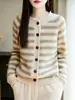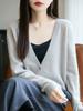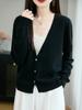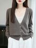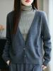 Cárdigan de Punto de Lana Pura de Otoño/Invierno 2025 con Cuello en V Profundo de Manga Larga para Mujer, Color Sólido, Holgado, Versátil, Abrigo
