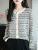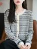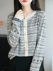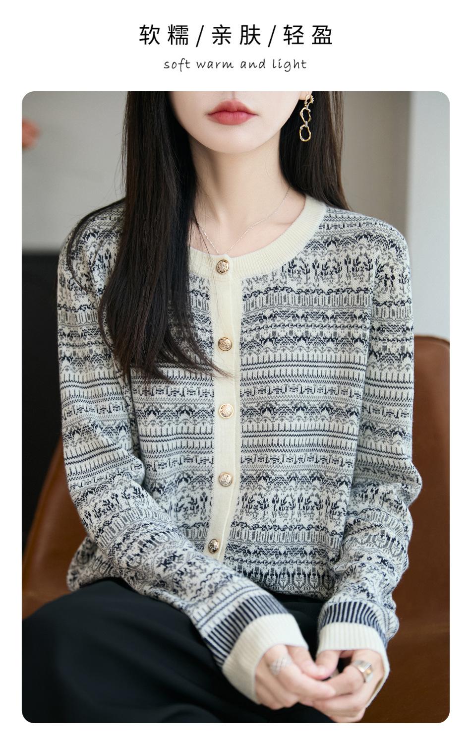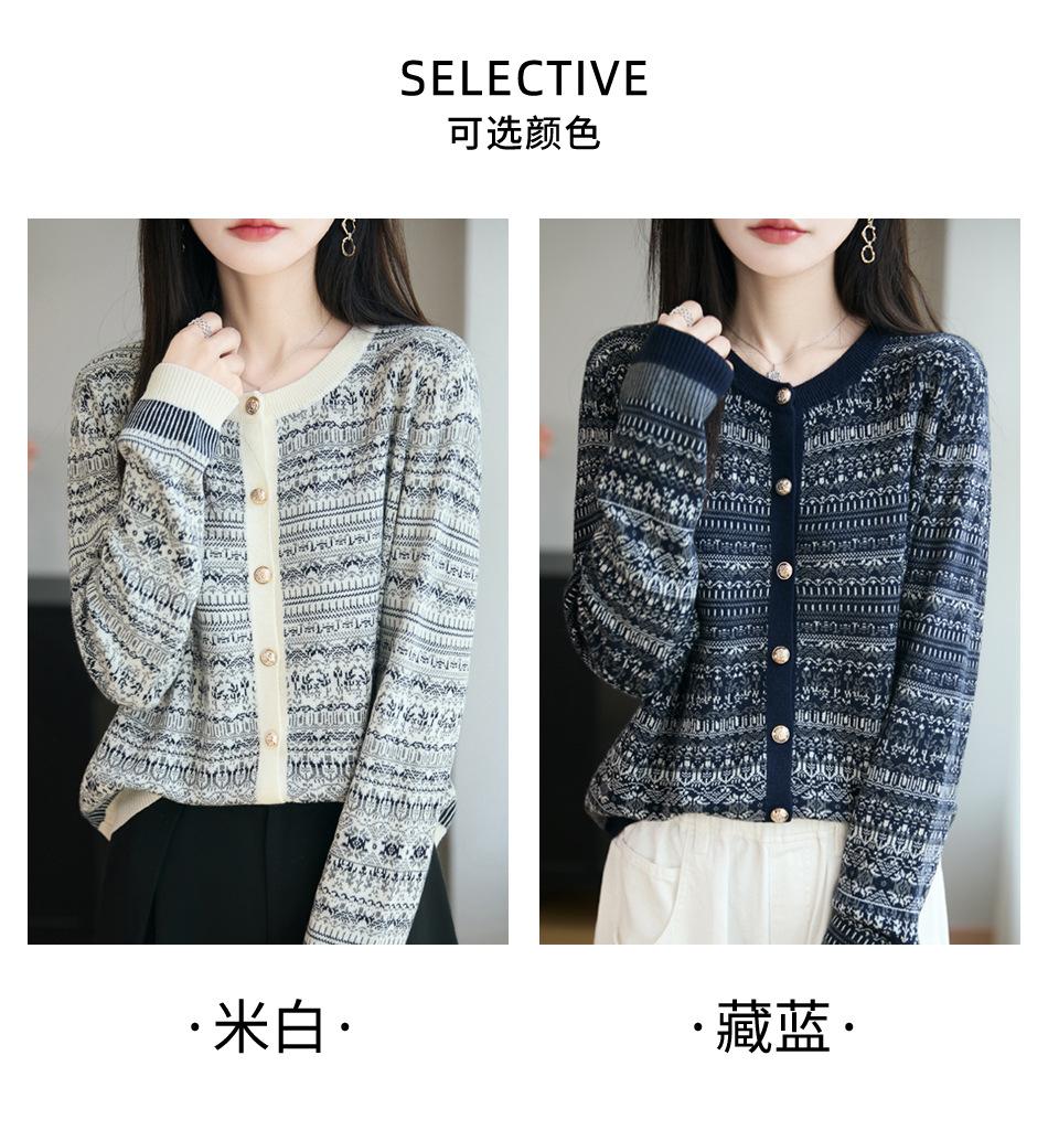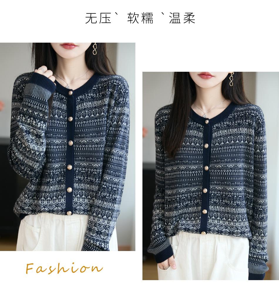 Cárdigan de Punto de Lana Merino Fina de Otoño Temprano 2025 con Cuello Redondo y Manga Larga para Mujer, Temperamento, Jacquard, Holgado, Top Exterior