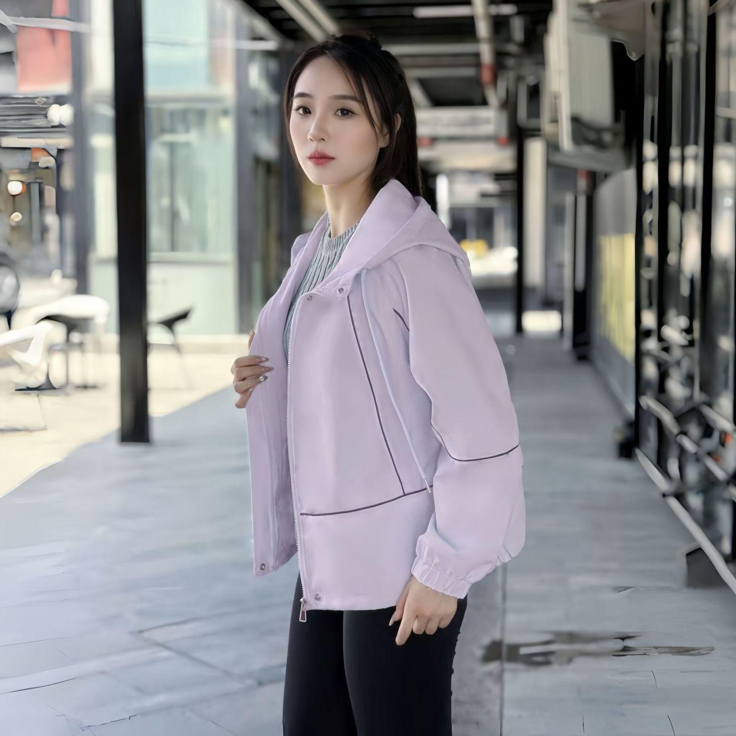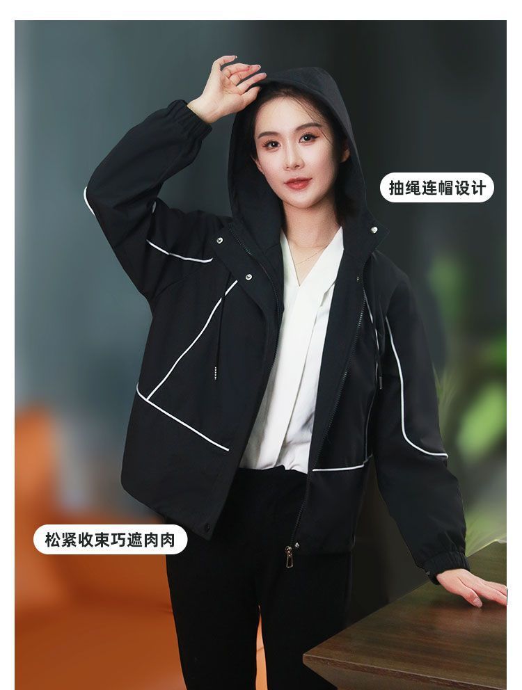 Gabardina corta versátil de moda 2025 para mujer, estilo primavera y otoño, gruesa, corta, con capucha, softshell, cortavientos, marea