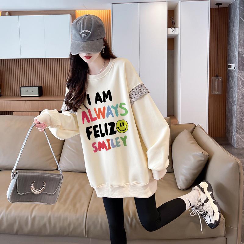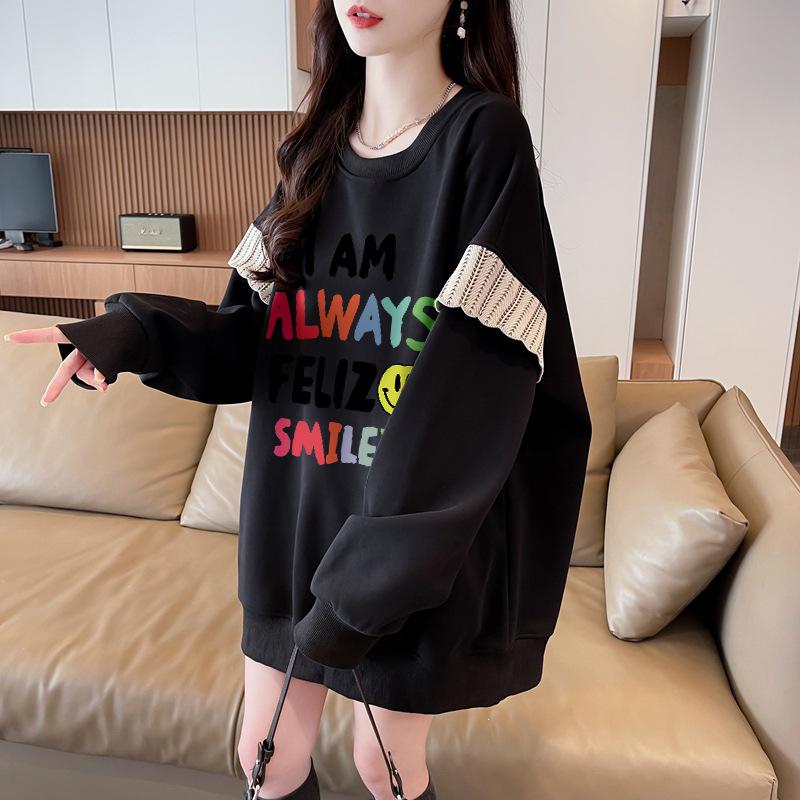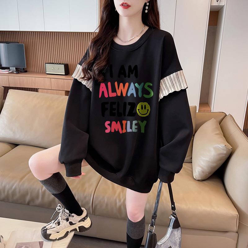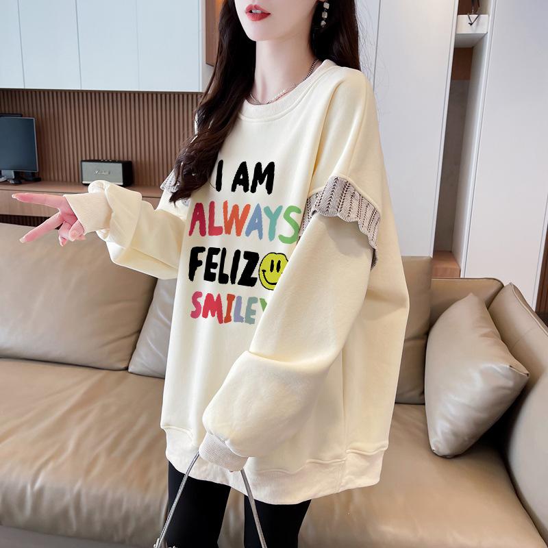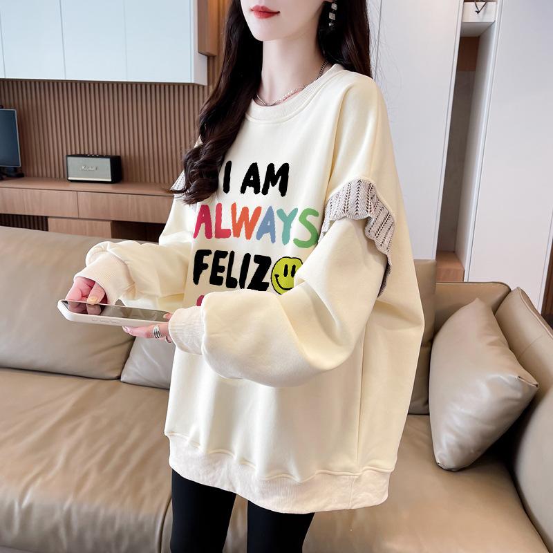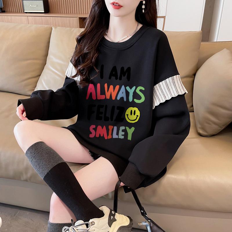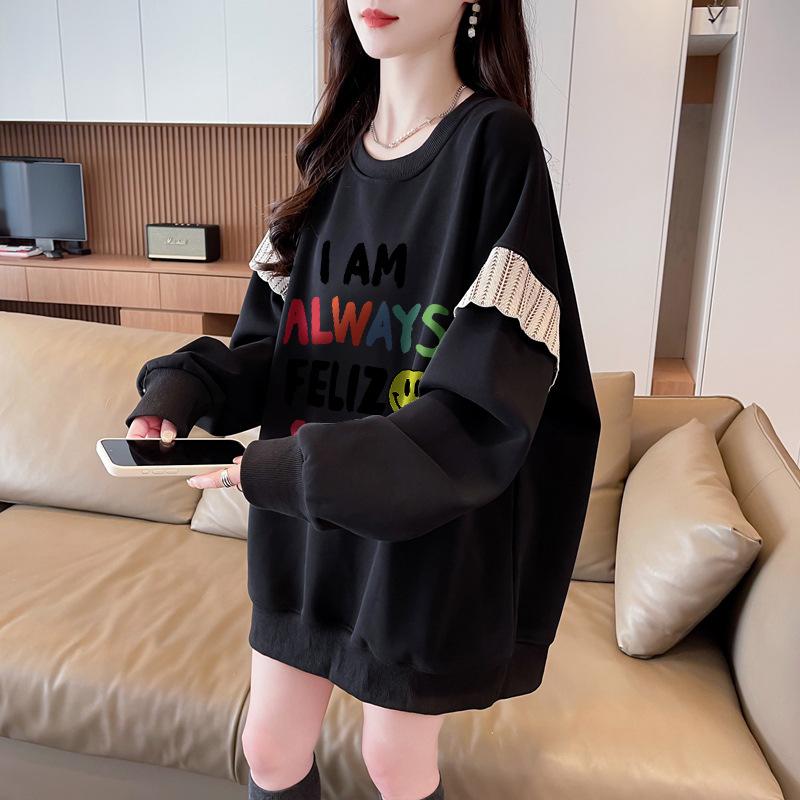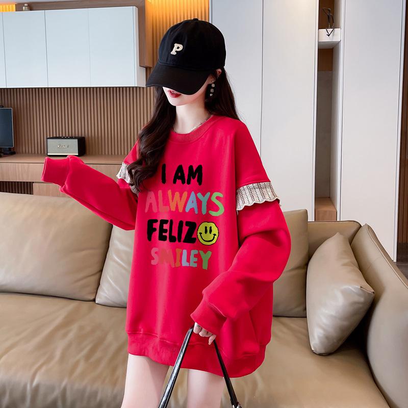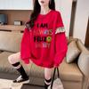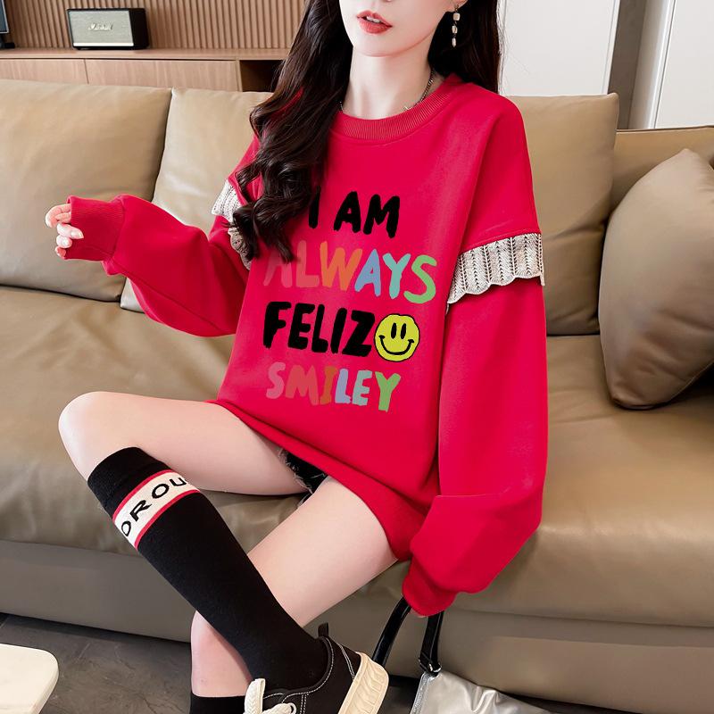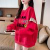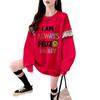 Sudadera de Cuello Redondo Gruesa con Forro Polar Super Fuego de Otoño e Invierno con Estampado de Letras Divertido Chic de Estilo Americano para Mujer
