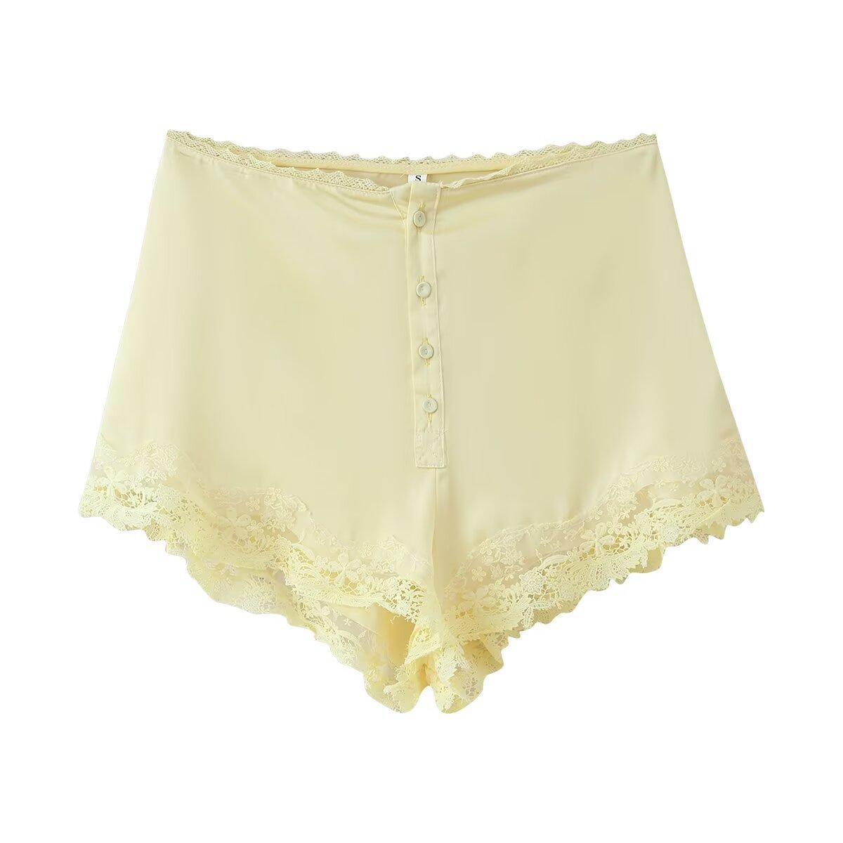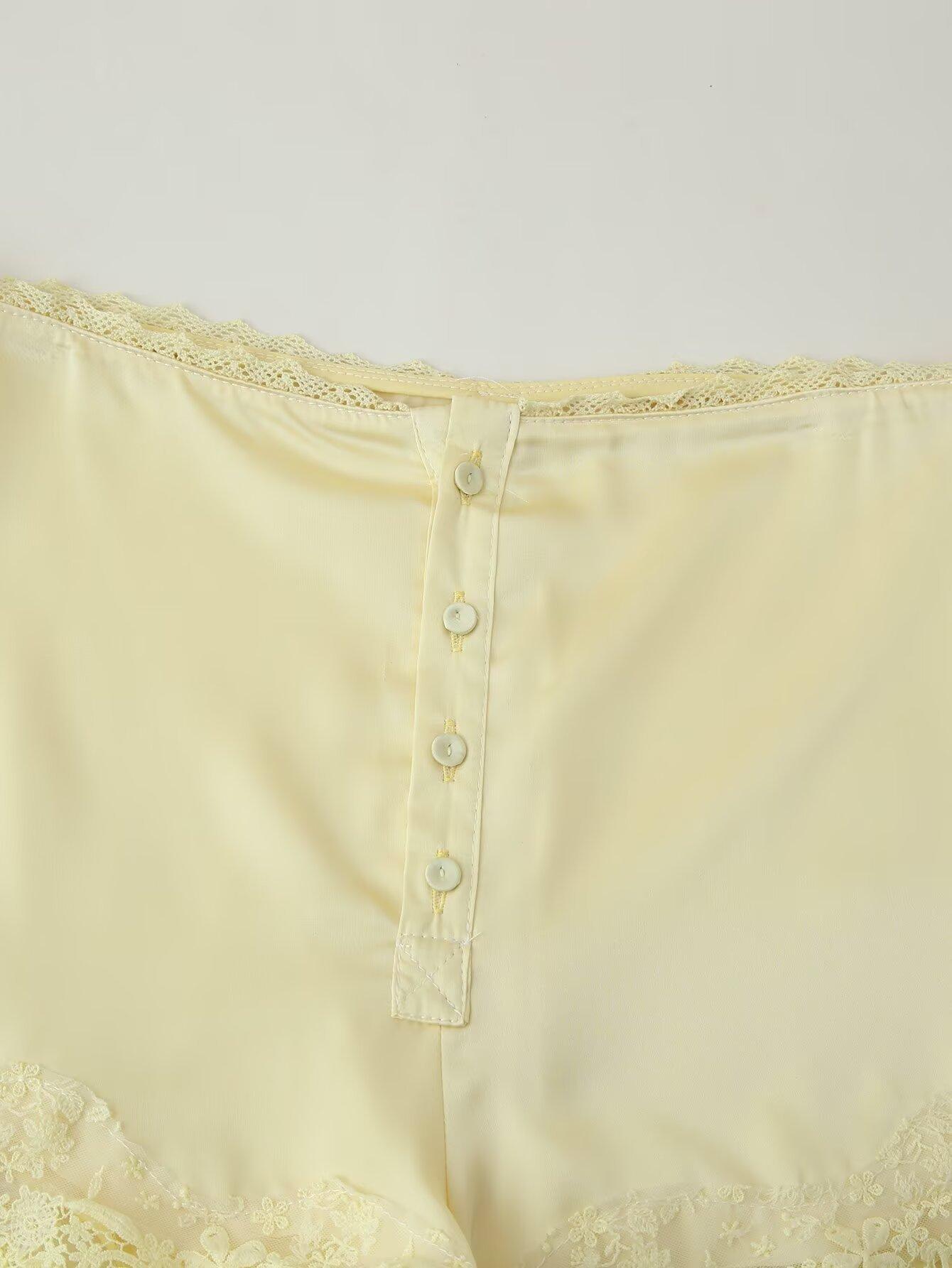 Moda Femenina Europea y Americana Transfronteriza AliExpress Más Vendido Conjunto de Top tipo Lencería de Seda Auténtica + Shorts