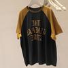 Camiseta holgada de estilo europeo y americano con estampado de letras de manga corta para mujer, verano, nuevo estilo, diseño lavado y desgastado, top básico ins