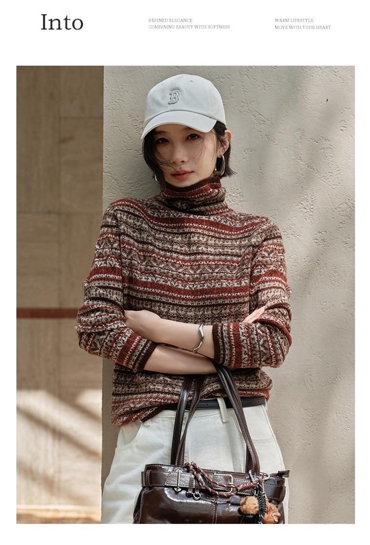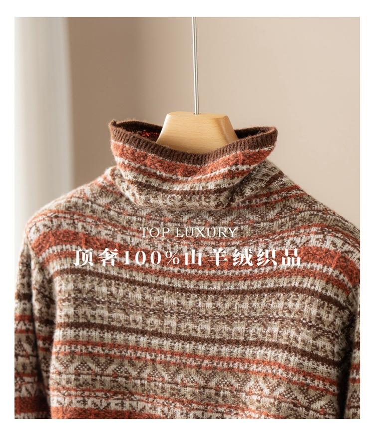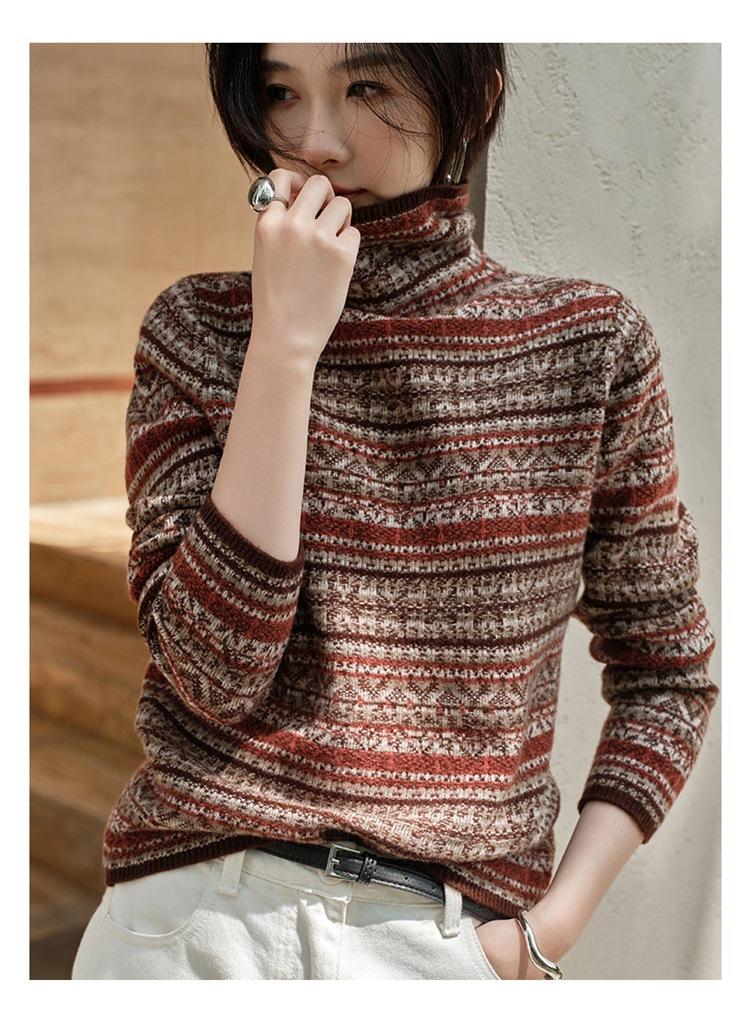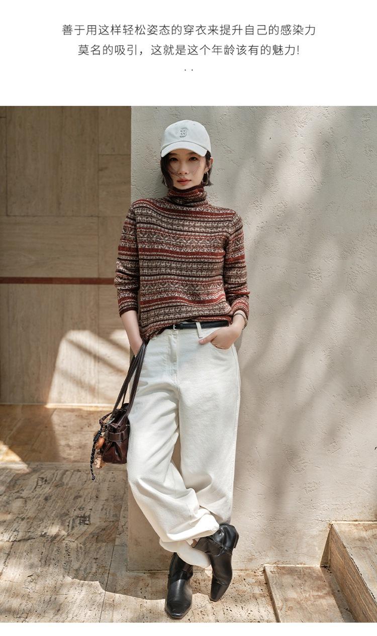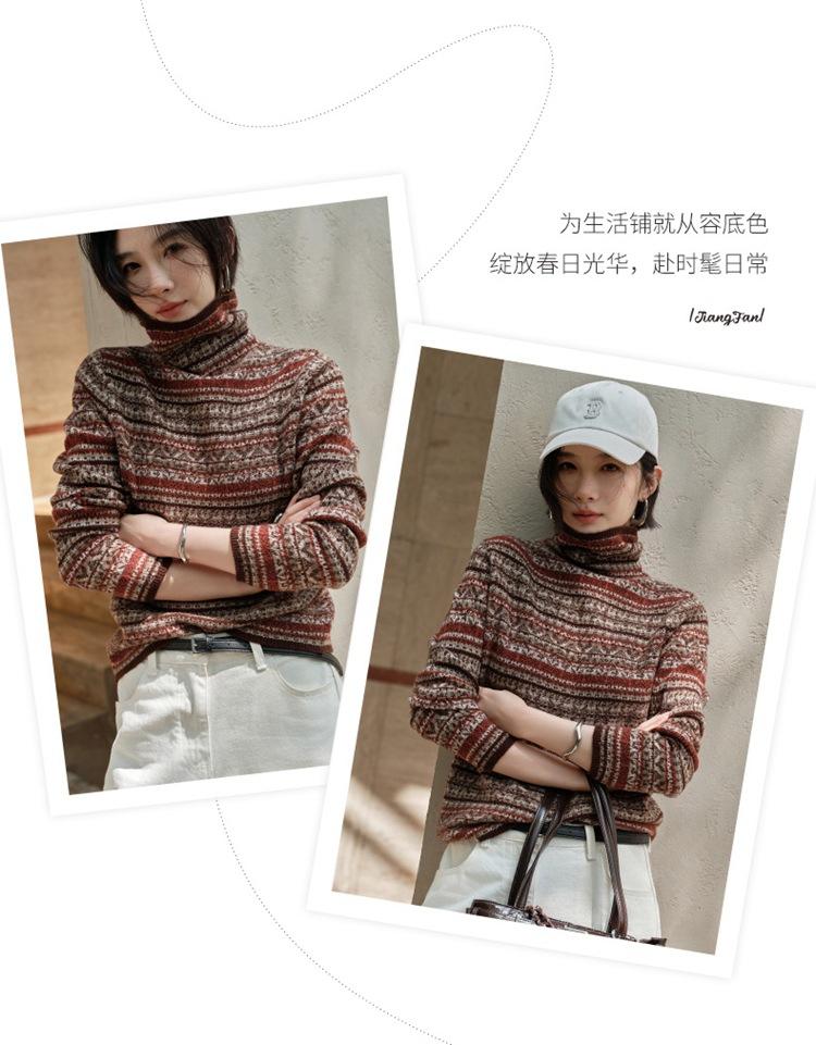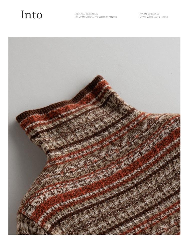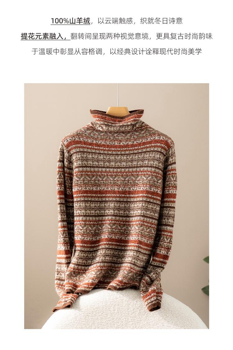Suéter de Cachemira para Mujer 100% Cachemira Pura Otoño/Invierno Nuevo Estilo Cuello Alto Jacquard Manga Larga Jersey Tejido Base