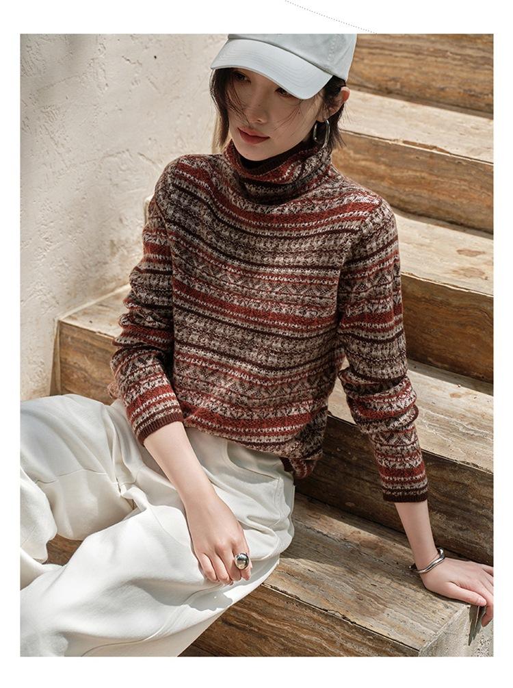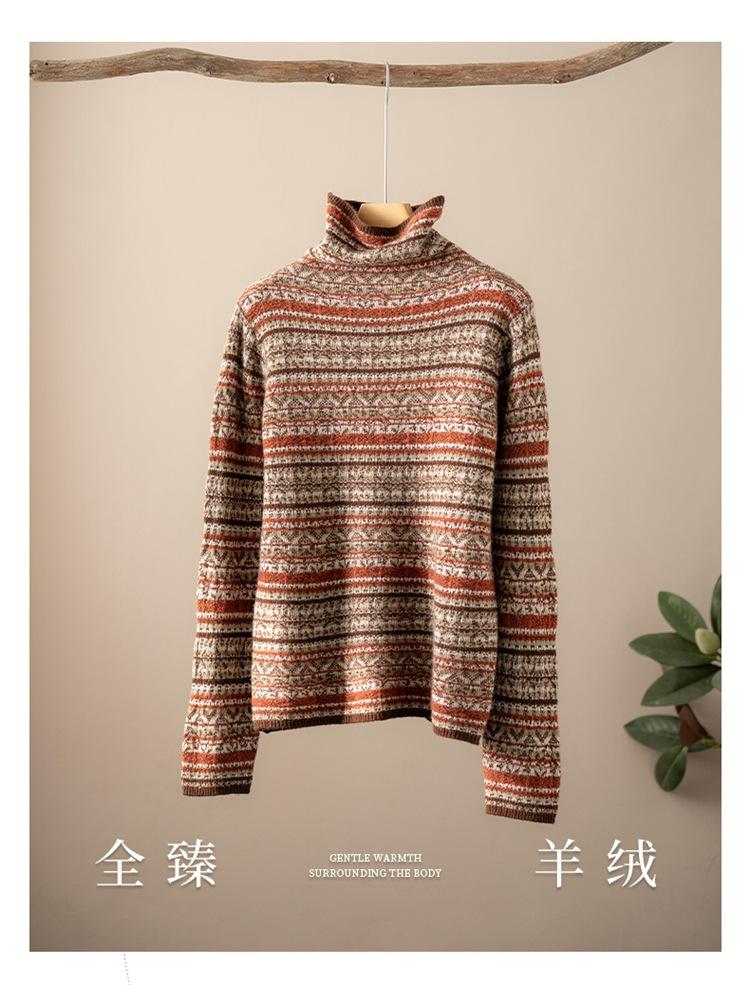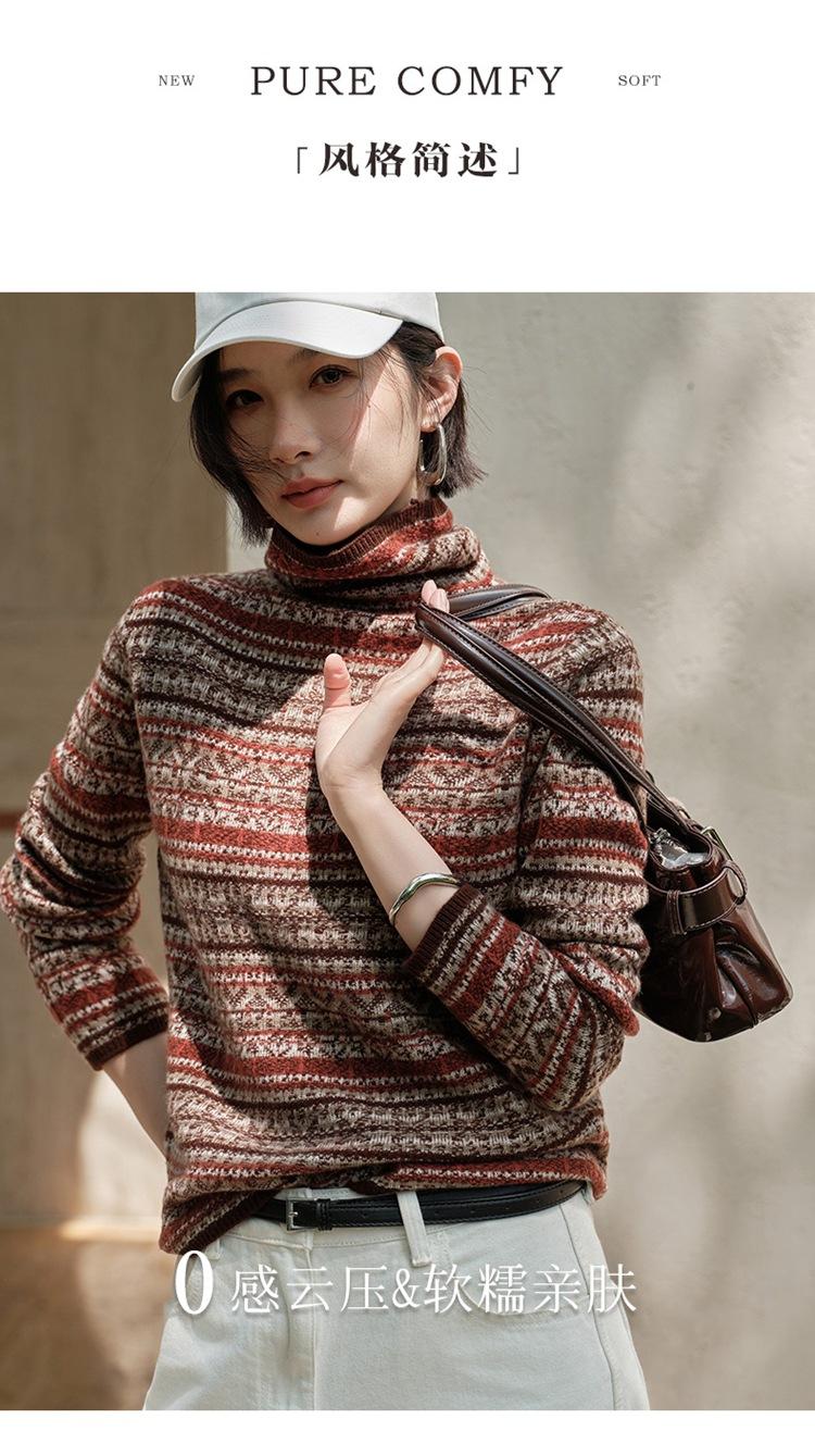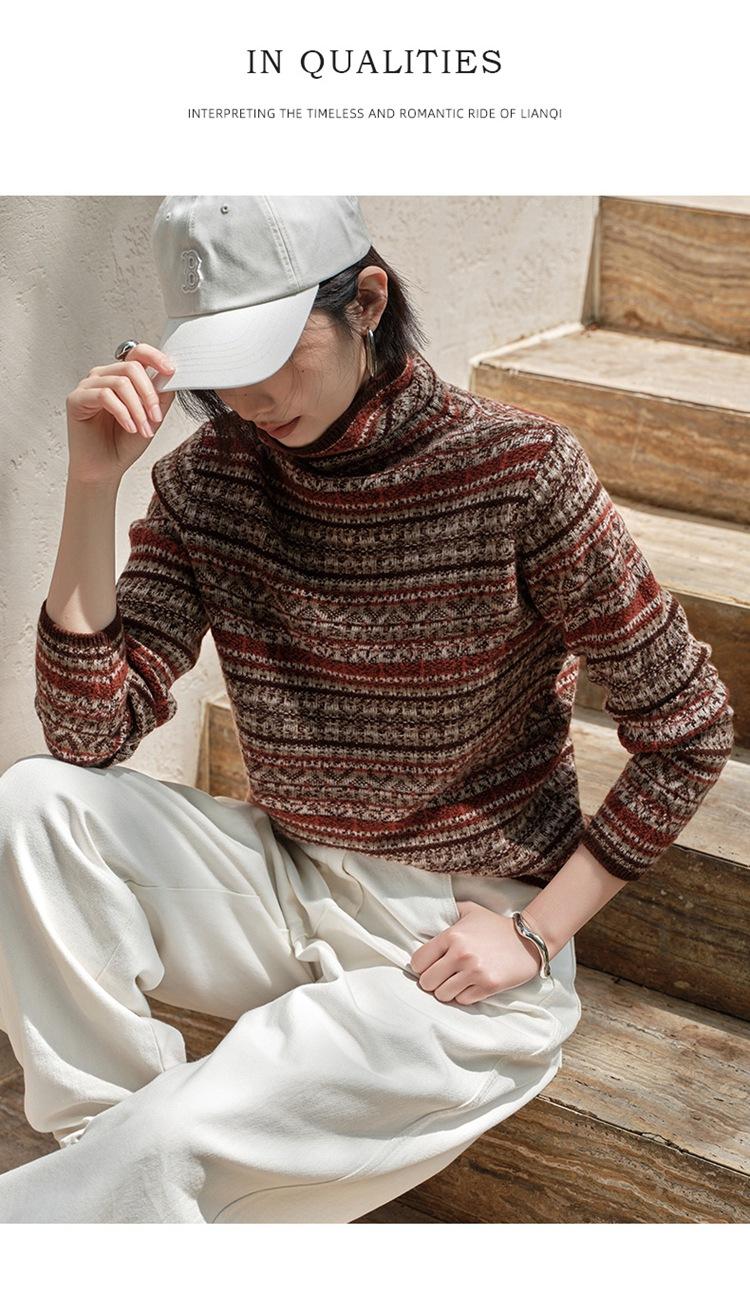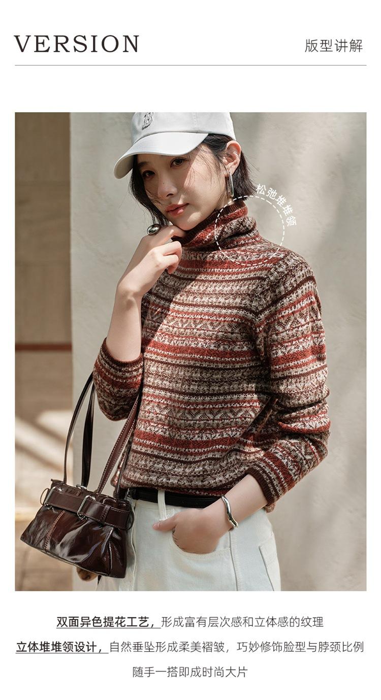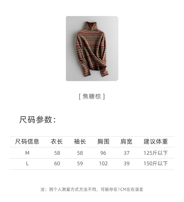 Suéter de Cachemira para Mujer 100% Cachemira Pura Otoño/Invierno Nuevo Estilo Cuello Alto Jacquard Manga Larga Jersey Tejido Base
