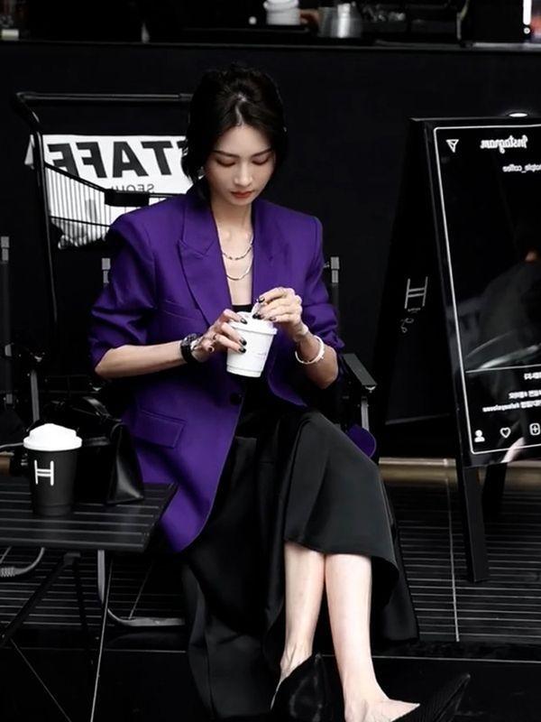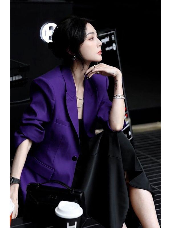 Chaqueta de traje púrpura de alta gama con temperamento de mujer madura, estilo socialité, para mujer, nueva primavera y otoño 2025, estilo coreano, traje pequeño casual