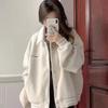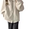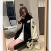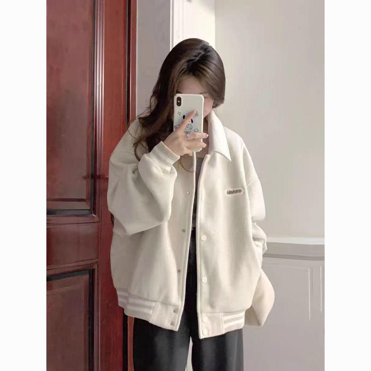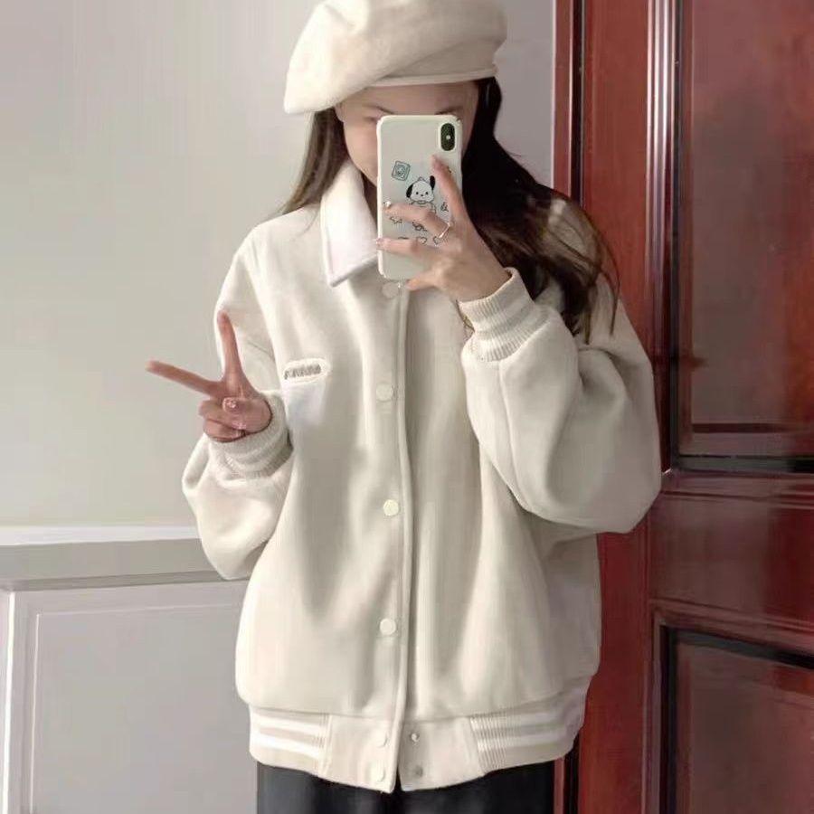 Chamarra de Béisbol Forrada de Polar Otoño/Invierno 2025 para Mujer Estilo Holgazán Petite Estudiante Bordado de Letras Chaqueta Holgada