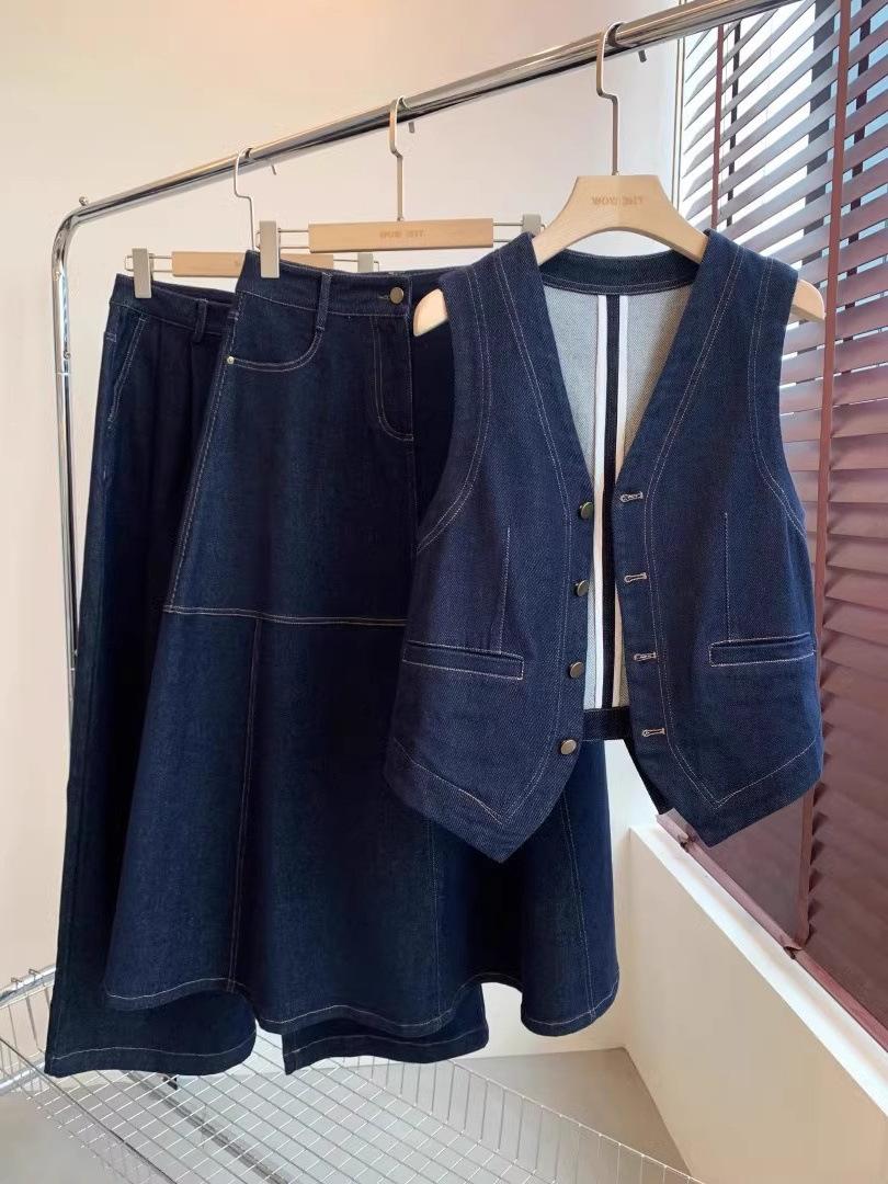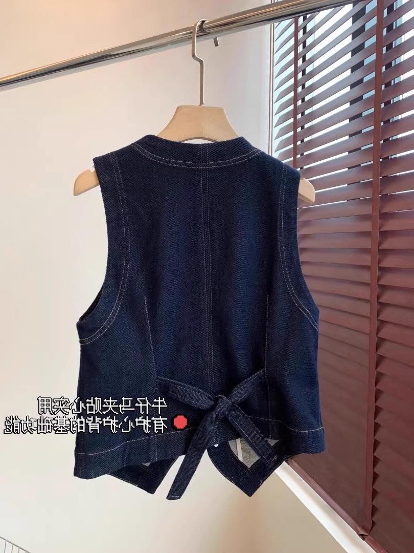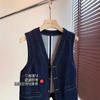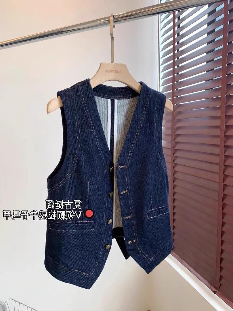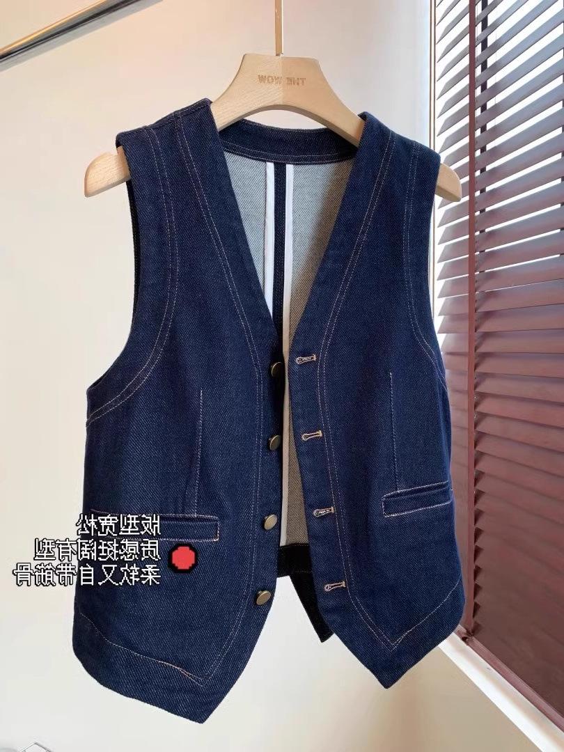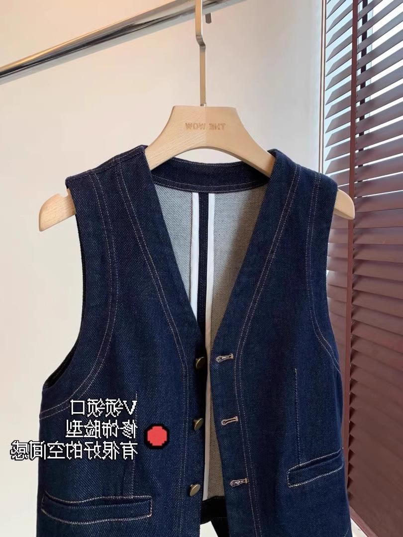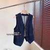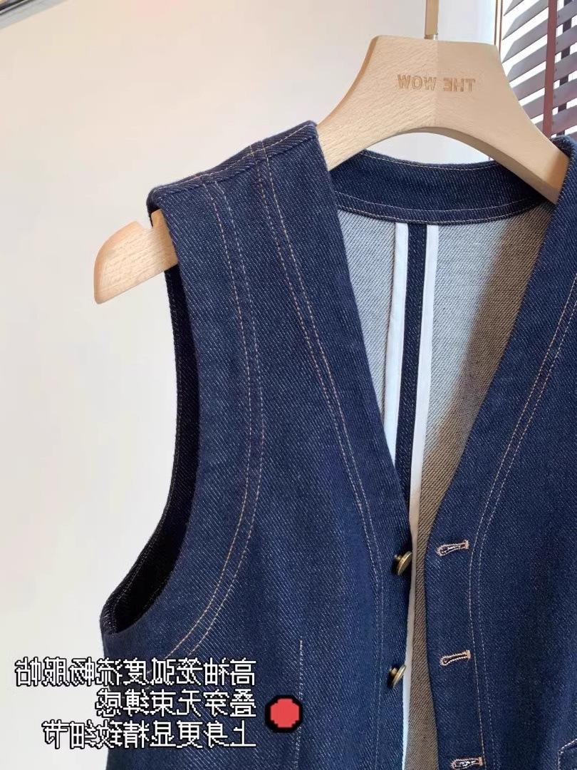 Primavera y Otoño Nuevo Chaleco Chaqueta Pequeña sin Mangas Cuello en V Retro Capas Moda Estilo Occidental Adelgazante Chaleco de Mezclilla Mujeres A6446