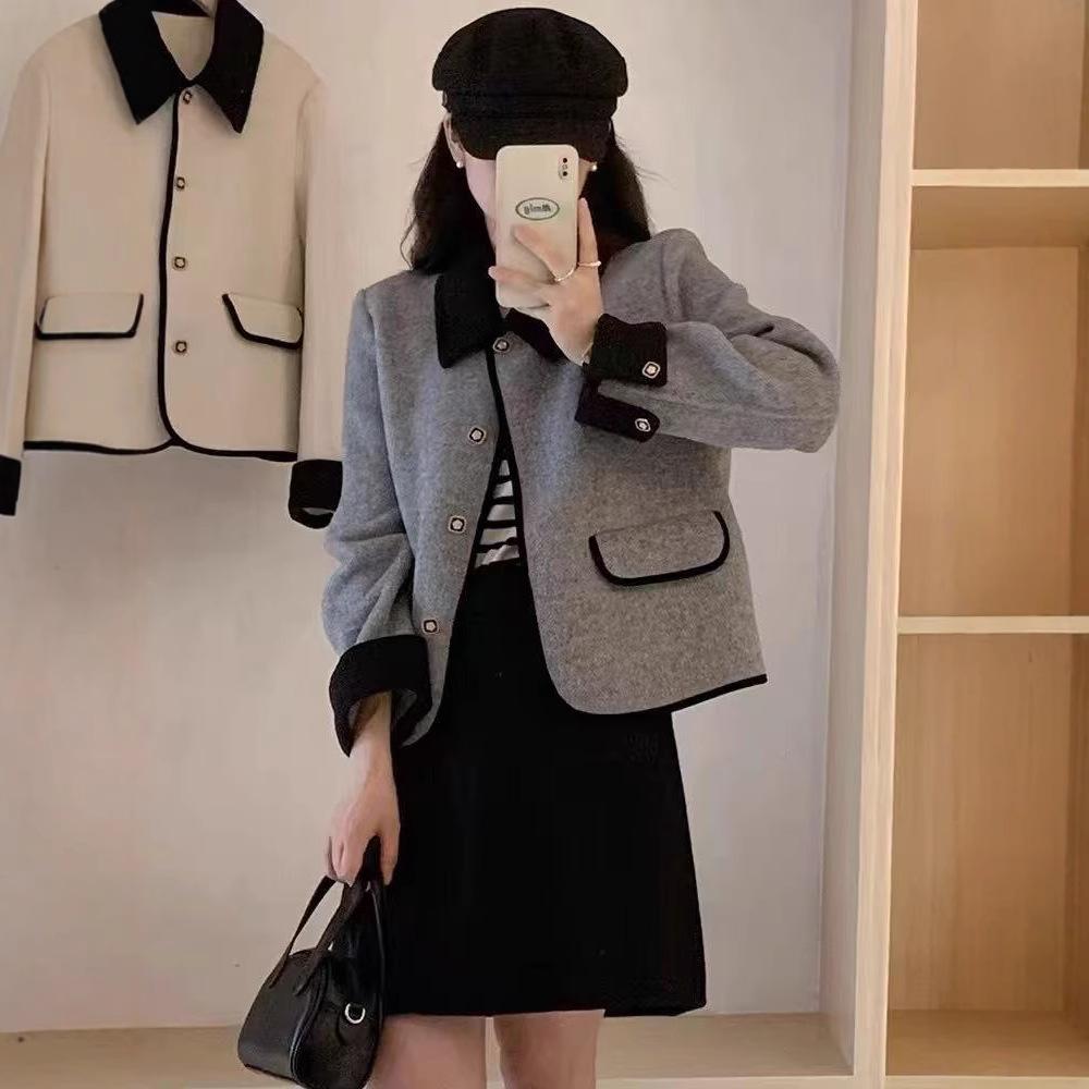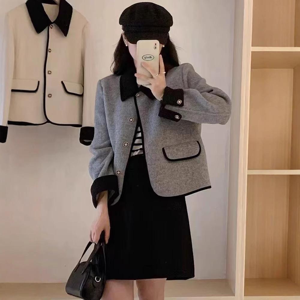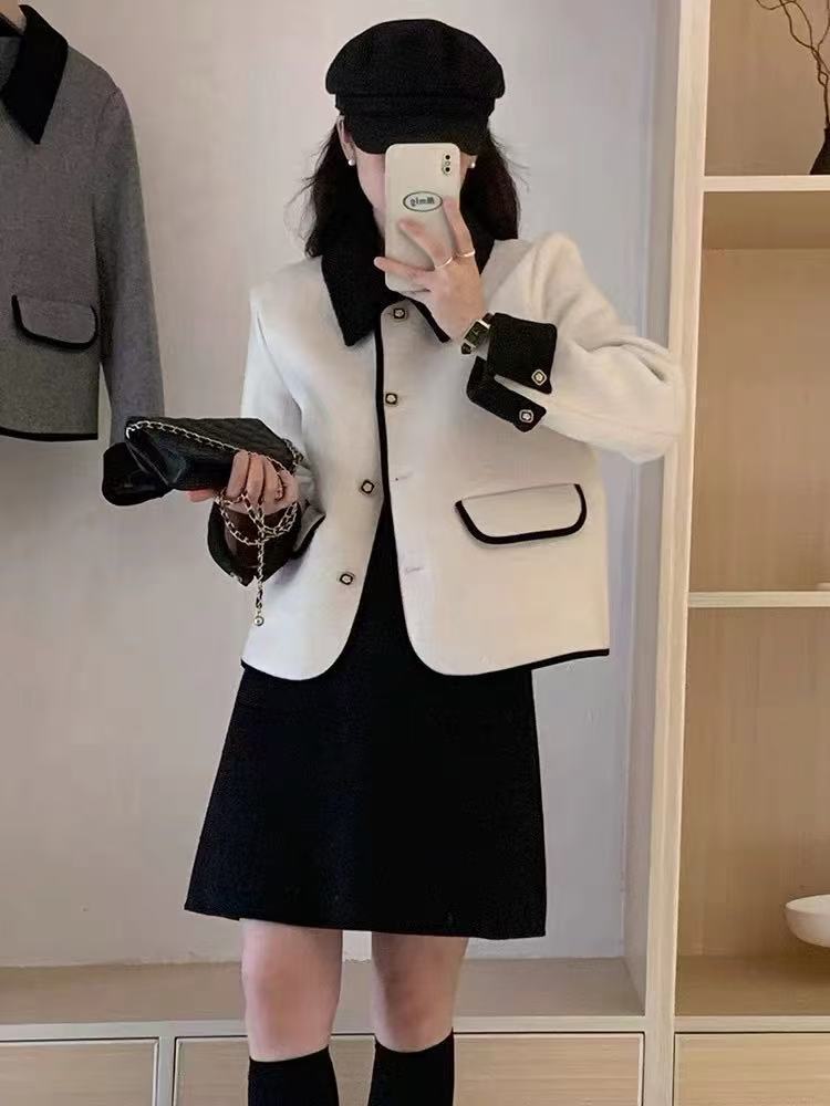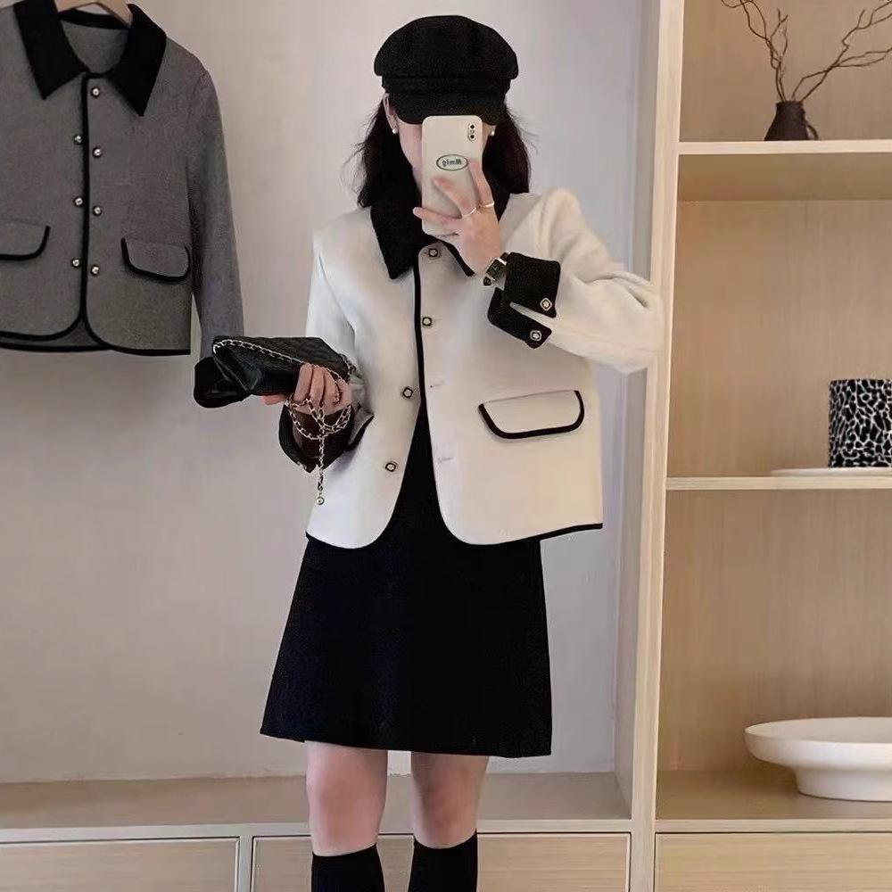 2025 Nuevo Estilo Otoño e Invierno Estilo Pequeño Fragante Solapa Corta Aspecto Adelgazante de Alta Gama Top Chaqueta Cárdigan de Punto