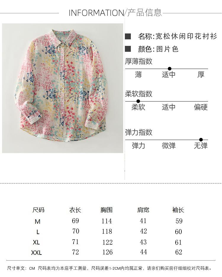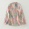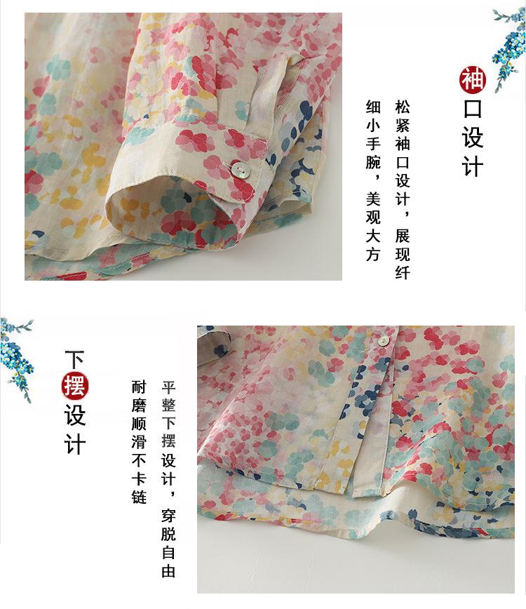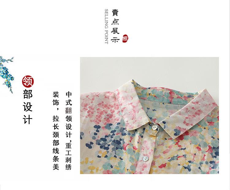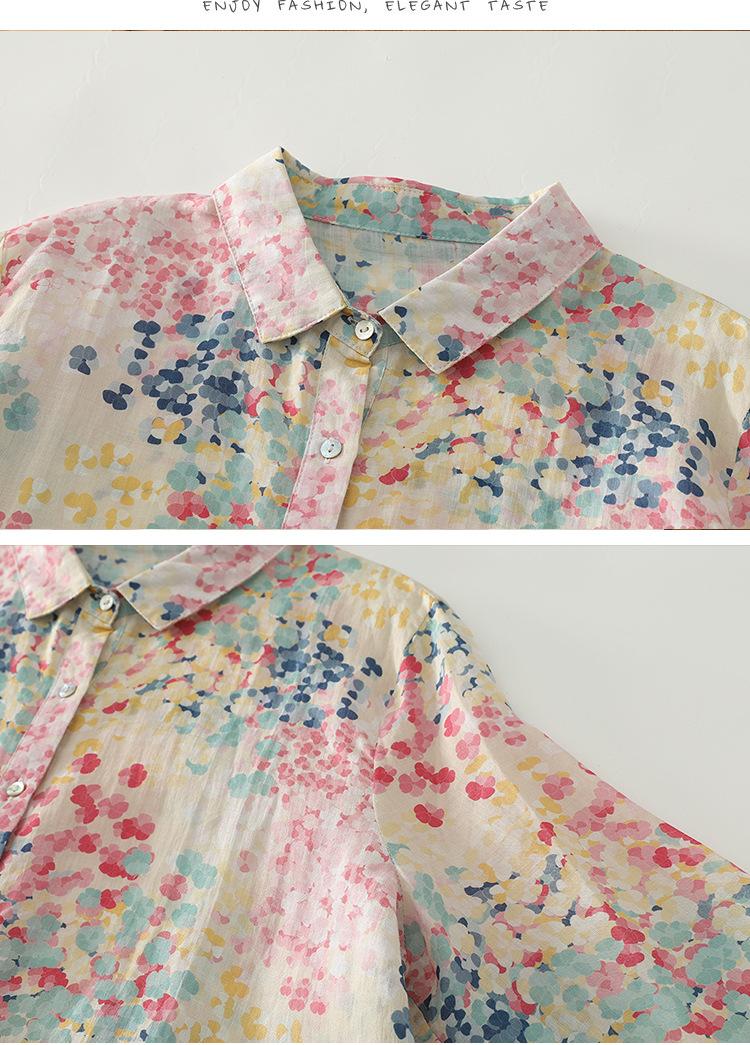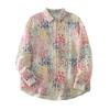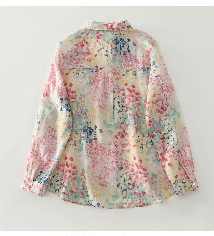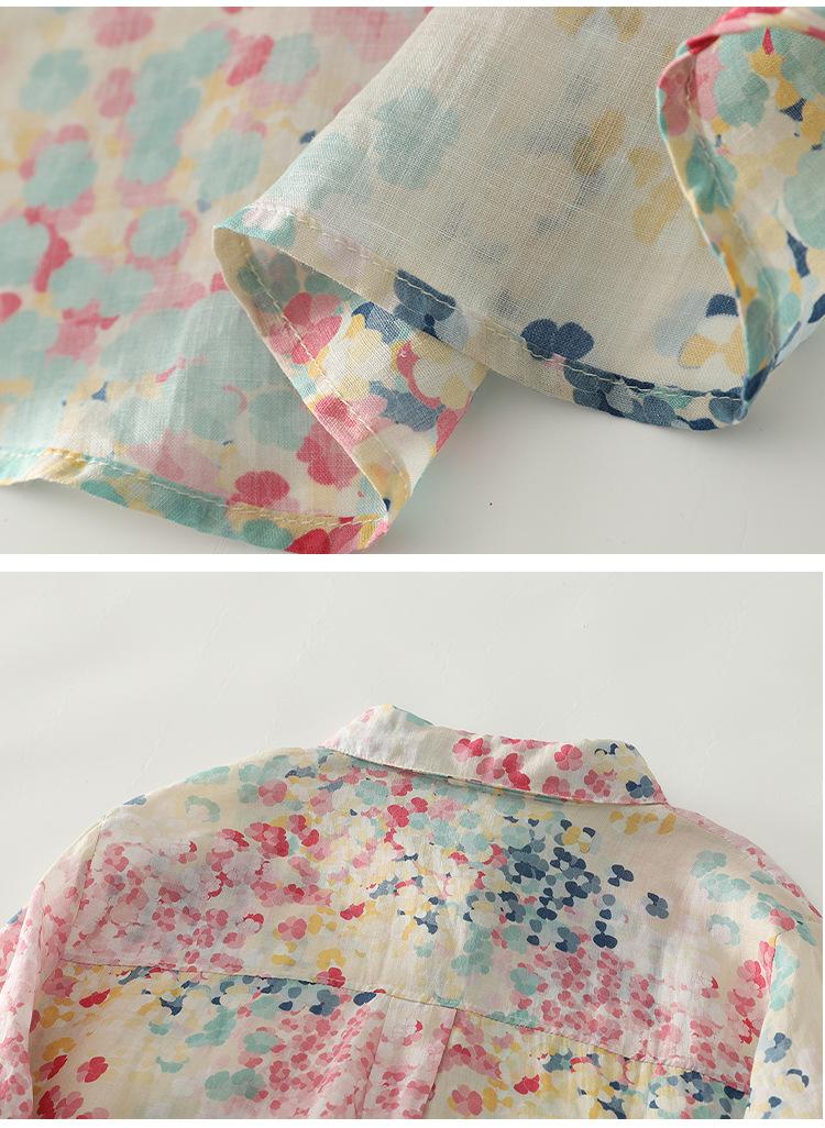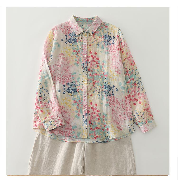 Foto Real En Stock Camisa Floral de Algodón Lino Color Macaron Nicho Versátil Suelta Estilo Principios de Otoño Camisa Estampada Top de Mujer