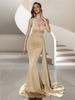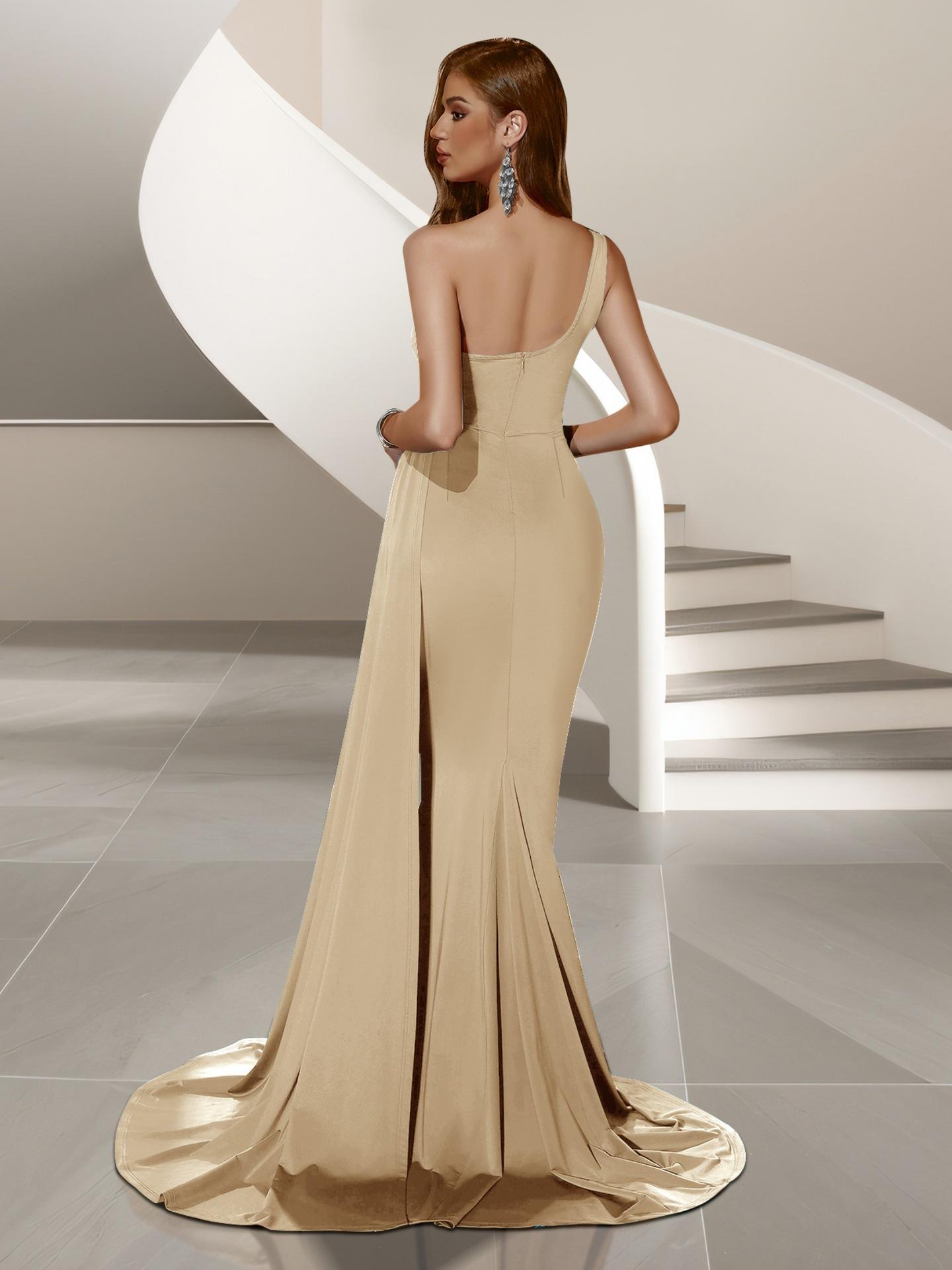 Vestido de mujer transfronterizo Vestido de fiesta de banquete Vestido de dama de honor Un hombro Largo con cola Descubierto de espalda Vestido de alta gama