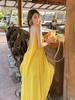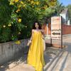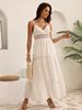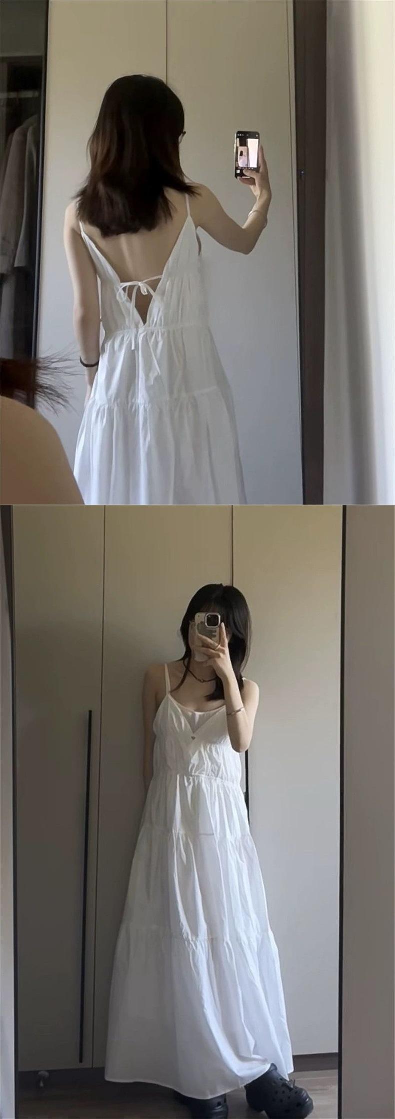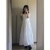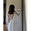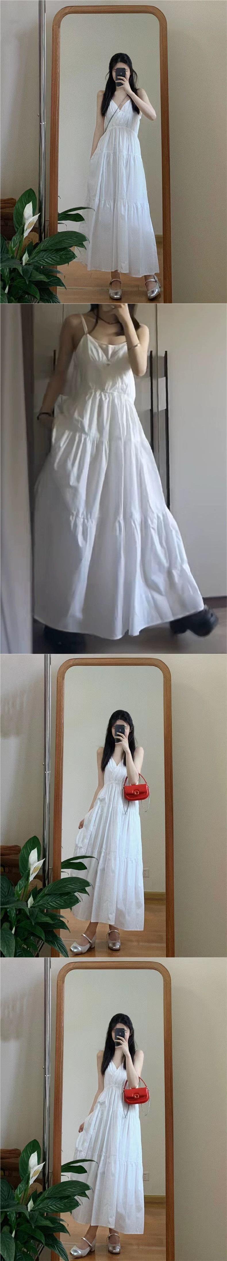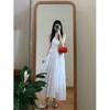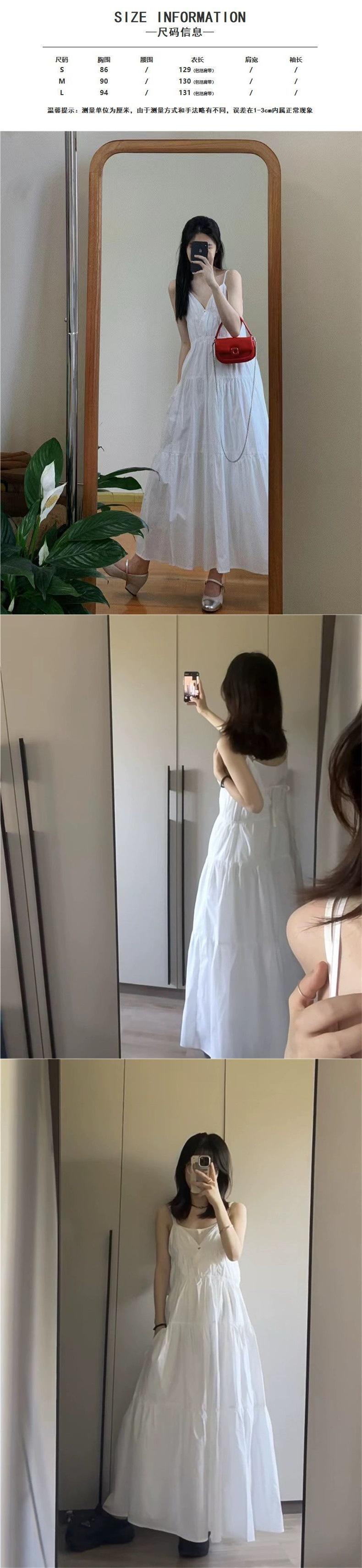Vestido de Verano para Mujer con Cuello en V y Tirantes Espagueti Estilo Vacaciones en la Playa Nuevo Super Hermoso Vestido Largo Blanco Vestido de Playa Francés Falda