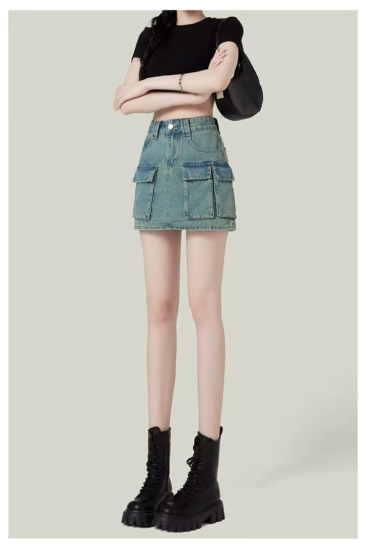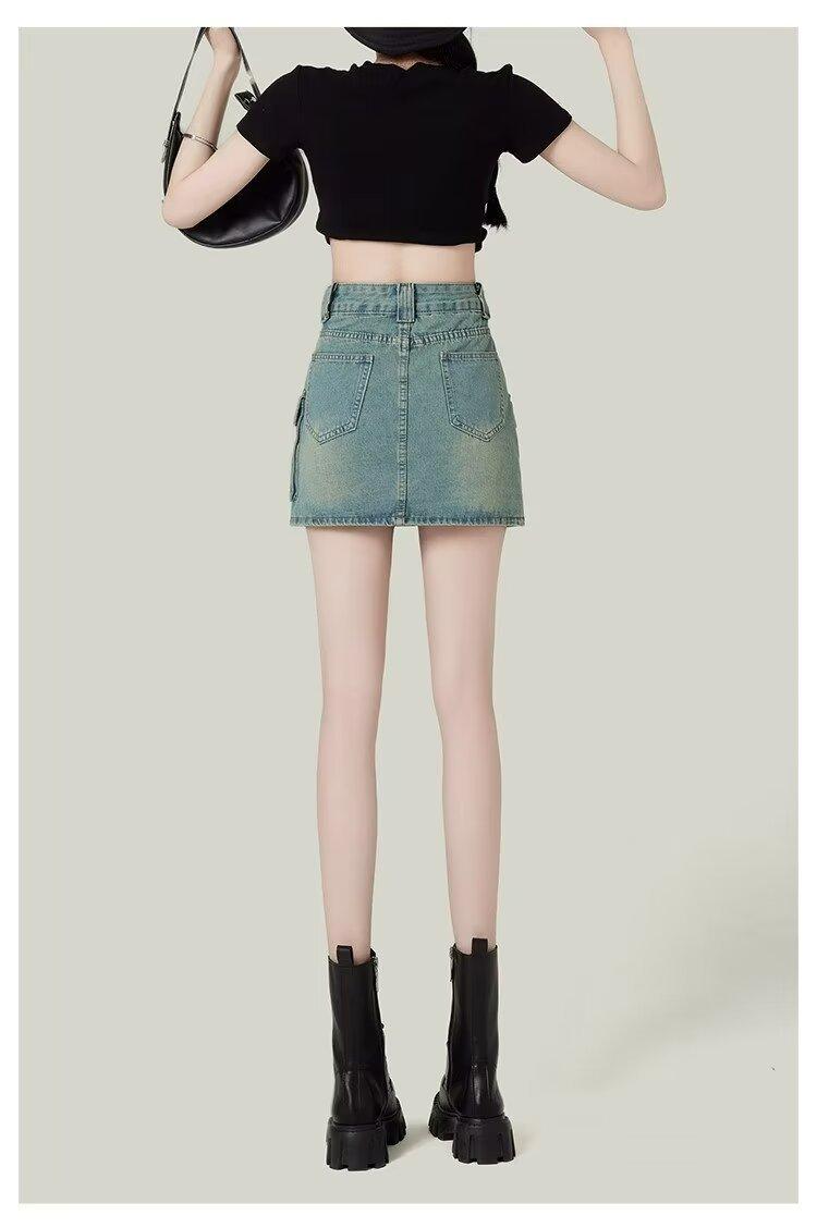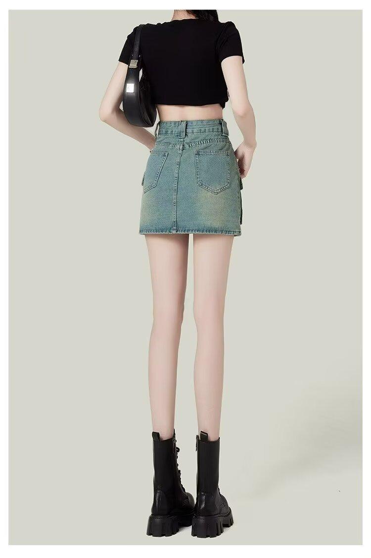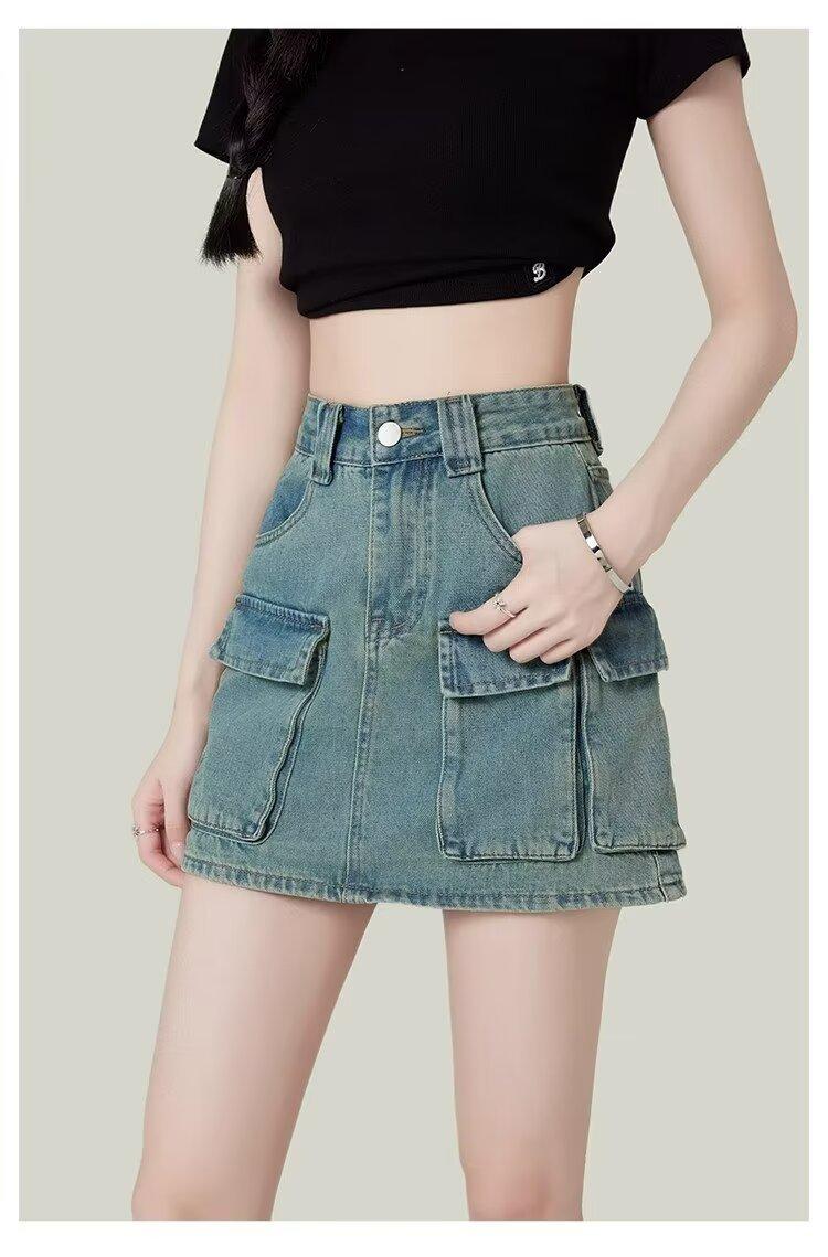 Falda vaquera de cintura alta para mujer, estilo informal, de verano, 2024, adelgazante, combinable con todo.