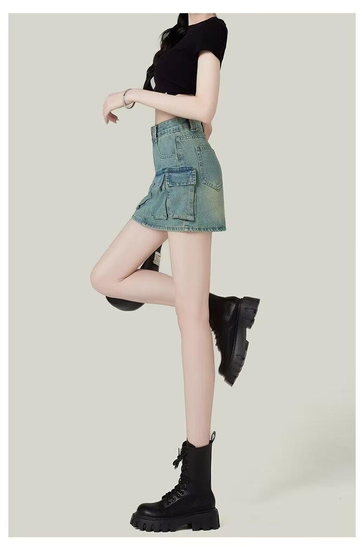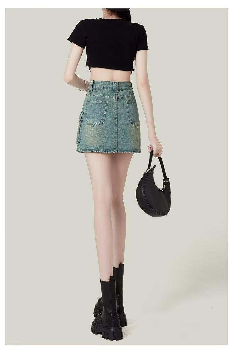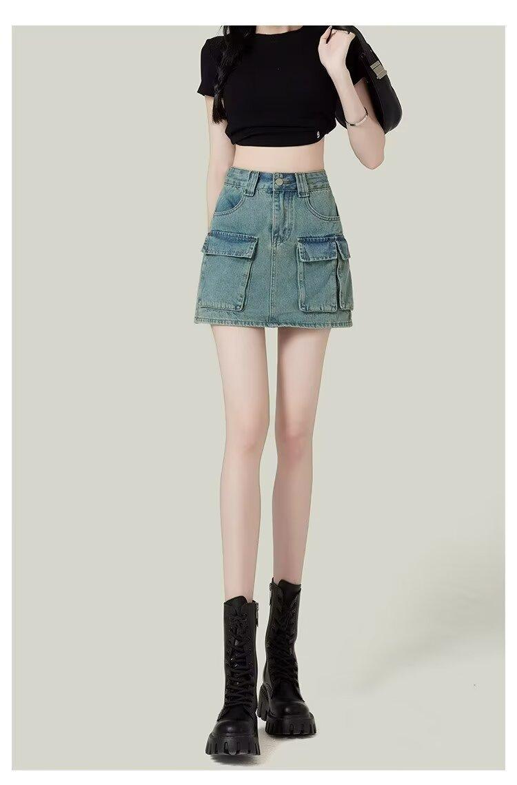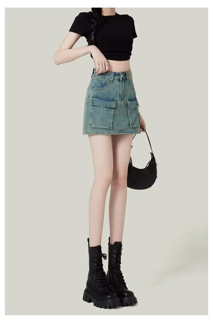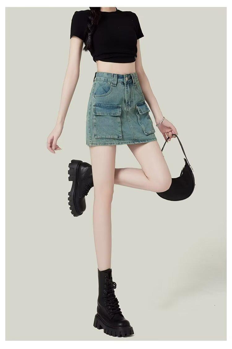 Falda vaquera de cintura alta para mujer, estilo informal, de verano, 2024, adelgazante, combinable con todo.