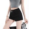 Shorts de Mezclilla Elegantes de Verano para Mujer, Sexy de Cintura Baja Elásticos con Patrón de Serpiente Negro Plateado Oscuro, Línea A que Cubren la Cadera