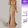 2025 Comercio Exterior Transfronterizo Nuevo Vestido de Noche Elegante de Largo Medio sin Mangas de Moda de una Pieza de Hada de Lentejuelas Verdes