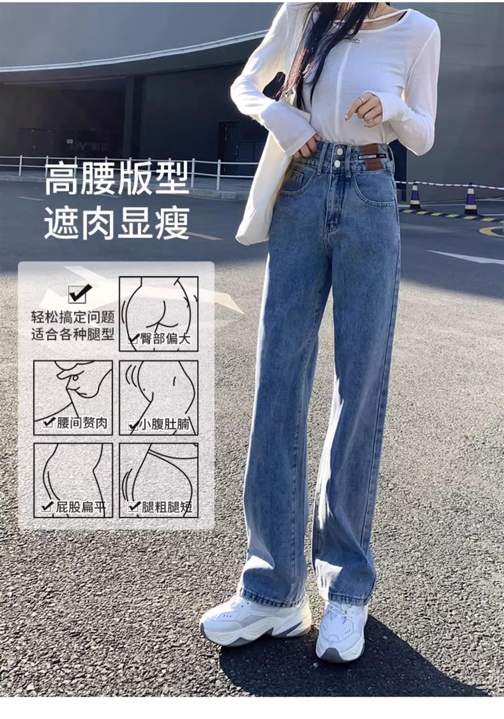 Sudeste de Asia transfronterizo para mujer al por mayor cintura alta mezclilla pantalones anchos nueva tiembla libro rojo pequeño una generación de suministro