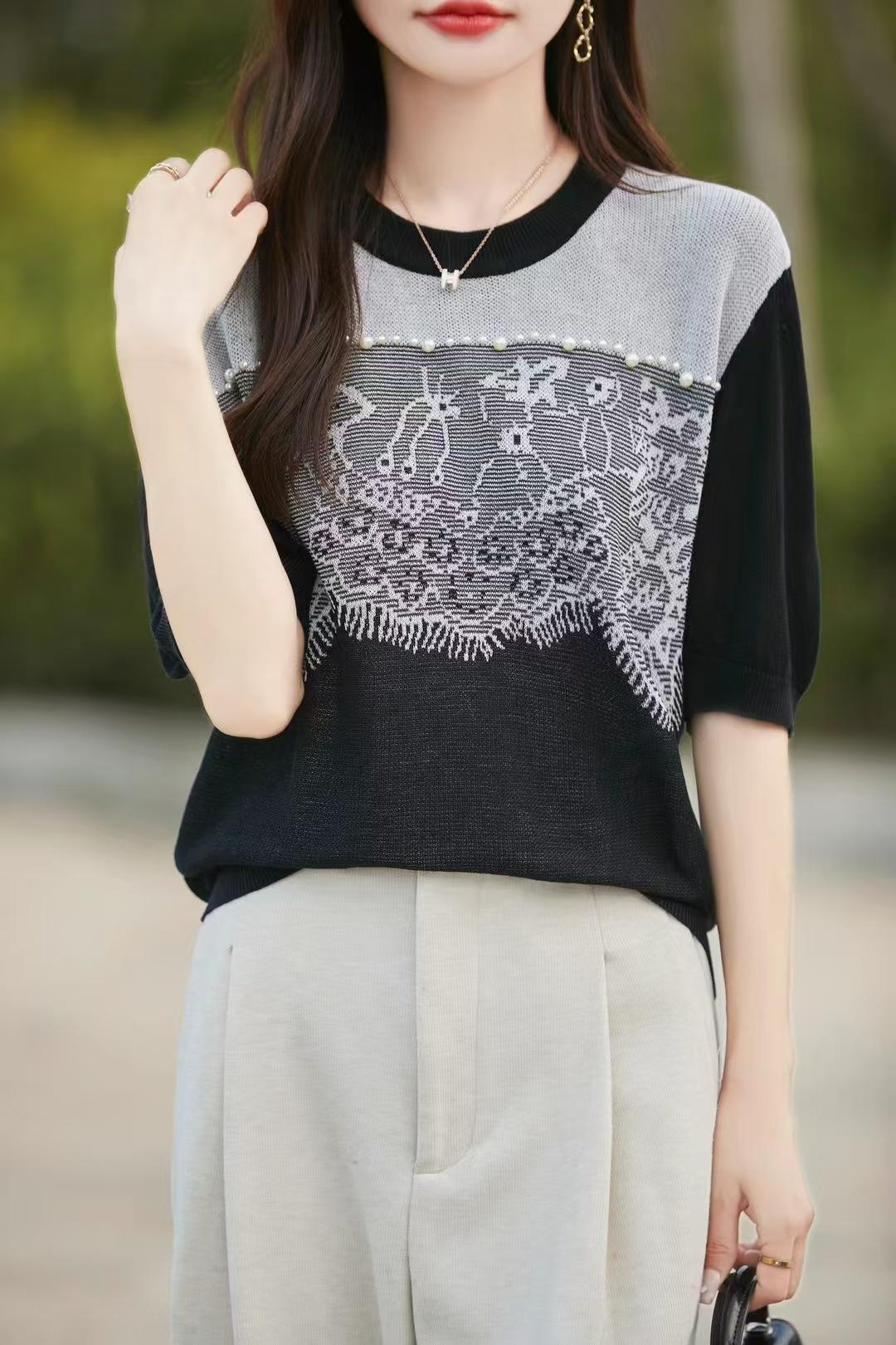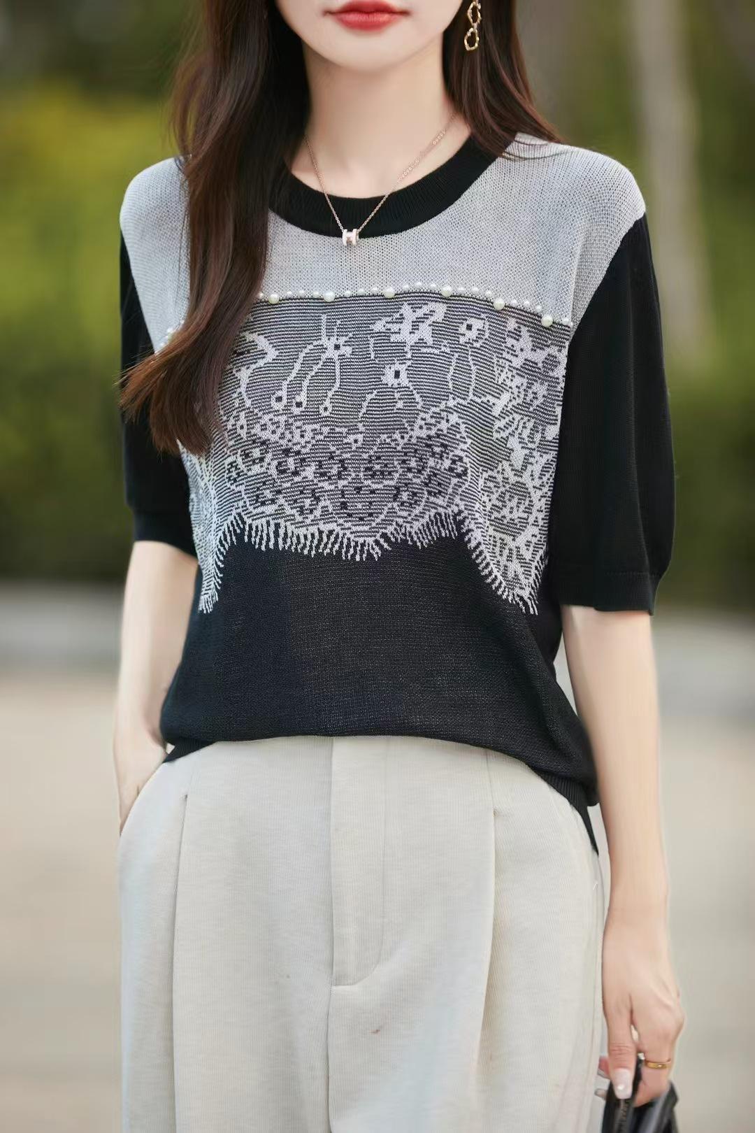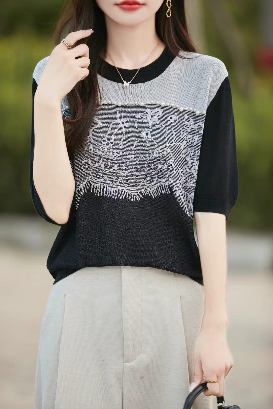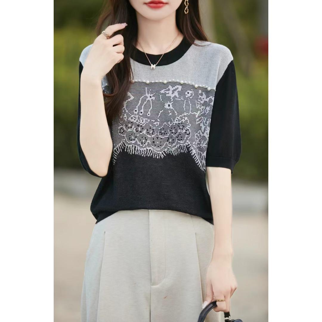 Estilo Francés Encaje Costuras Mujer 2024 Primavera y Otoño Nuevo Suelto Cuello Redondo Jersey Básico con Ropa
