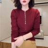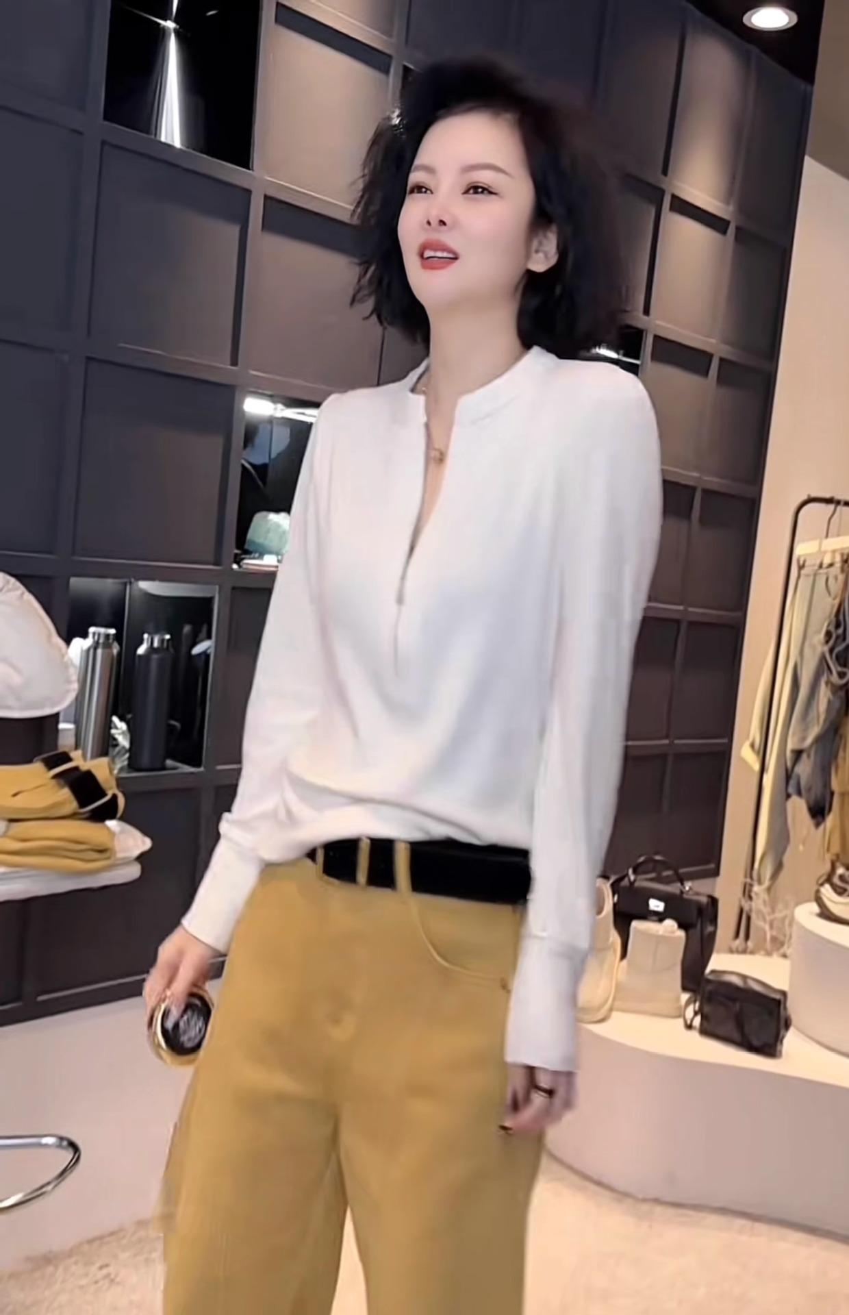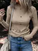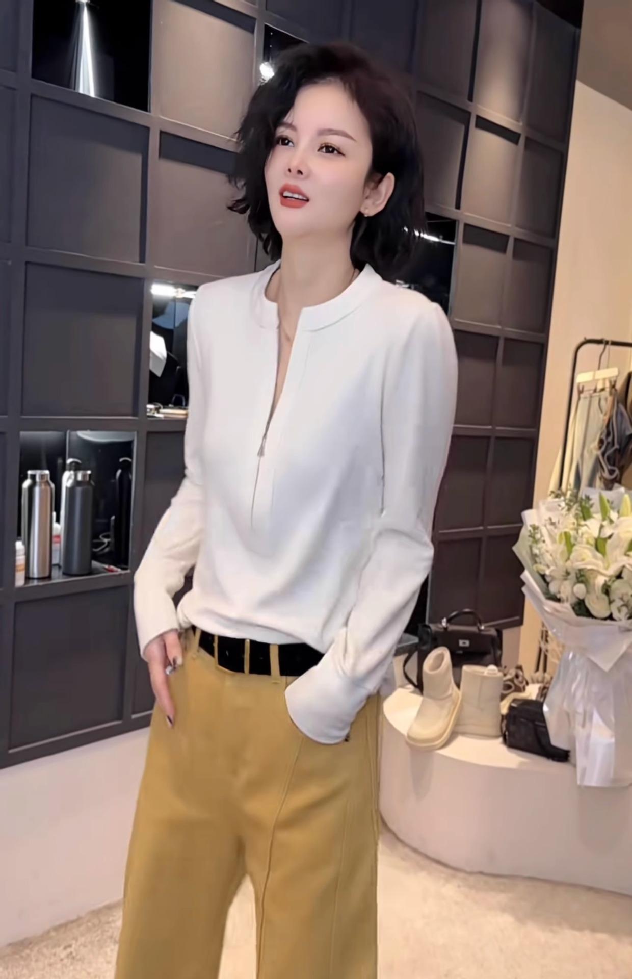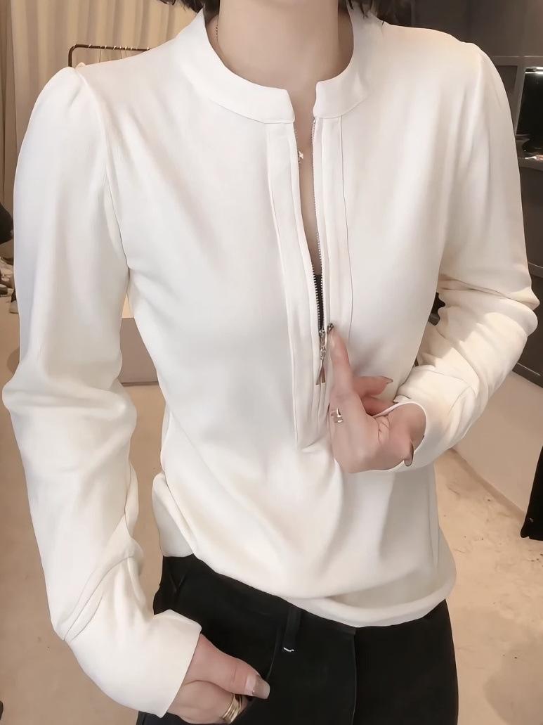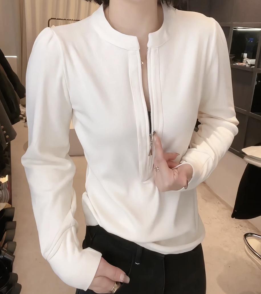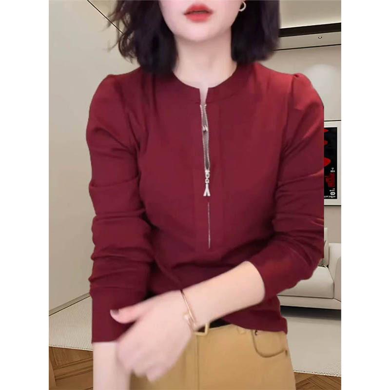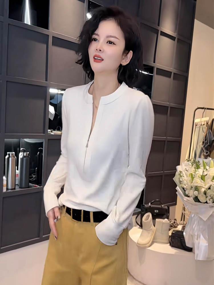 Primavera 2025 Nueva Camiseta Base de Manga Larga para Mujer Cuello Alto Versátil Adelgazante Media Cremallera Top Sencillo Tendencia