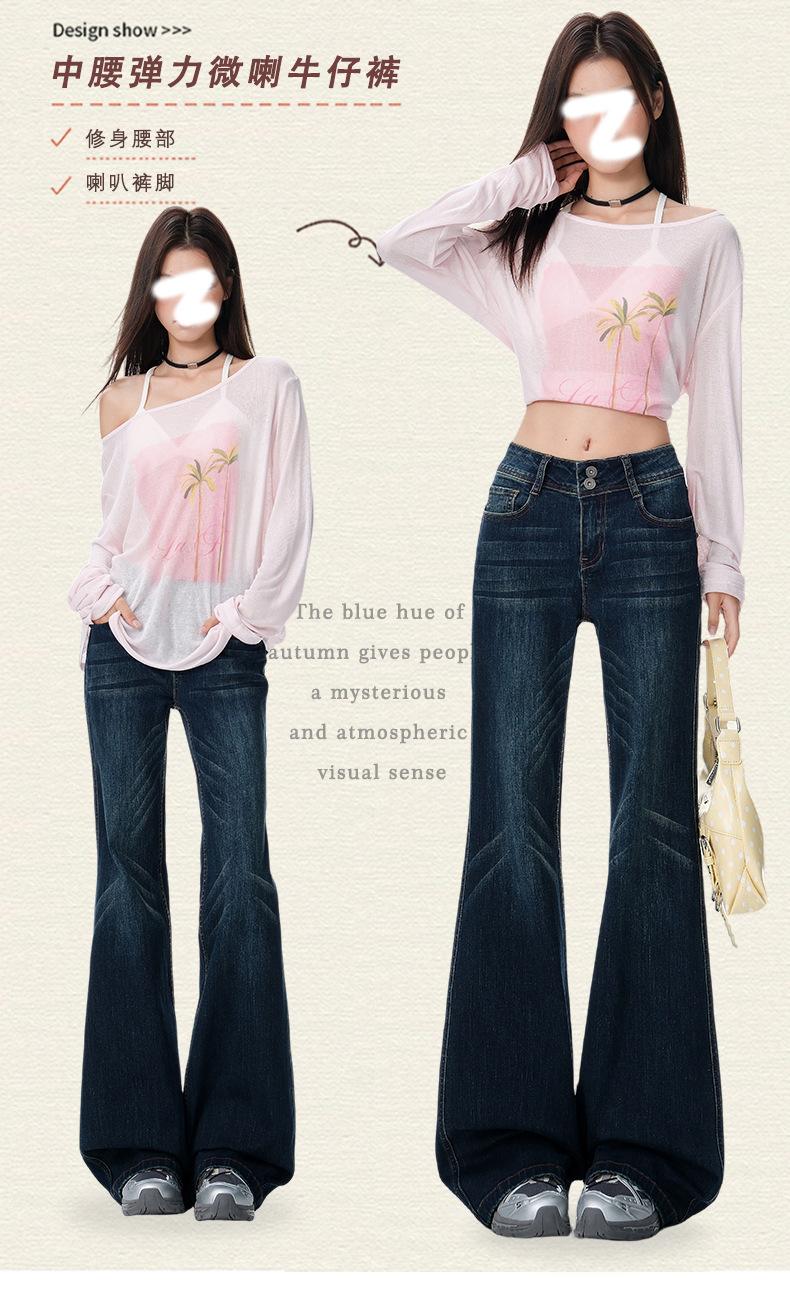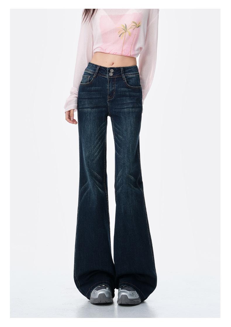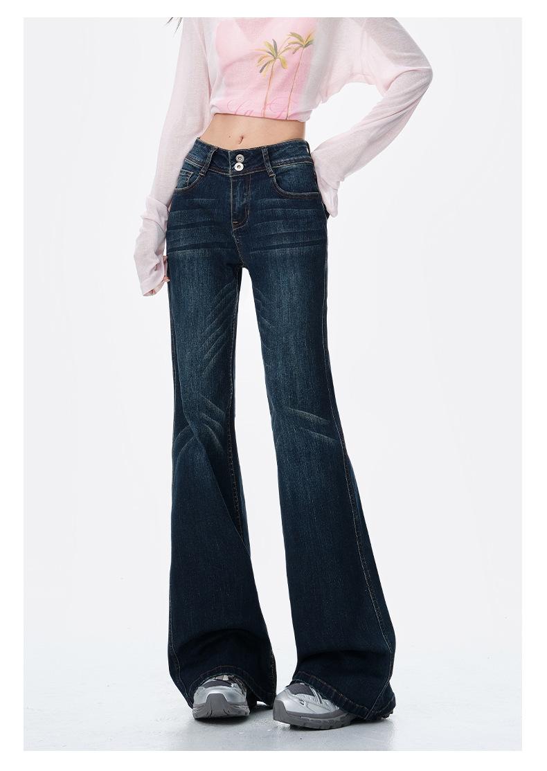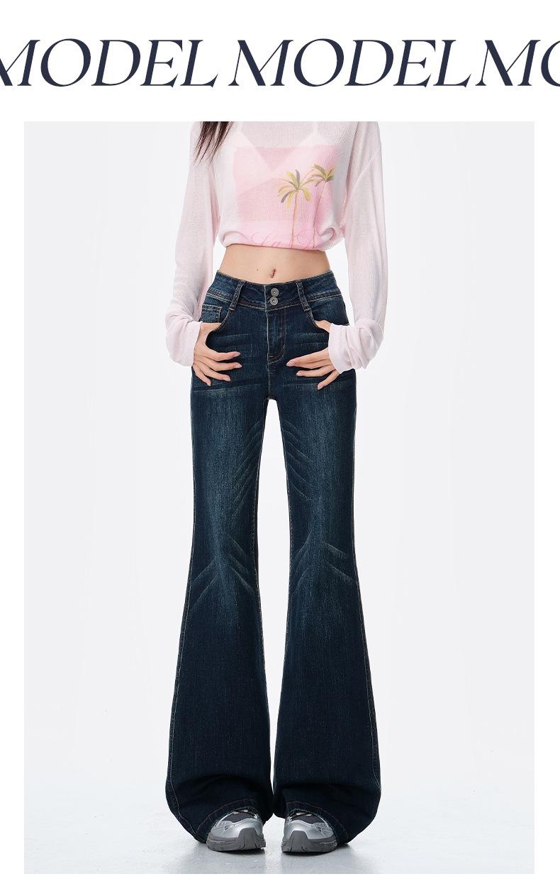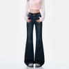 Jeans acampanados micro de color azul oscuro estilo americano para mujer otoño 2025 nuevos retro chica hot elásticos adelgazantes no ajustados pantalones acampanados de pierna