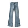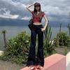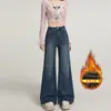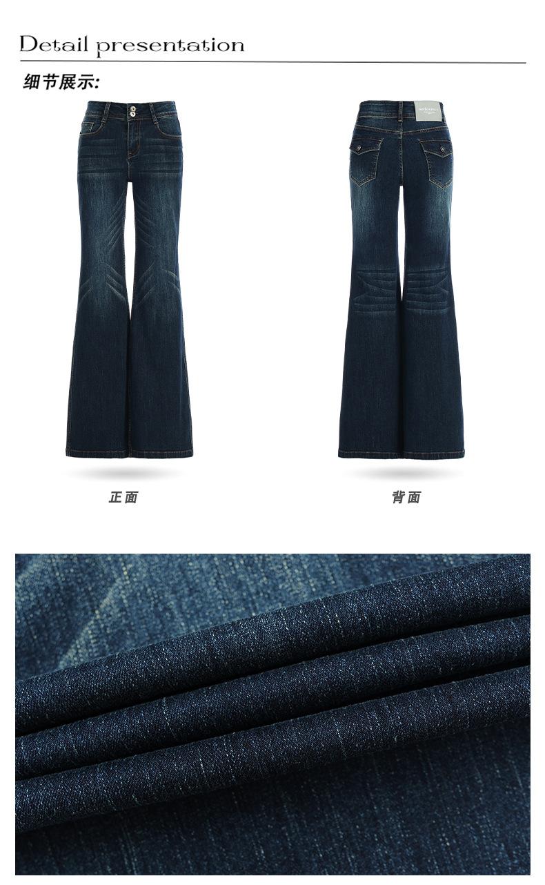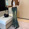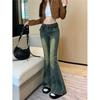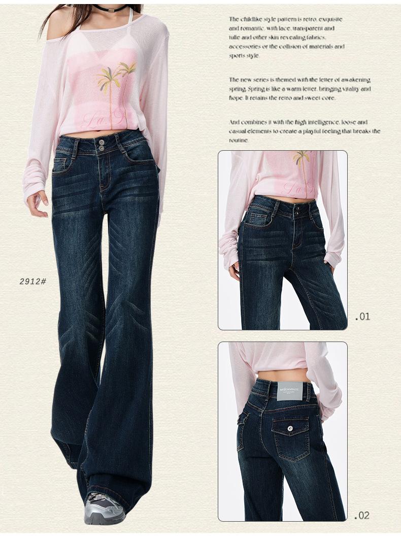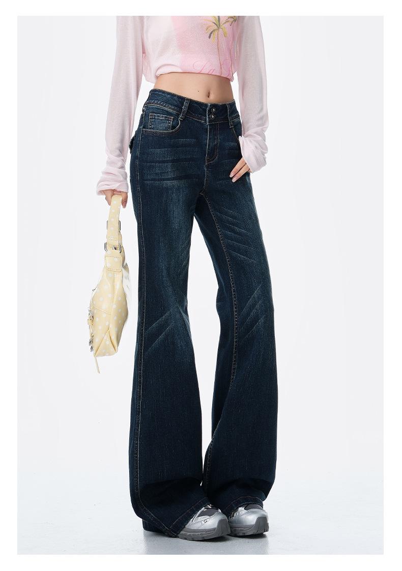Jeans acampanados micro de color azul oscuro estilo americano para mujer otoño 2025 nuevos retro chica hot elásticos adelgazantes no ajustados pantalones acampanados de pierna
