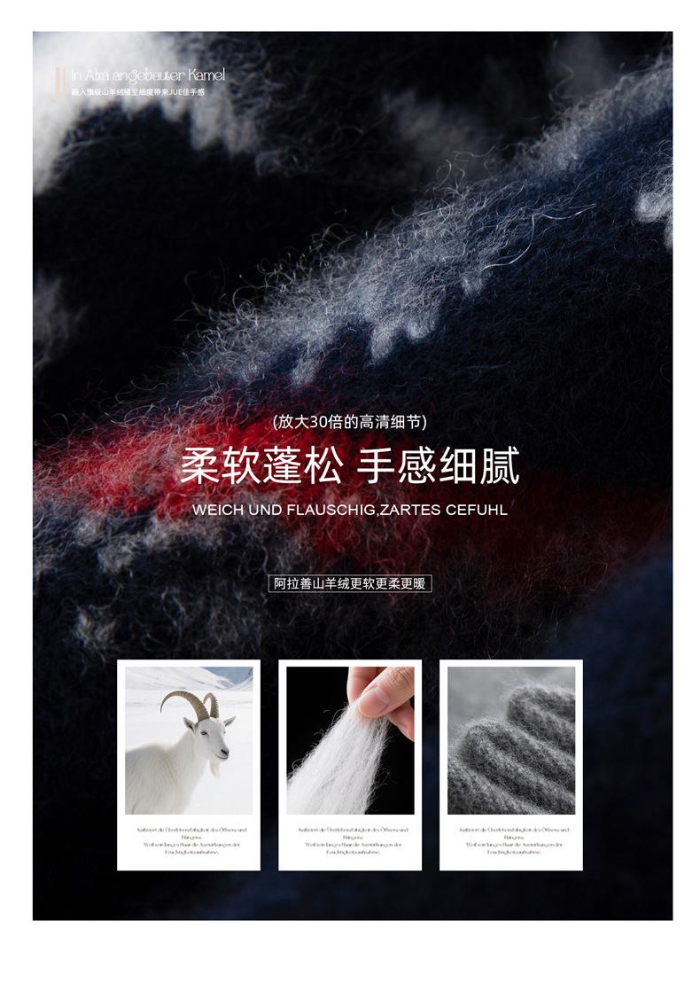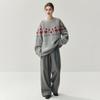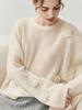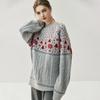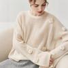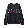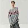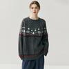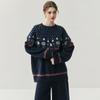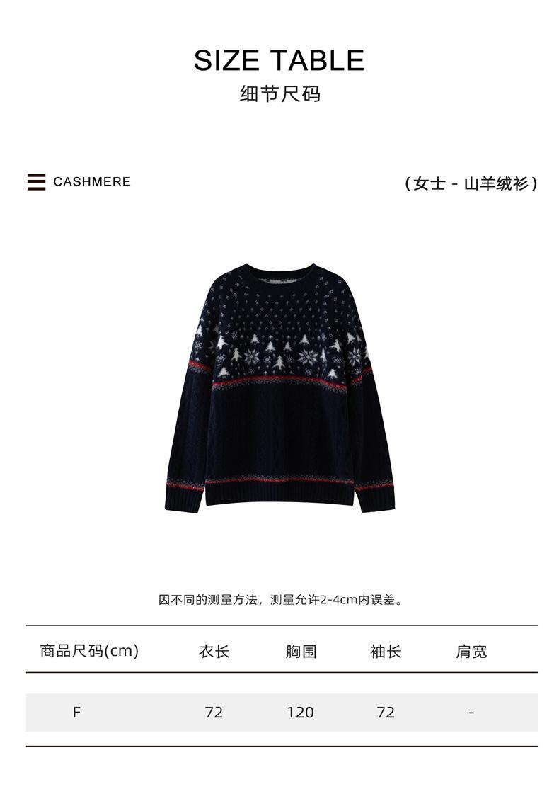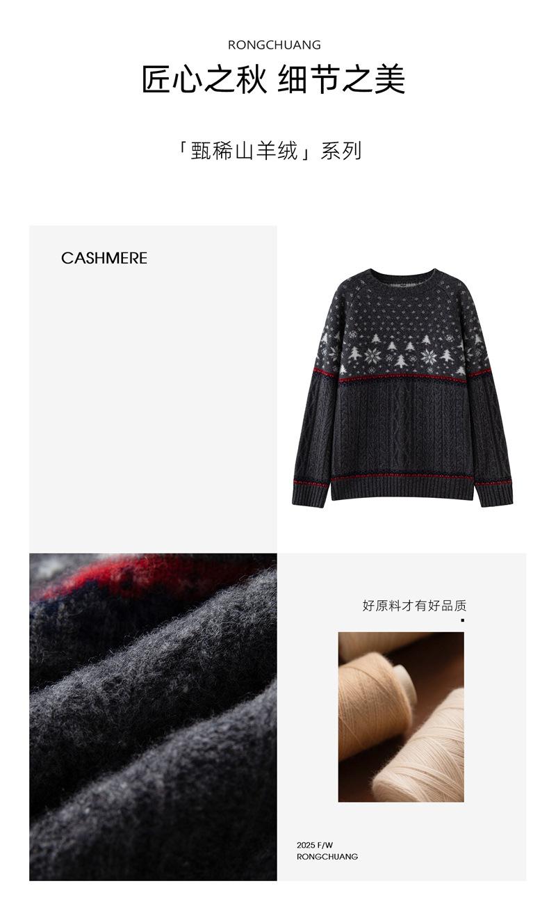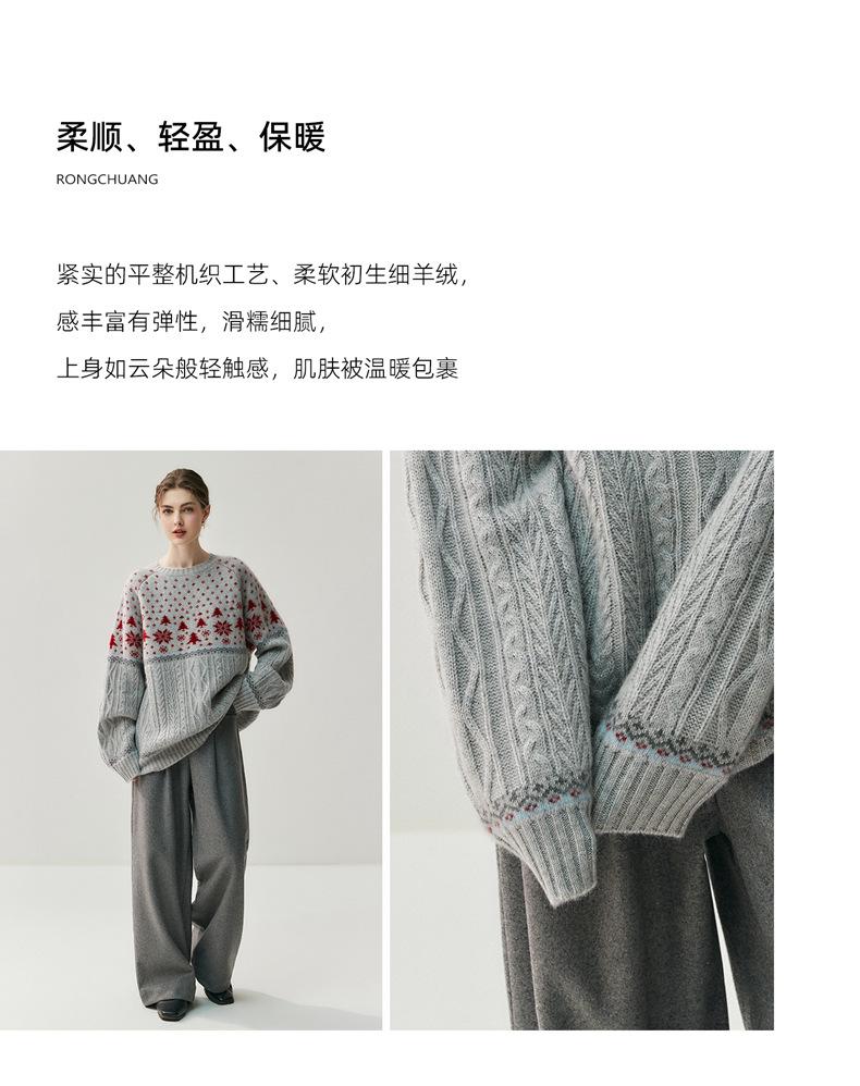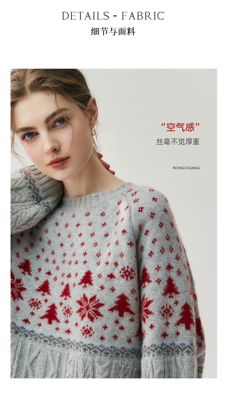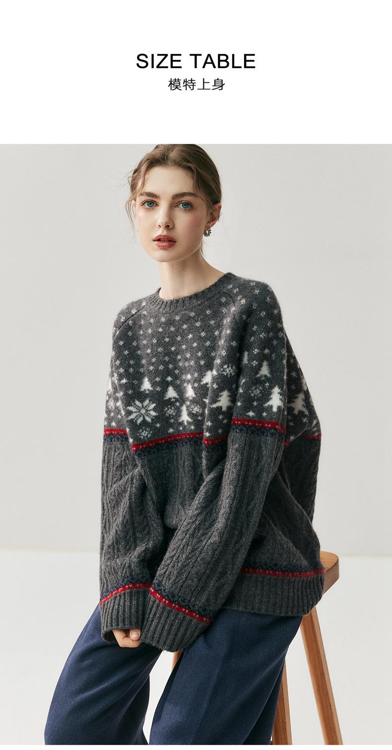 Suéter de Cachemira para Mujer Otoño/Invierno 2025 Temperamento Simple Bloque de Color Literario Cuello Redondo Manga Media Patrón de Copo de Nieve Hombro Caído