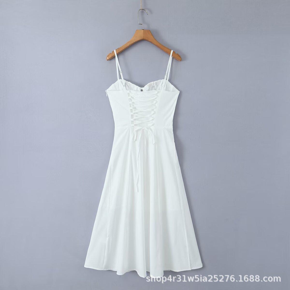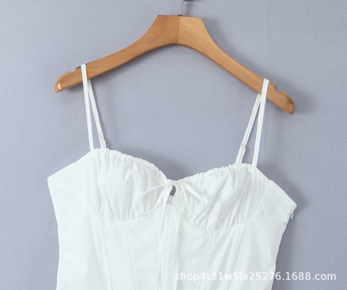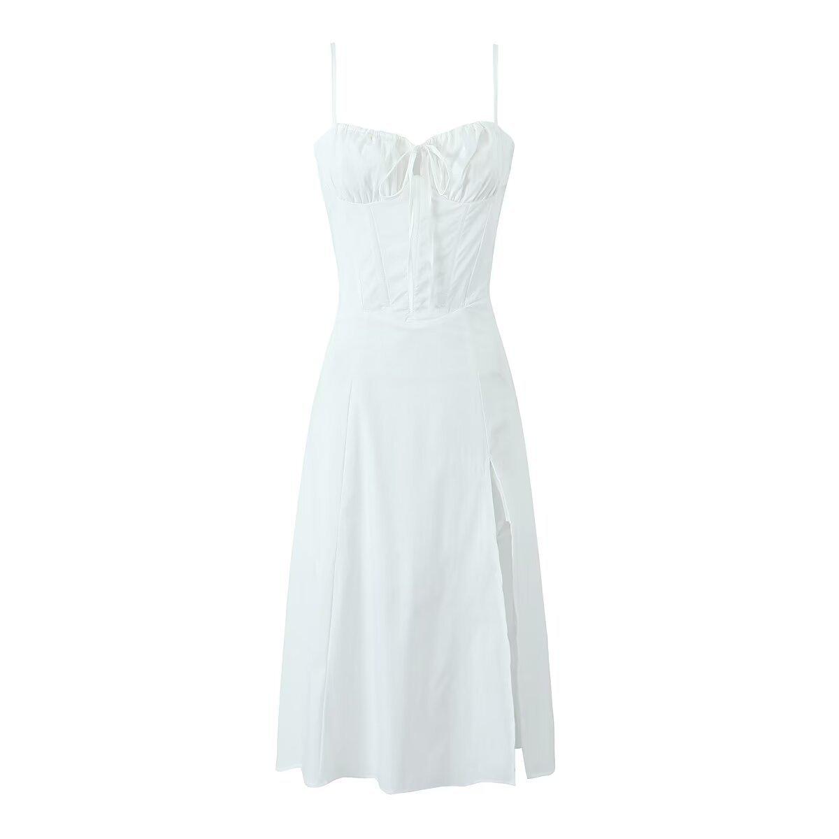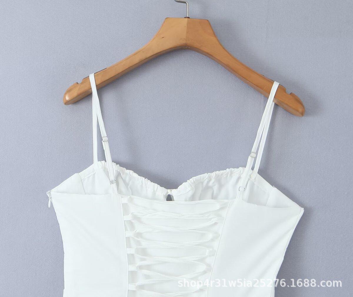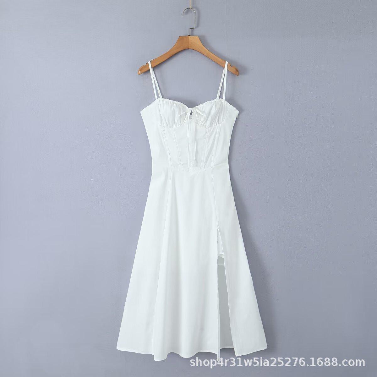Ropa nueva de principios de primavera 2024 para mujer europea y americana, estilo retro francés de deseo puro, sexy, sin espalda, cintura ceñida, vestido de tirantes con abertura