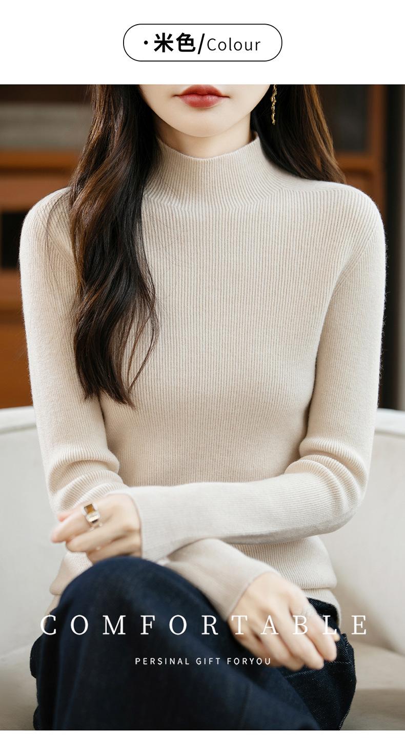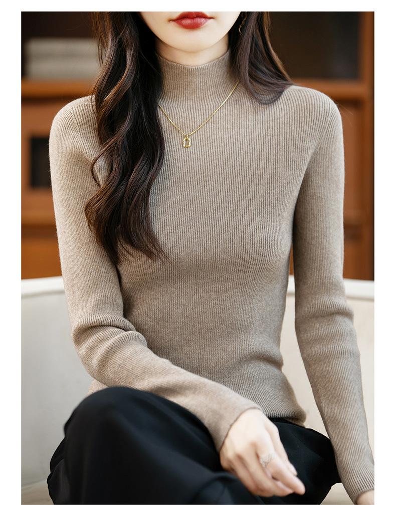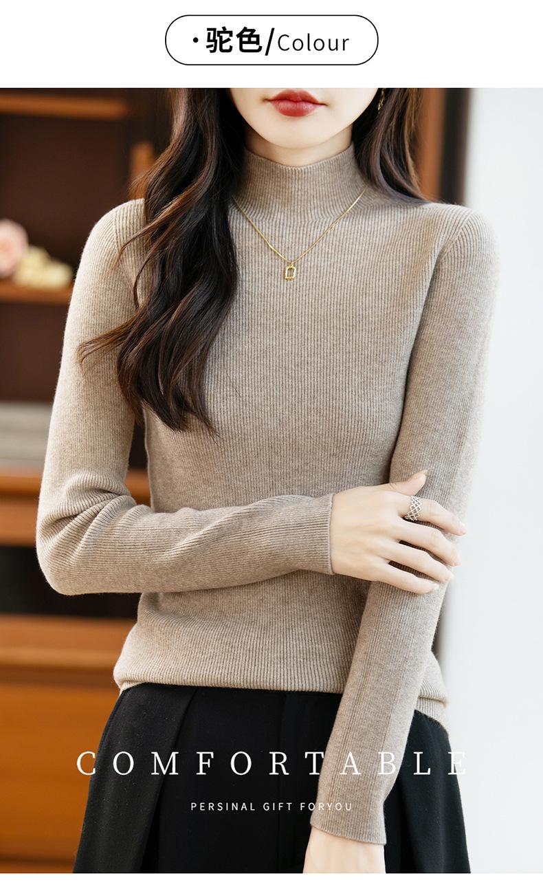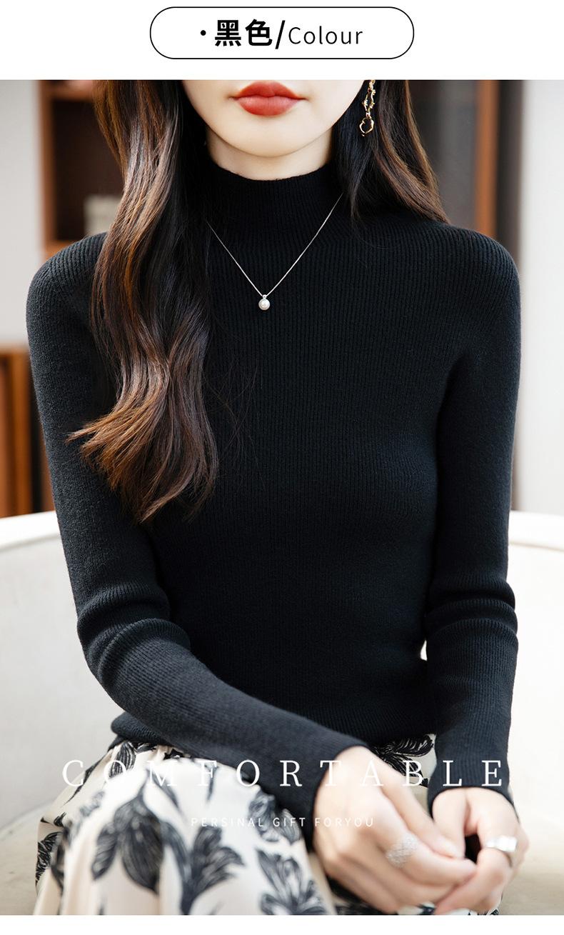 Suéter de Cuello Alto Ajustado Capa Interior Camiseta Base Tejida Otoño e Invierno Nuevo Sentido del Diseño Suéter Tejido