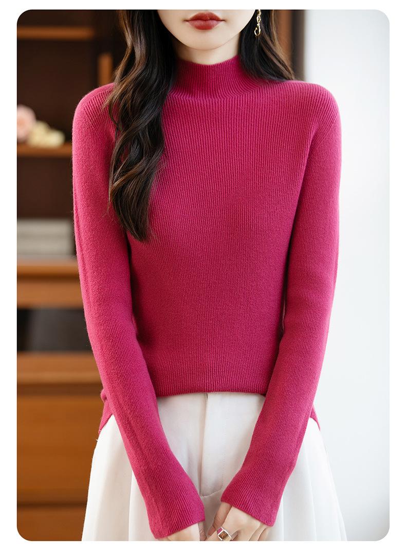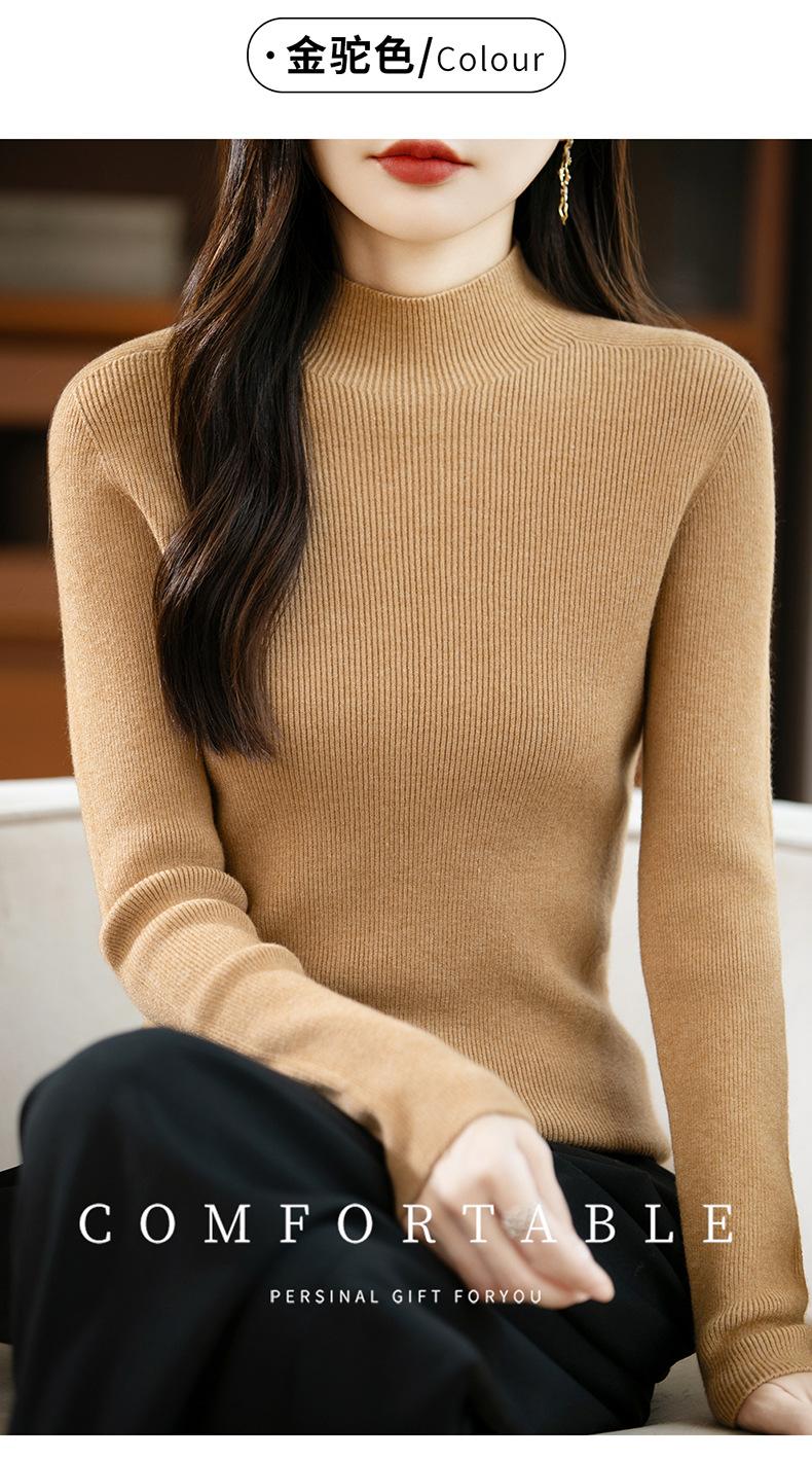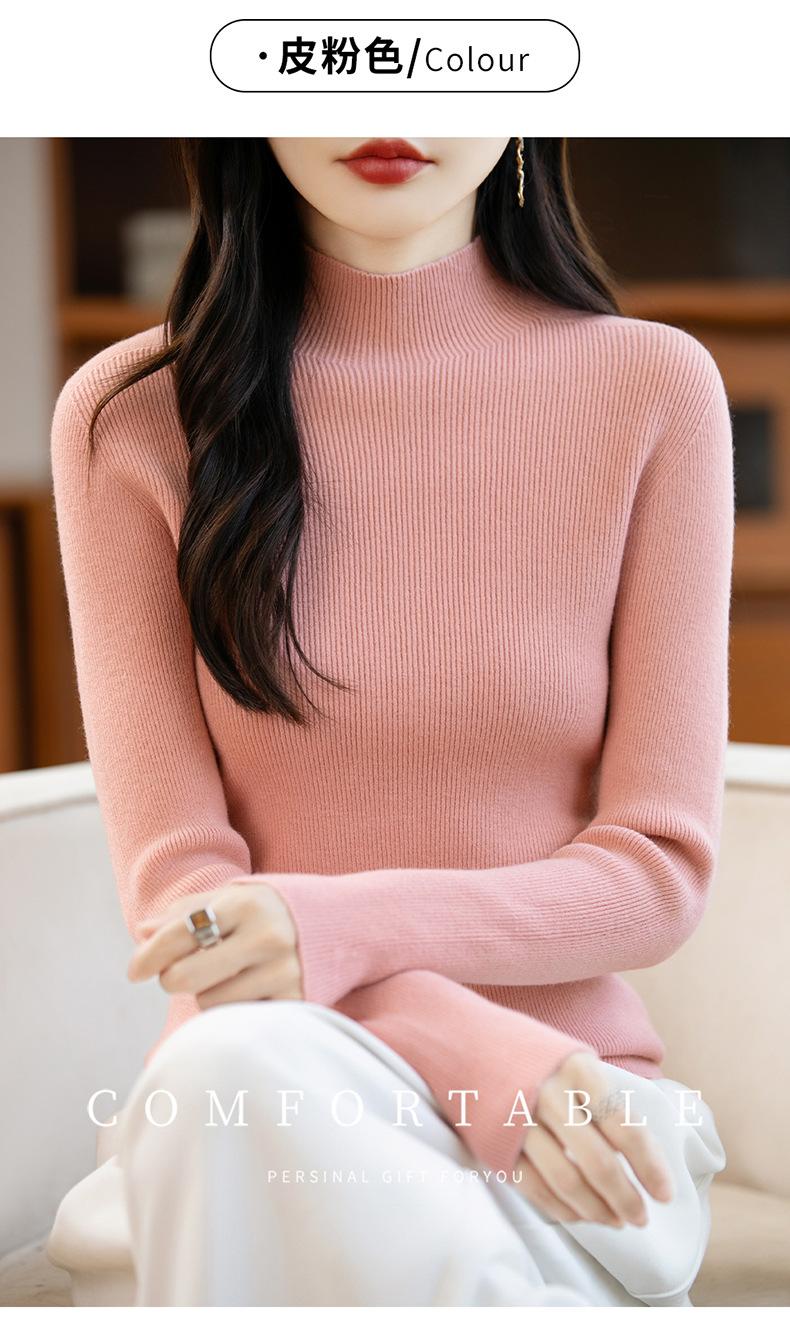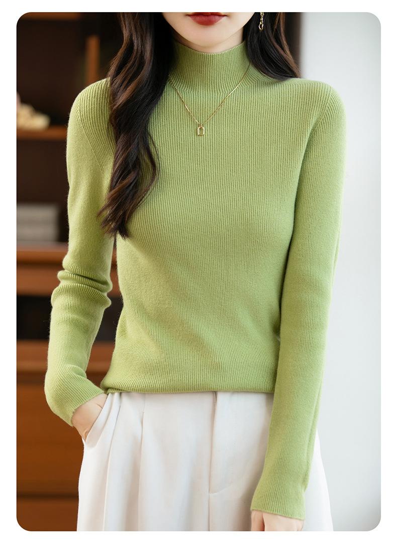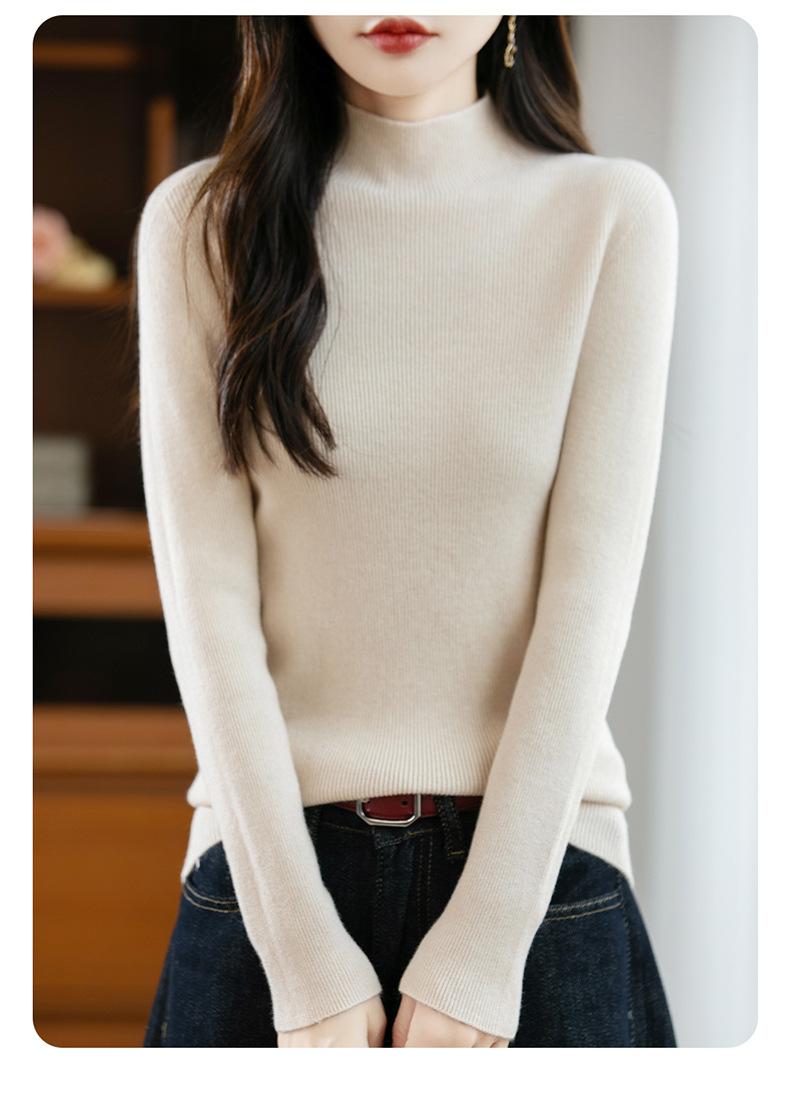 Suéter de Cuello Alto Ajustado Capa Interior Camiseta Base Tejida Otoño e Invierno Nuevo Sentido del Diseño Suéter Tejido