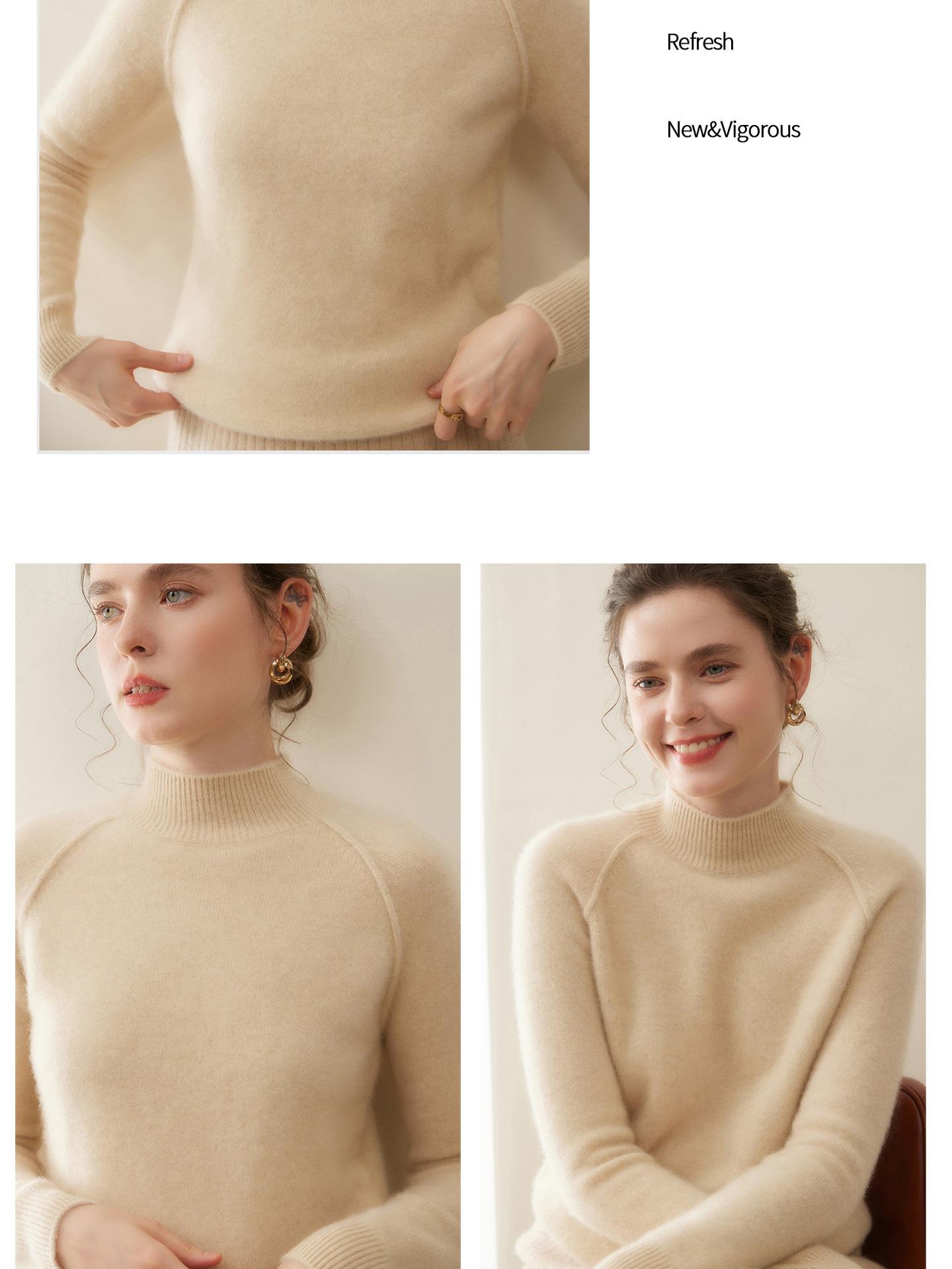 Compra Capa Base de Cachemira para Mujer Manga Larga Holgada Cálida Top Manga Raglán Tejido Versátil Cuello Medio Alto Suéter Interior Grueso al por mayor en Joom.pro