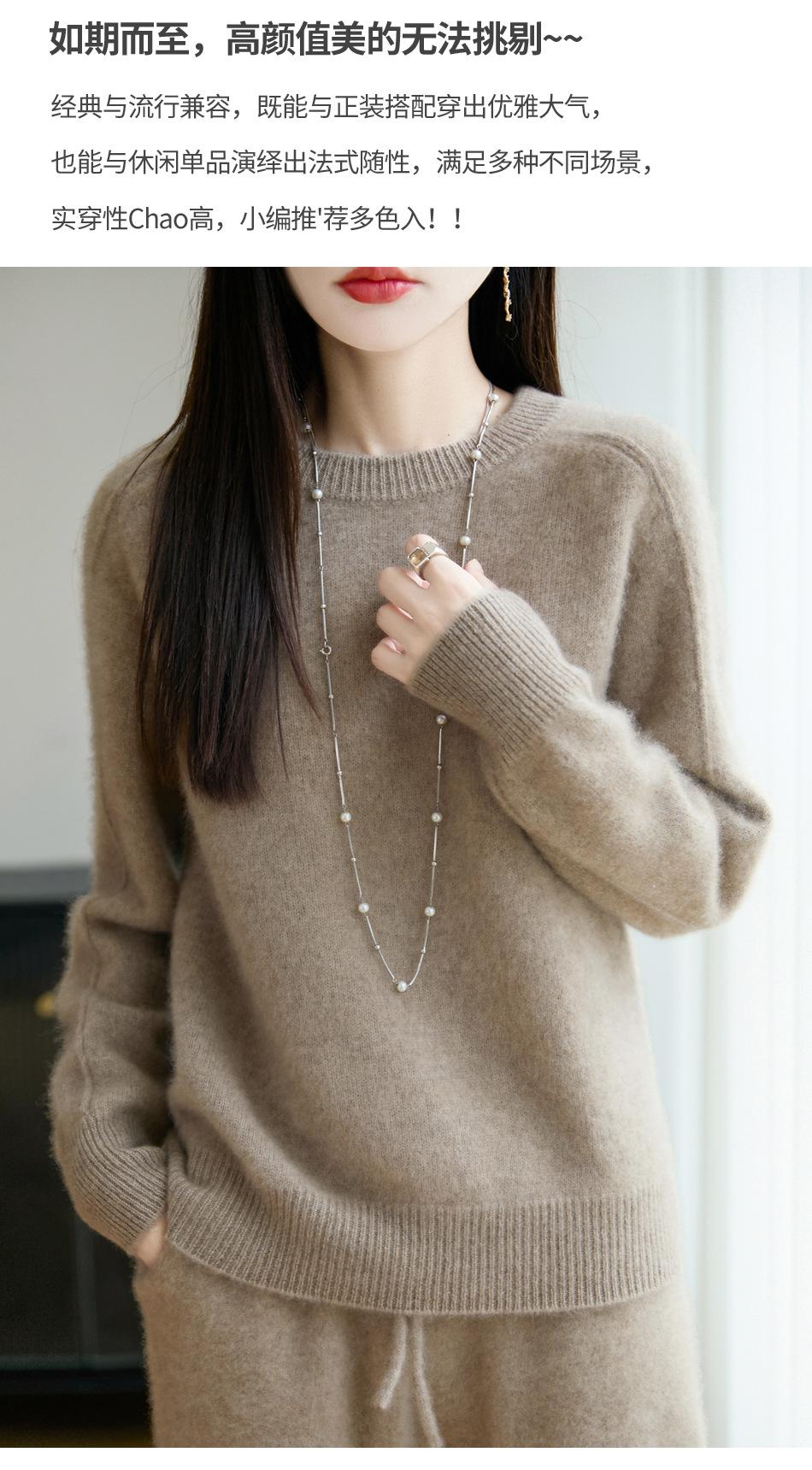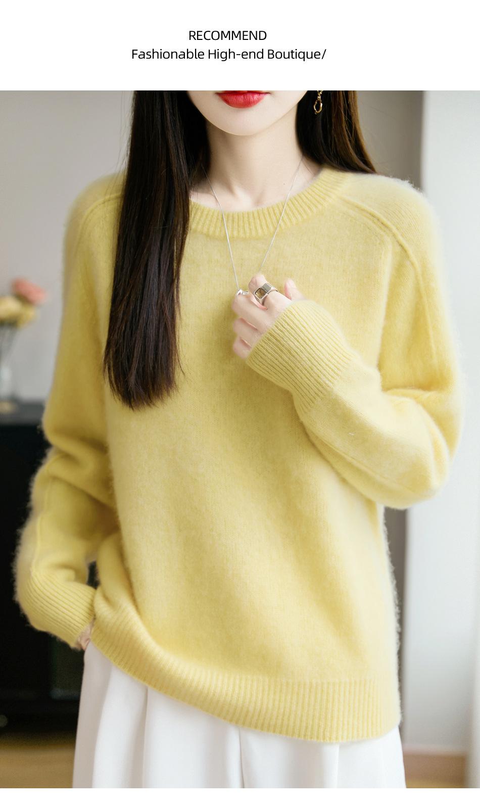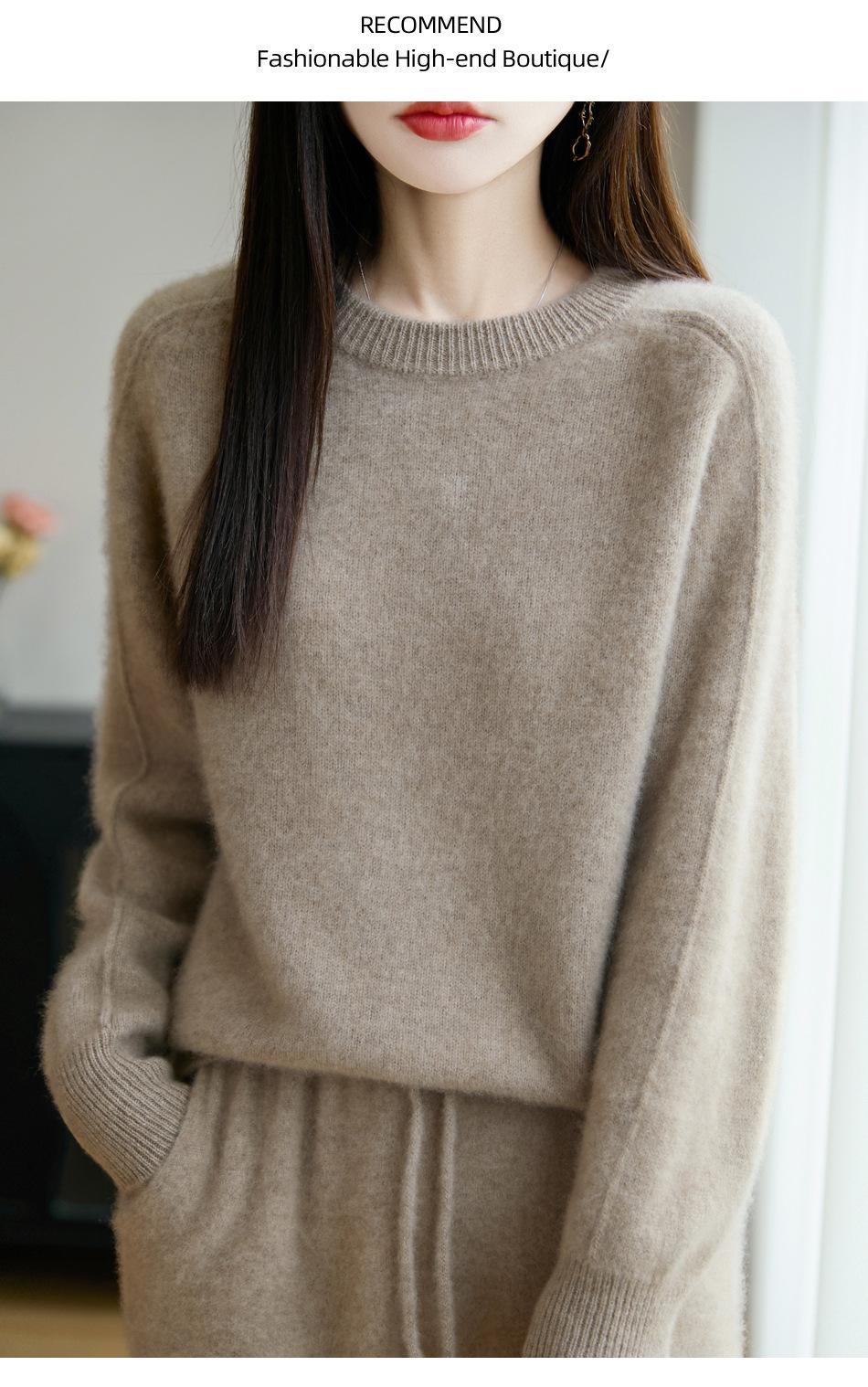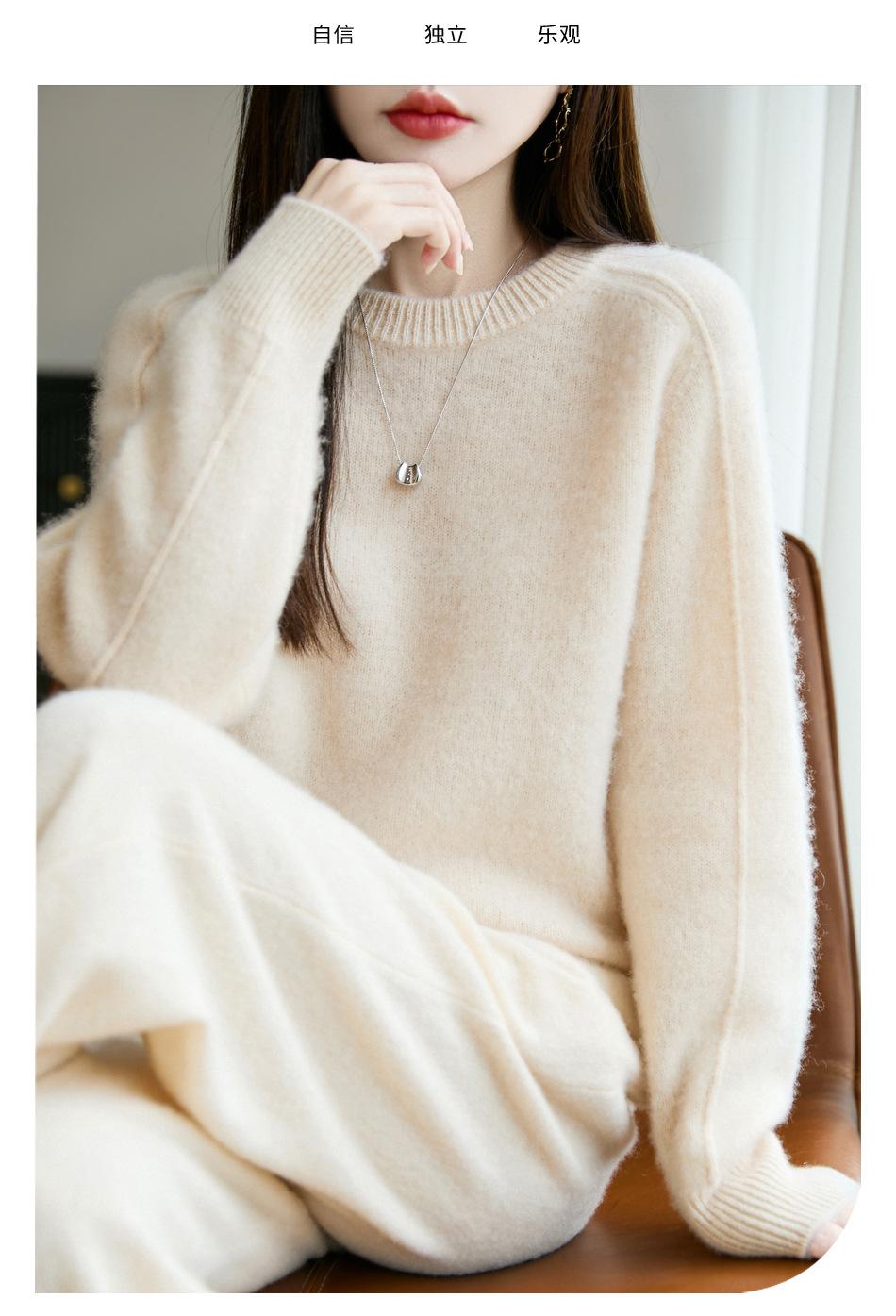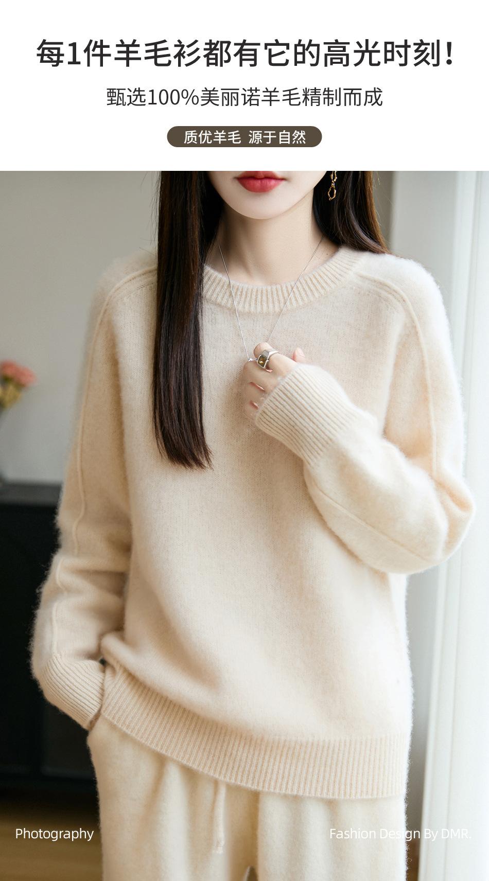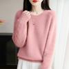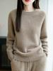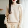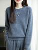 Suéter de Punto de Lana Pura Nuevo Estilo Otoño/Invierno 2025 para Mujer Cuello Redondo Color Sólido Pulóver Manga Larga Holgado Casual Capa Interior