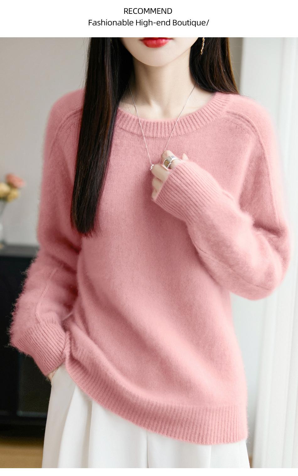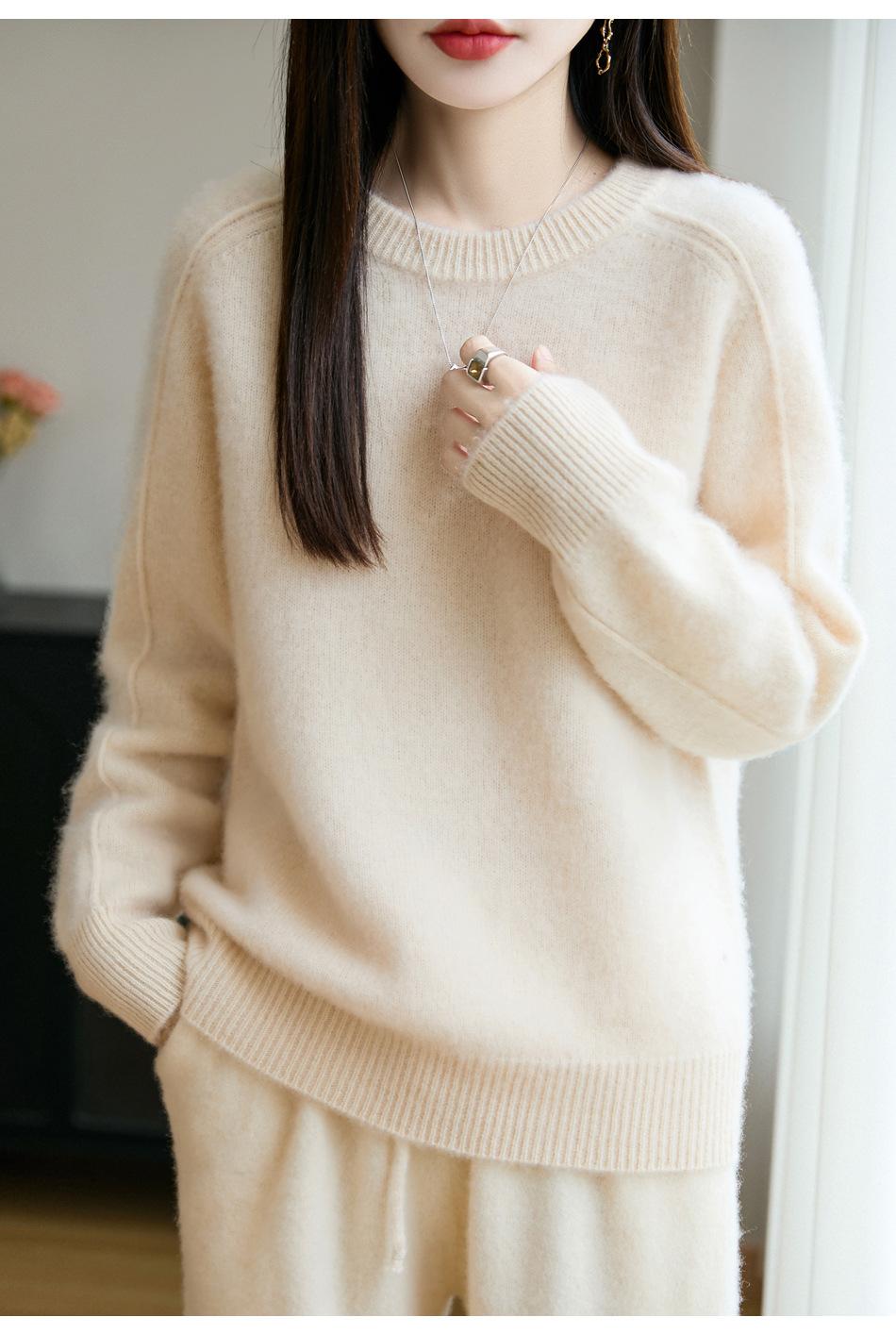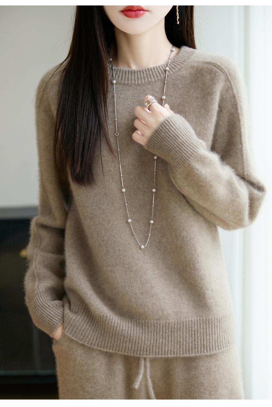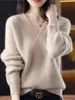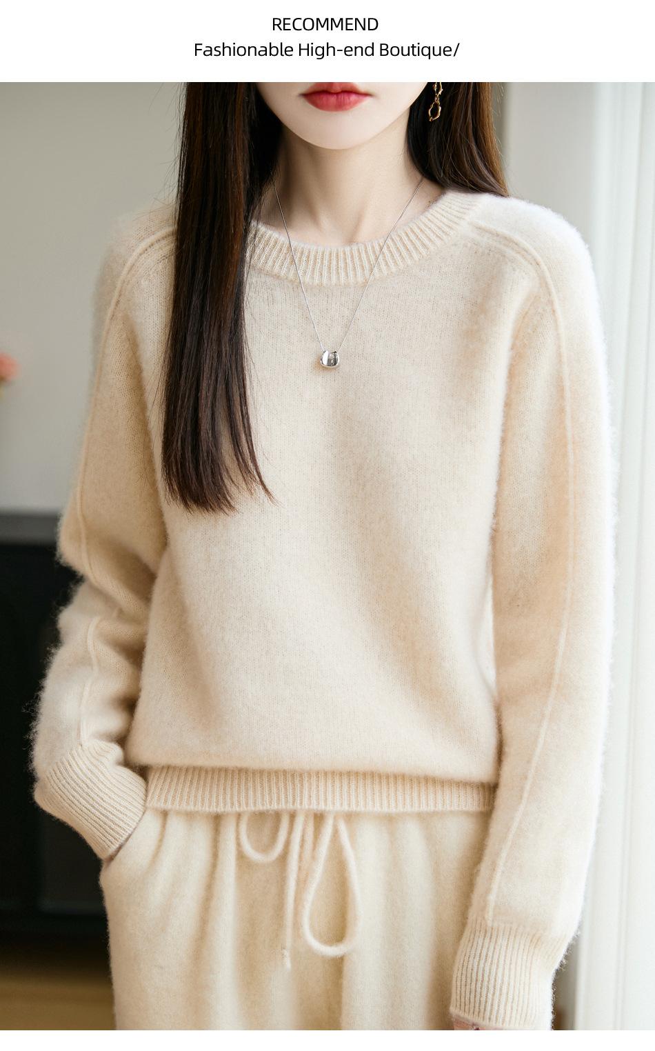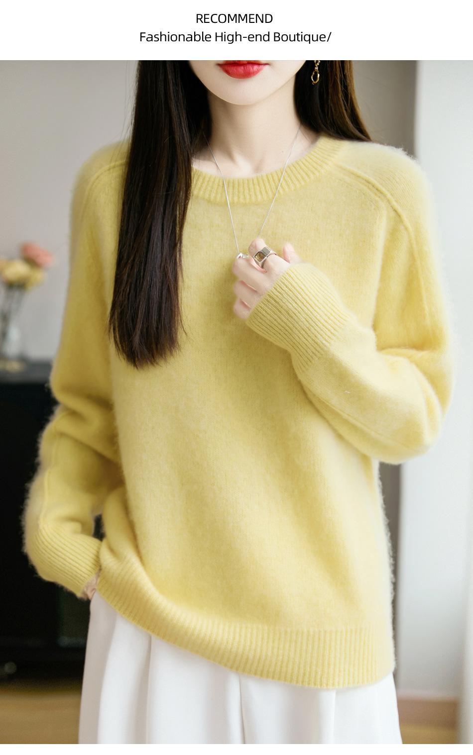 Suéter de Punto de Lana Pura Nuevo Estilo Otoño/Invierno 2025 para Mujer Cuello Redondo Color Sólido Pulóver Manga Larga Holgado Casual Capa Interior