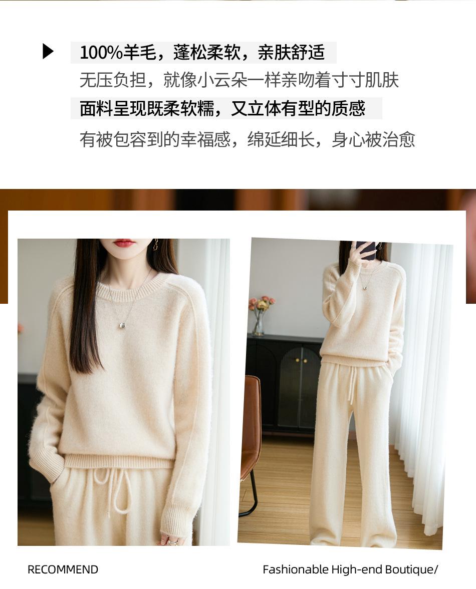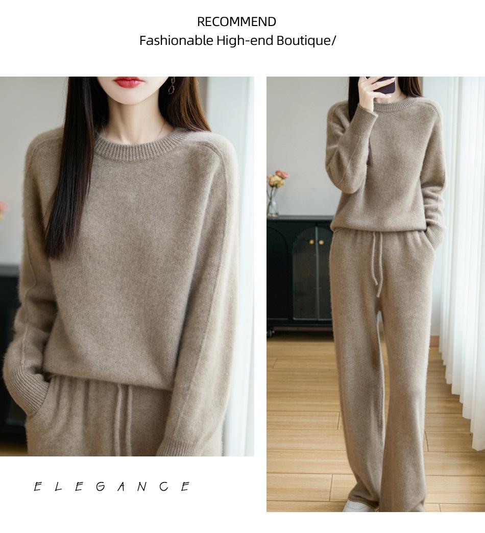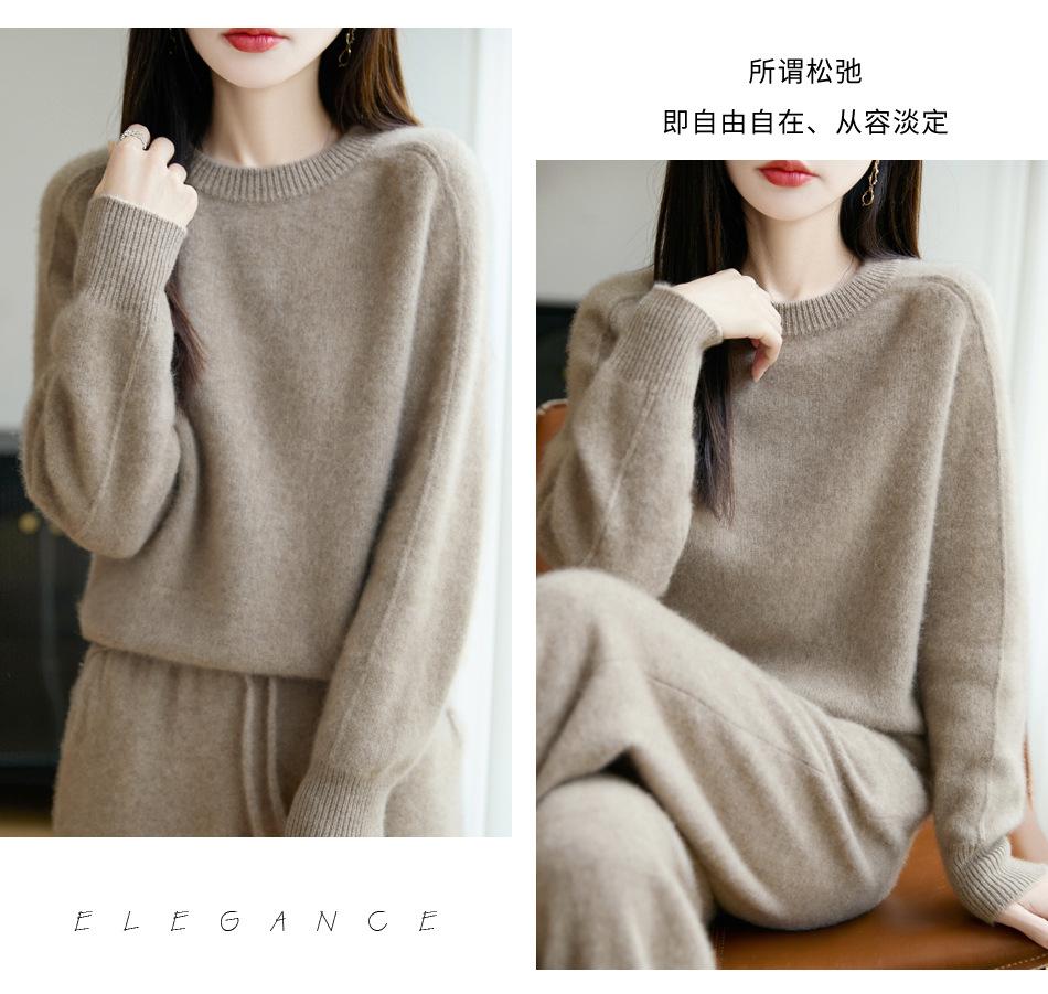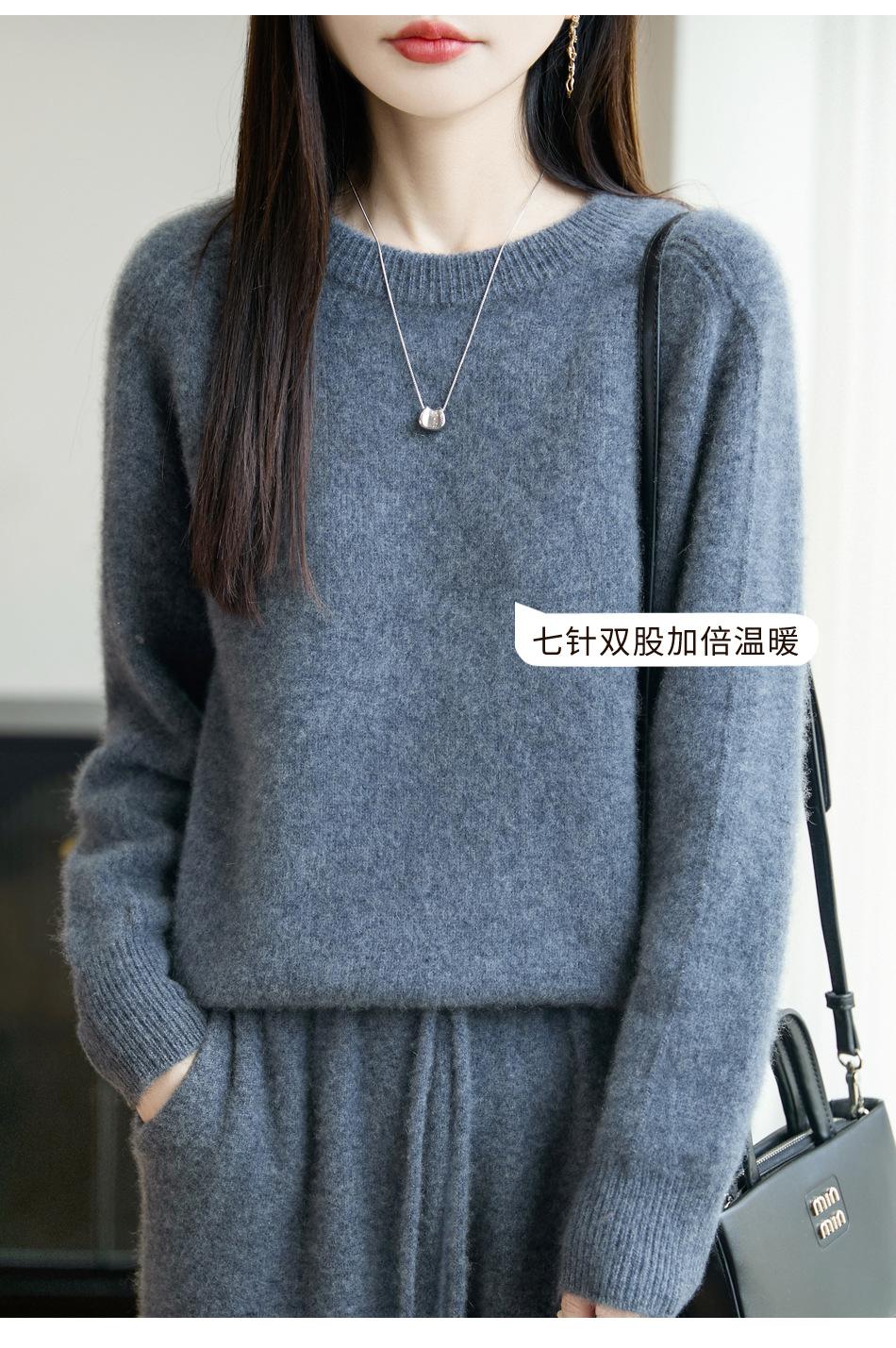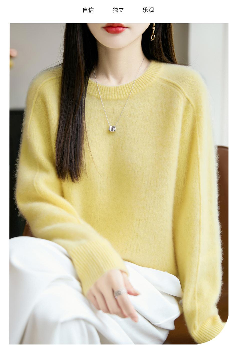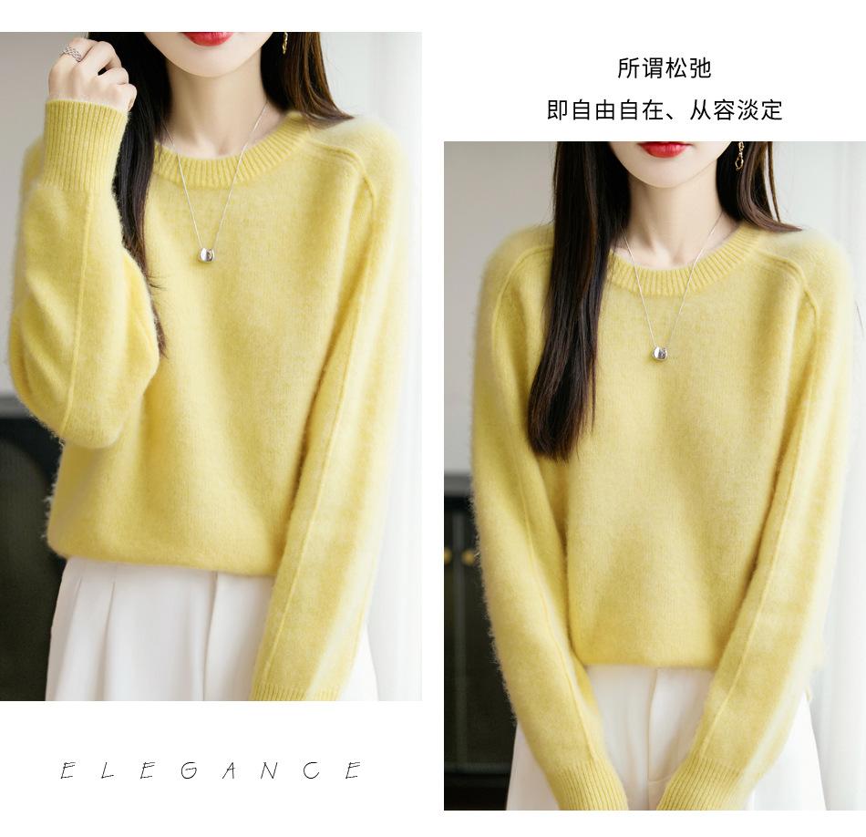 Suéter de Punto de Lana Pura Nuevo Estilo Otoño/Invierno 2025 para Mujer Cuello Redondo Color Sólido Pulóver Manga Larga Holgado Casual Capa Interior