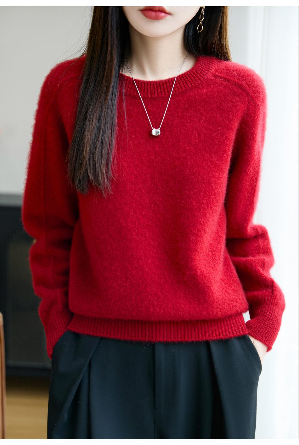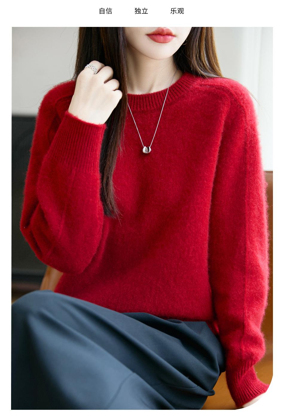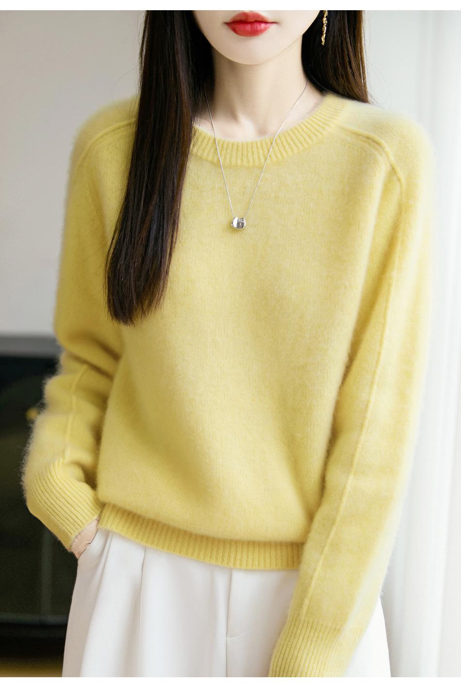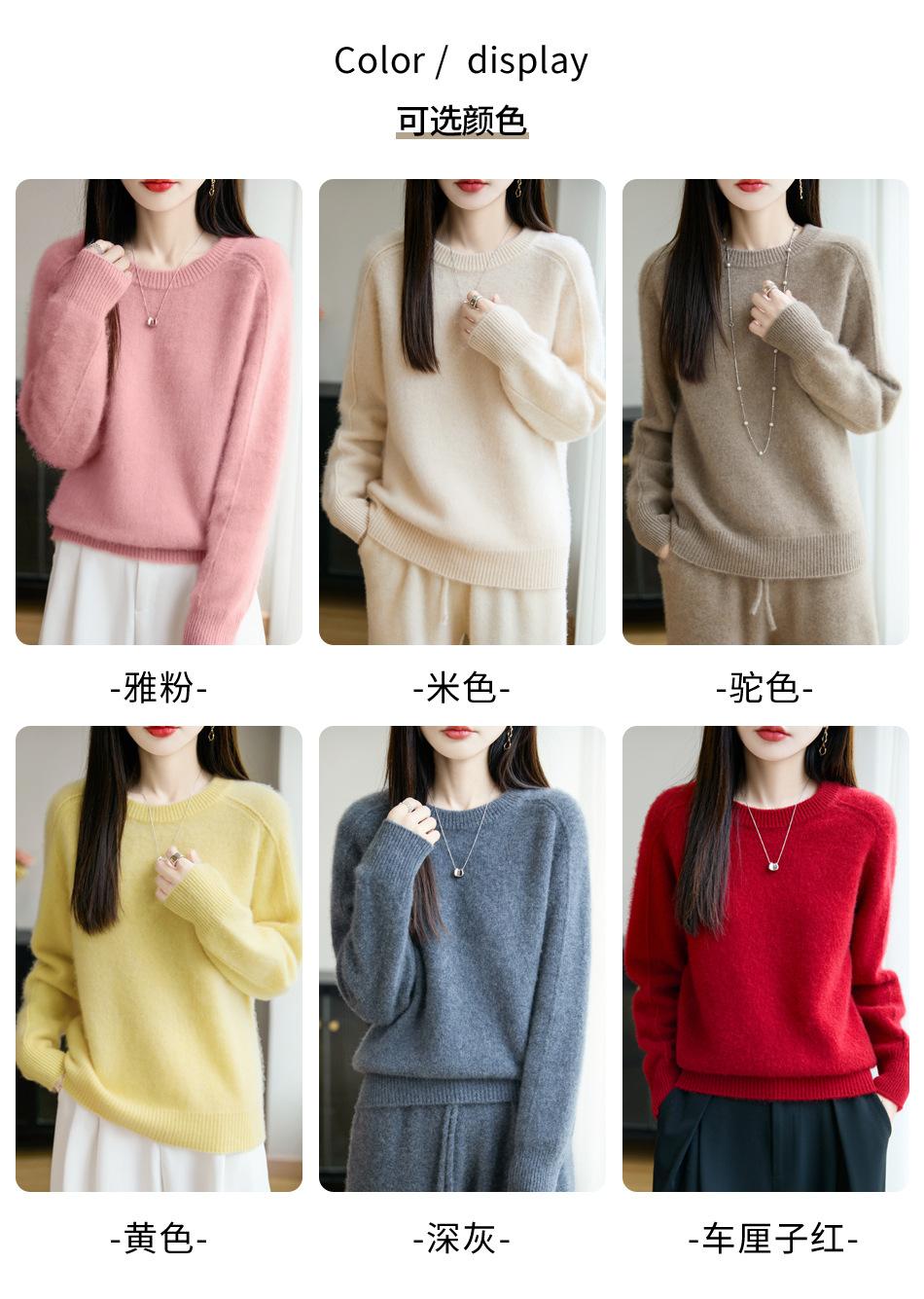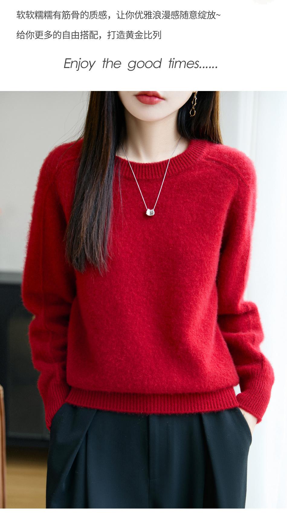 Suéter de Punto de Lana Pura Nuevo Estilo Otoño/Invierno 2025 para Mujer Cuello Redondo Color Sólido Pulóver Manga Larga Holgado Casual Capa Interior