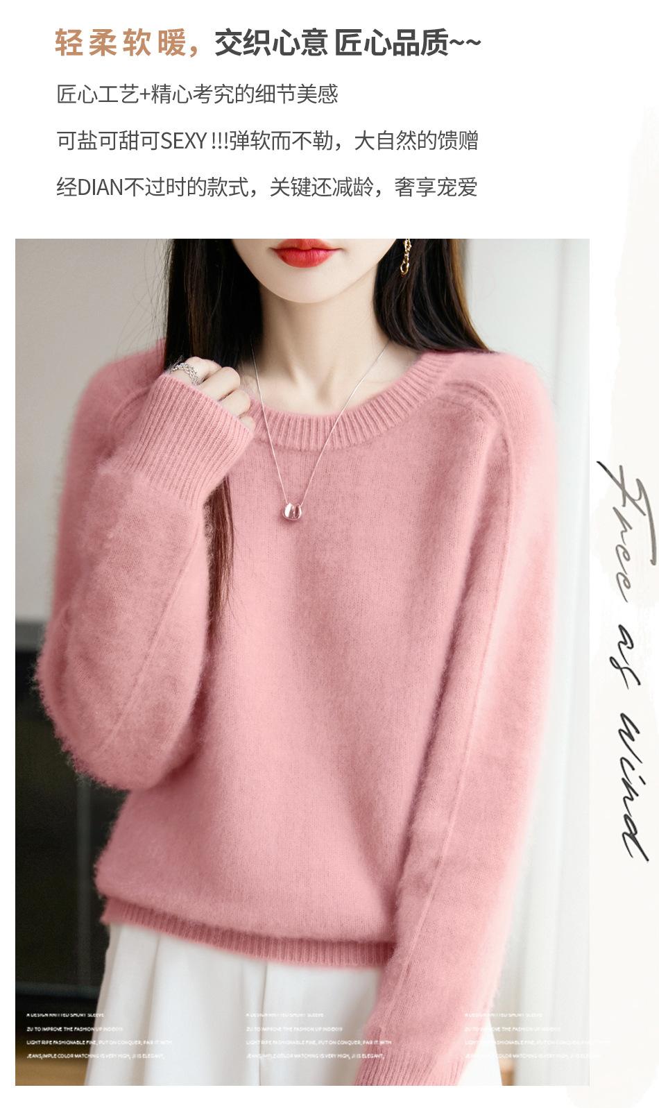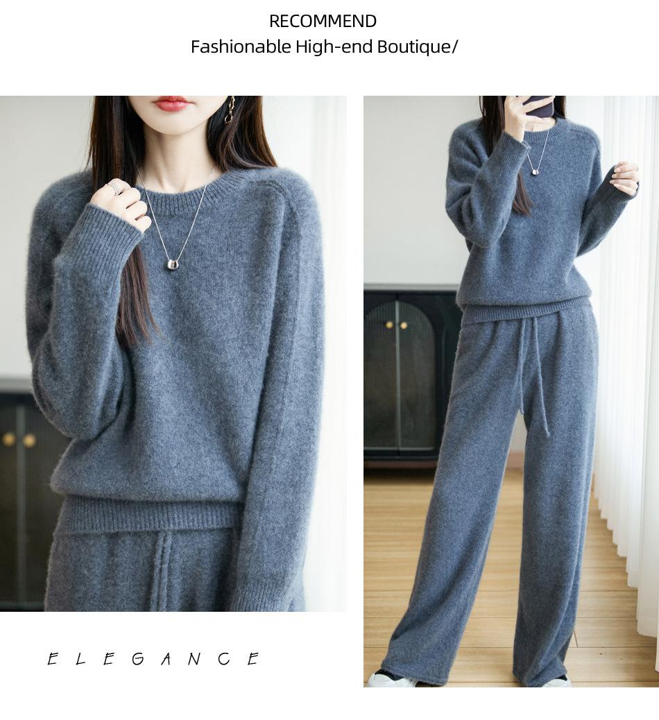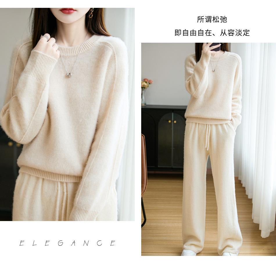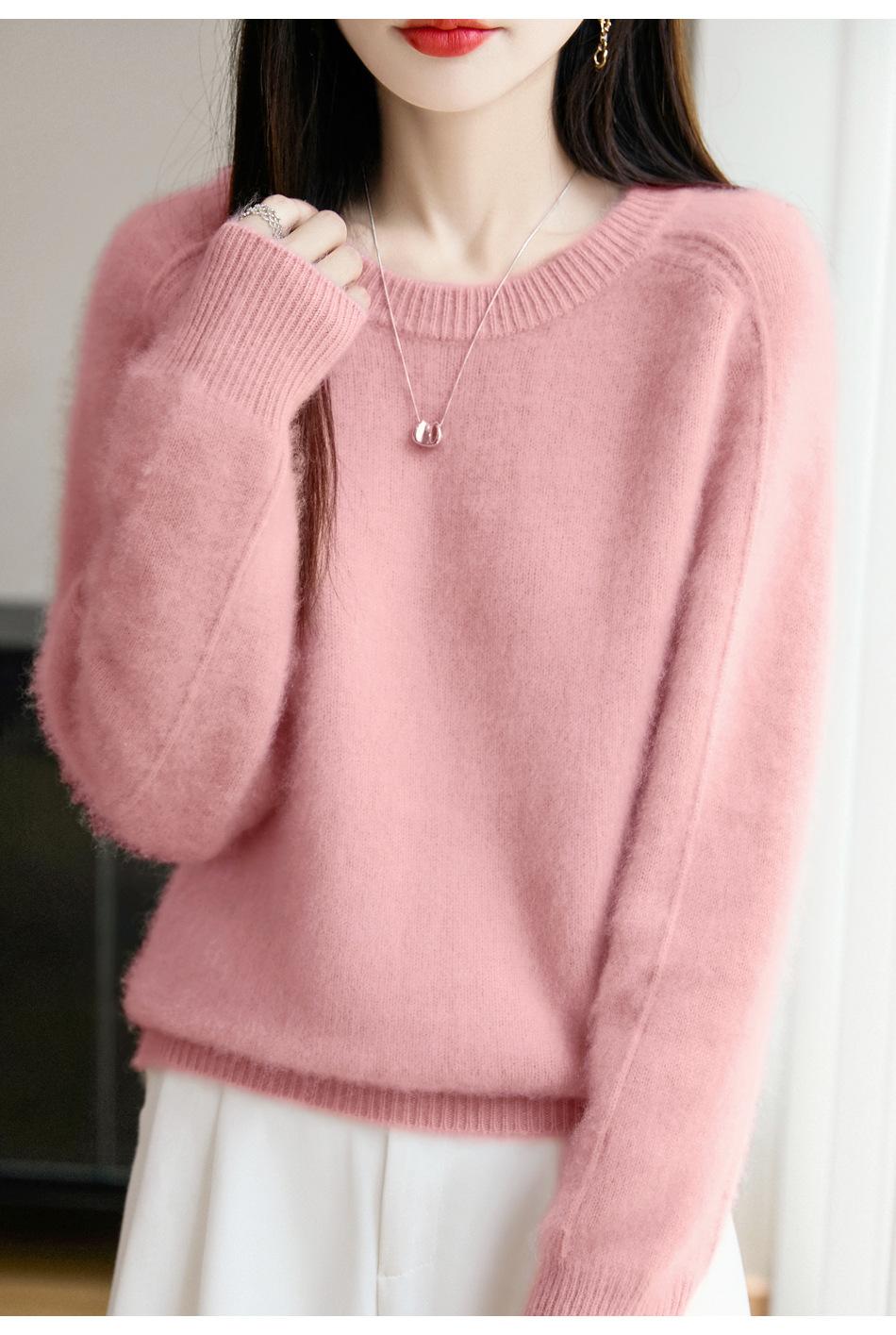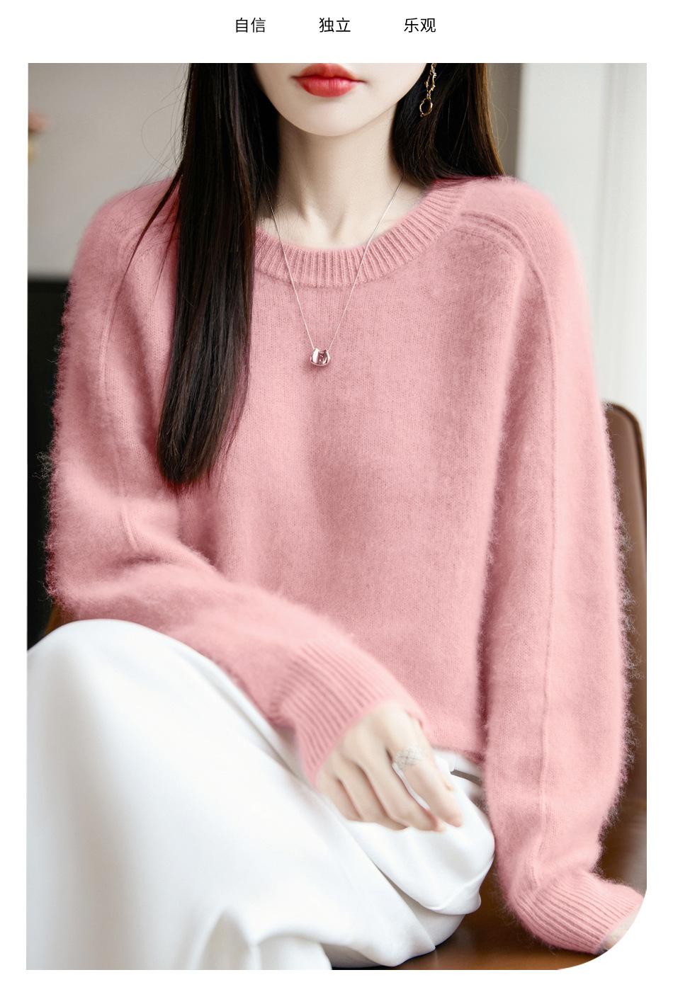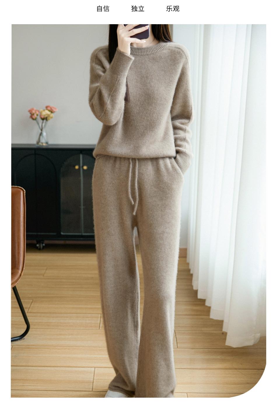Suéter de Punto de Lana Pura Nuevo Estilo Otoño/Invierno 2025 para Mujer Cuello Redondo Color Sólido Pulóver Manga Larga Holgado Casual Capa Interior