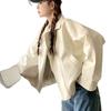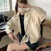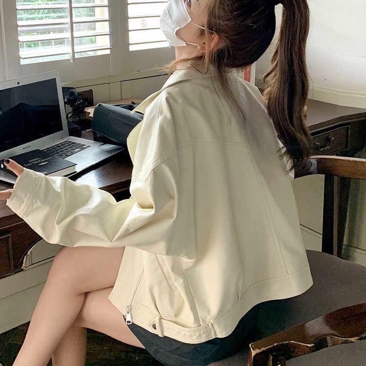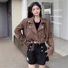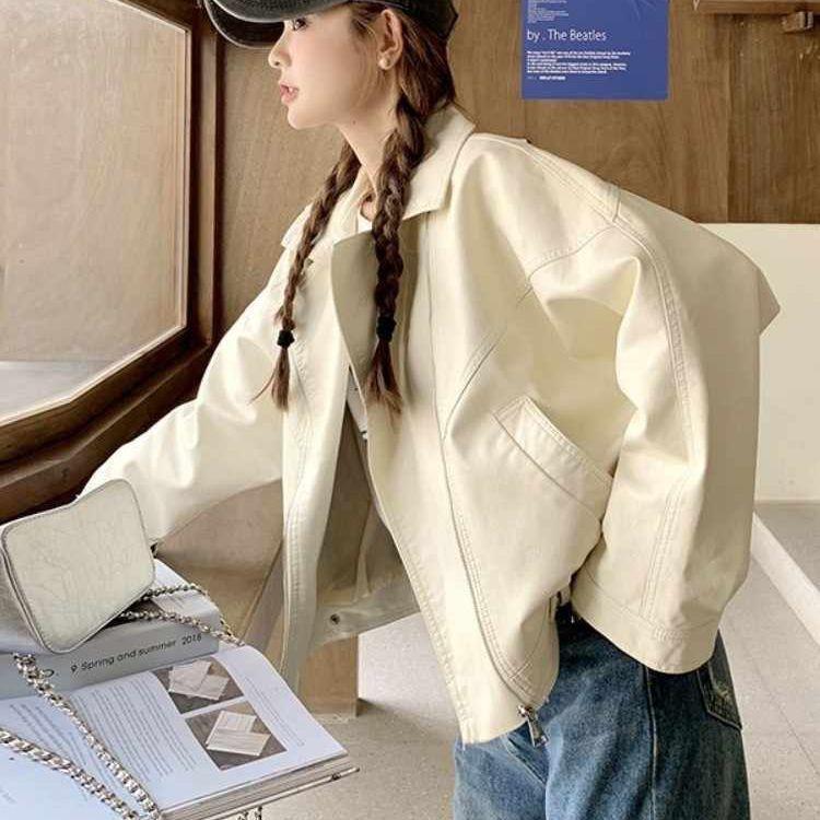 Chaqueta de cuero beige para mujer primavera y otoño 2025 nueva estilo retro americano estilo Hong Kong petite chaqueta de motociclista