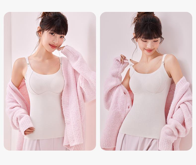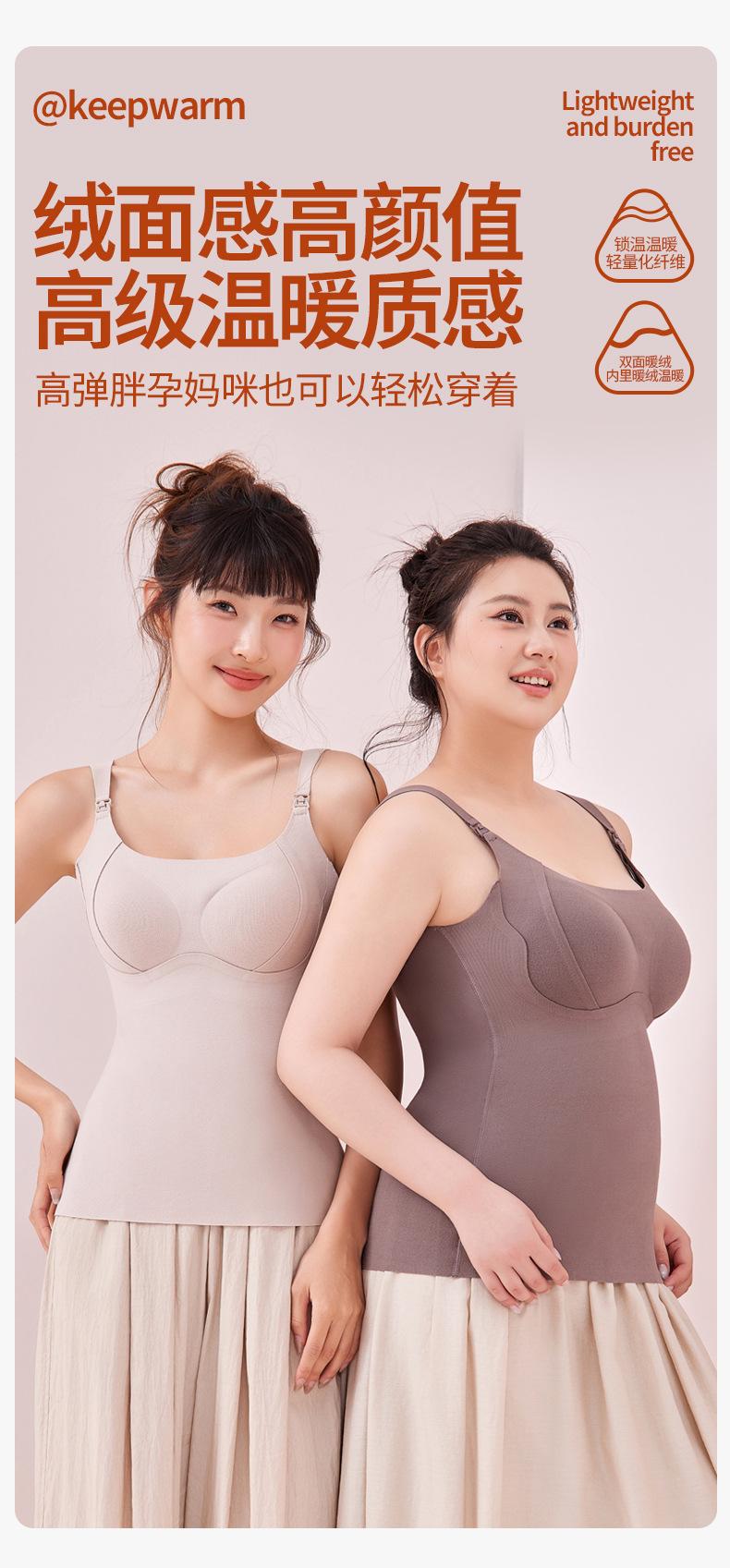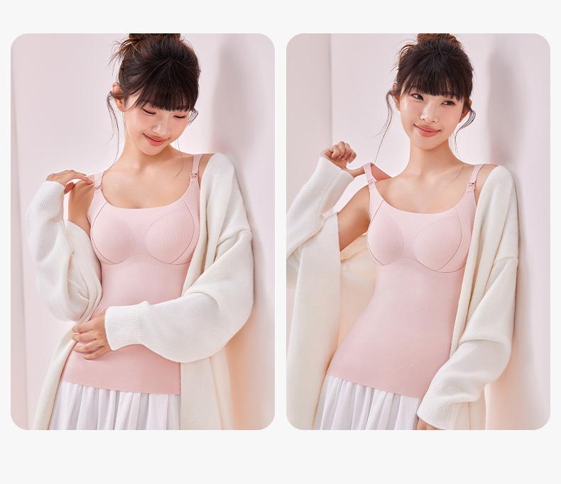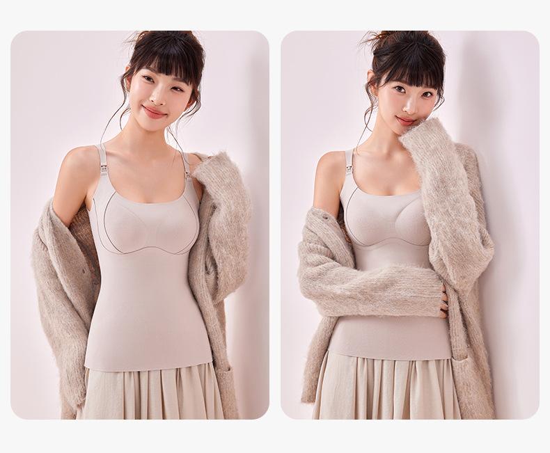 Chaleco cálido sin sujetador para mujeres embarazadas, estilo otoño e invierno, camisola especial de lactancia posparto con almohadillas en el pecho, top básico