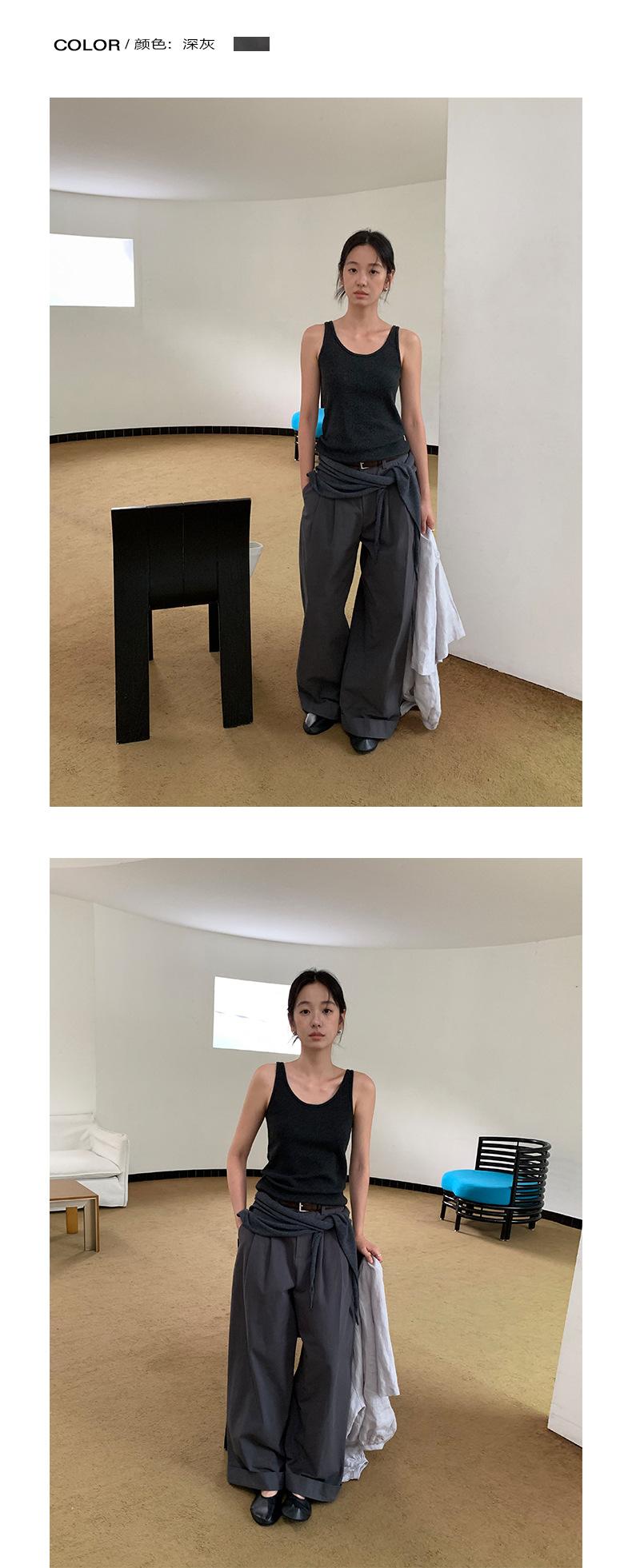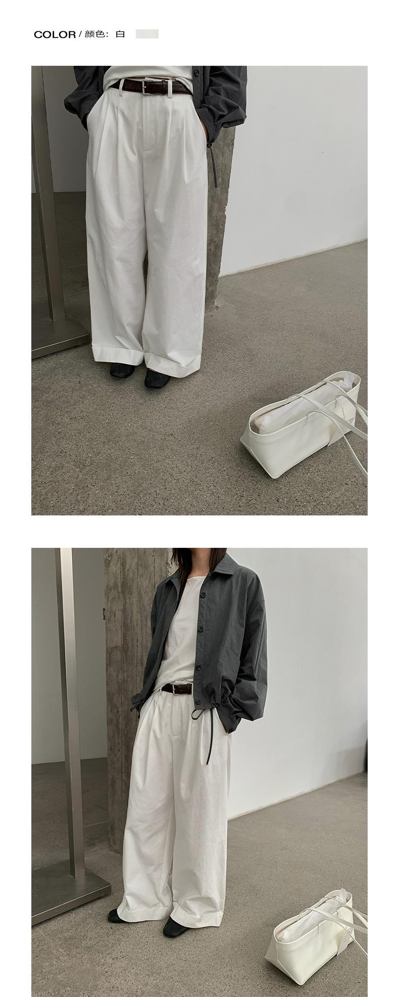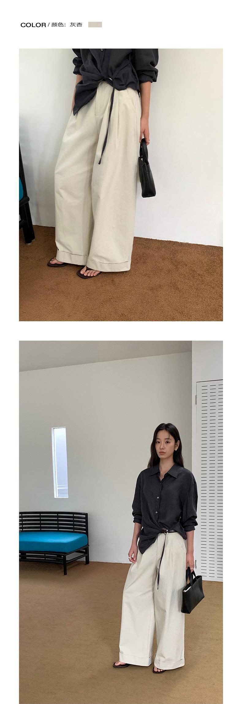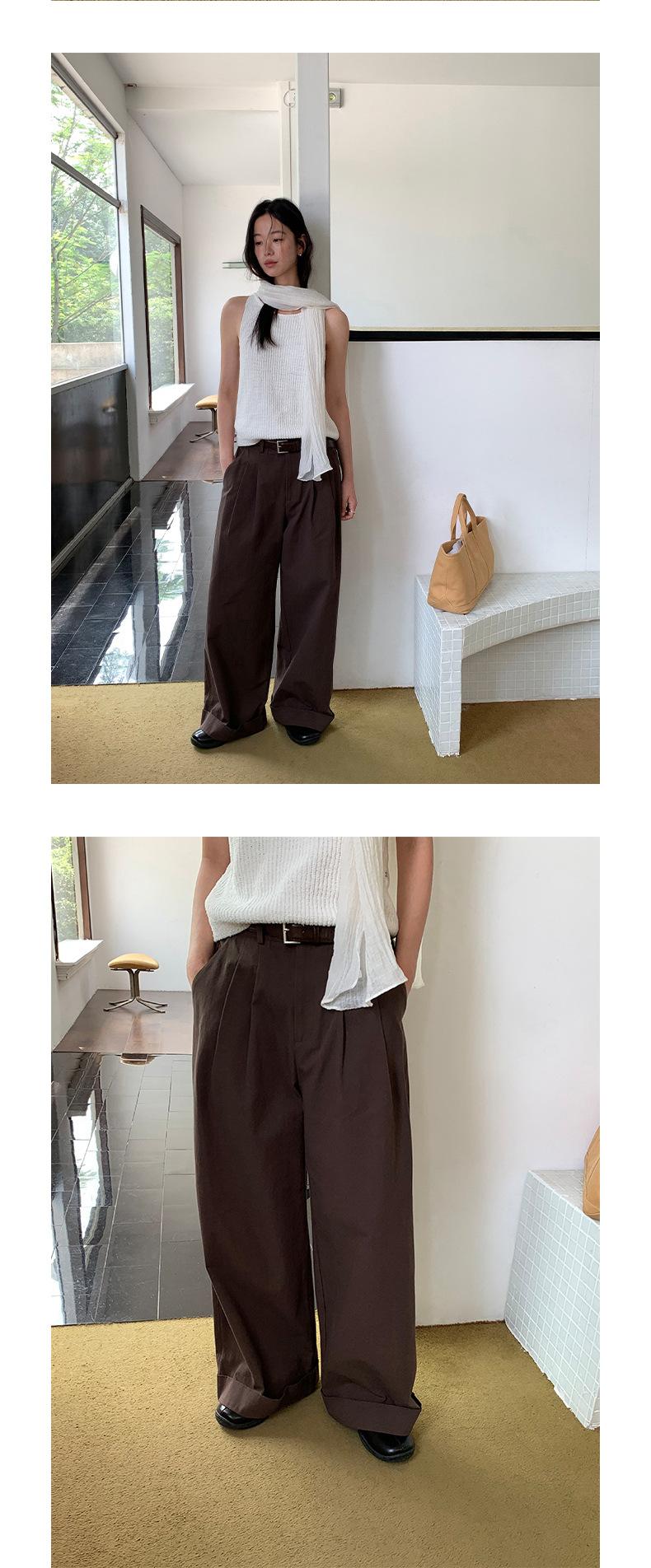 TG Serie Retro Chic Pantalones Casuales Cinturón Mujer 2025 Otoño Nuevo Cintura Alta Dobladillo Enrollado Pierna Ancha Pantalones Largos 25634