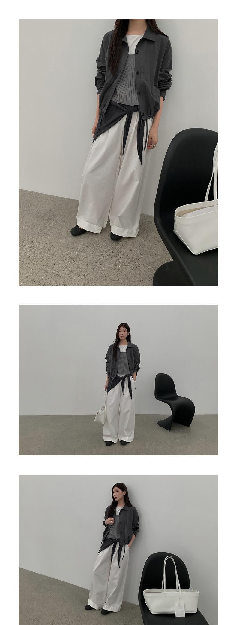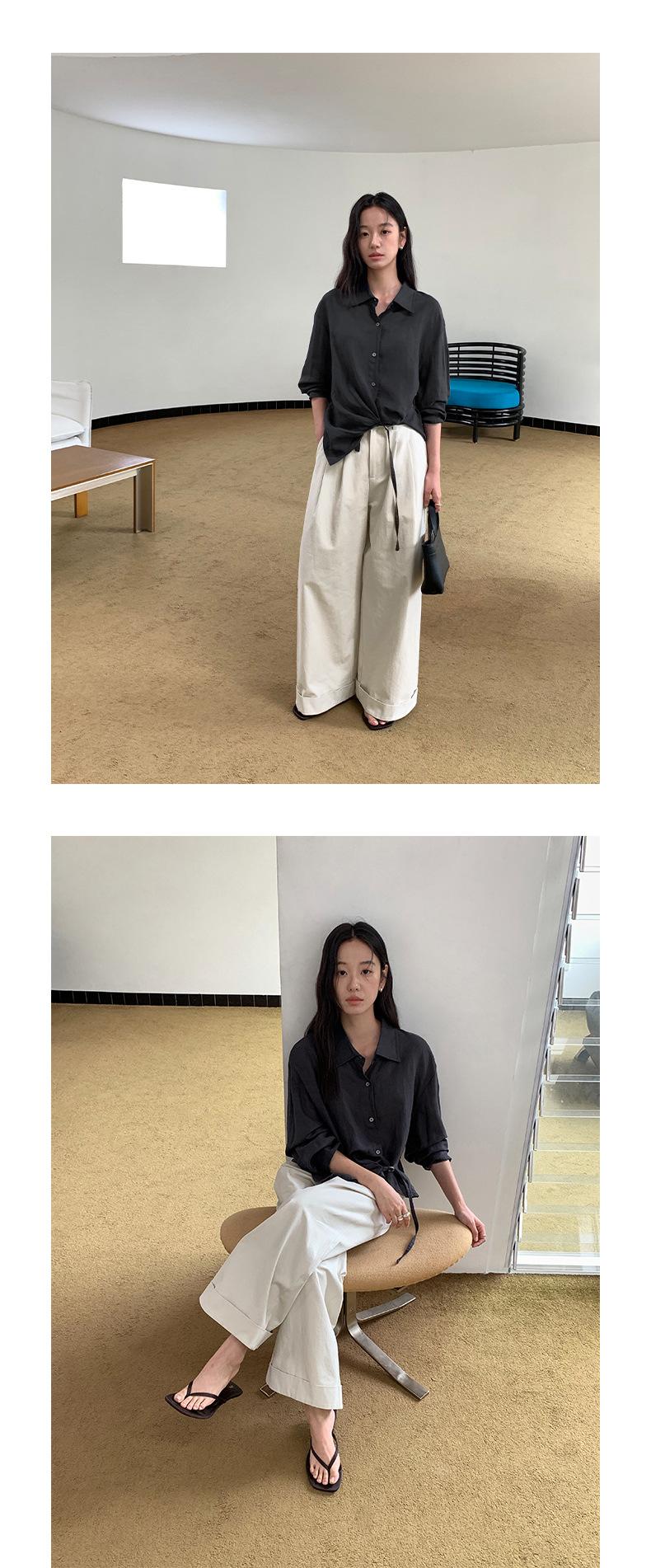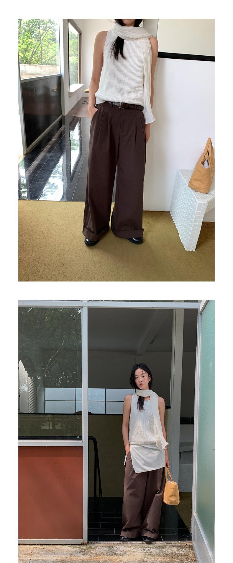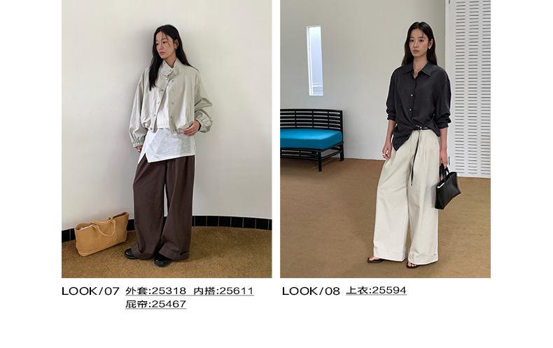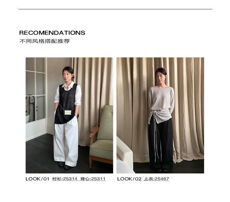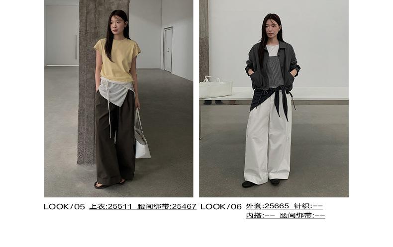 TG Serie Retro Chic Pantalones Casuales Cinturón Mujer 2025 Otoño Nuevo Cintura Alta Dobladillo Enrollado Pierna Ancha Pantalones Largos 25634