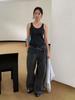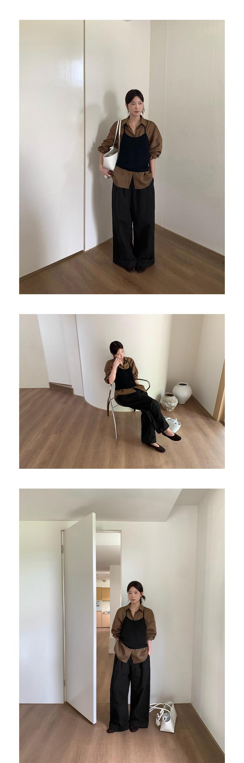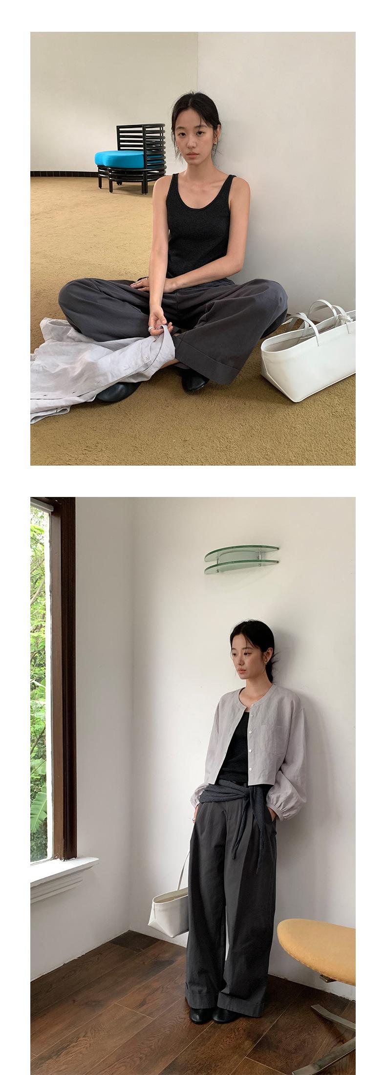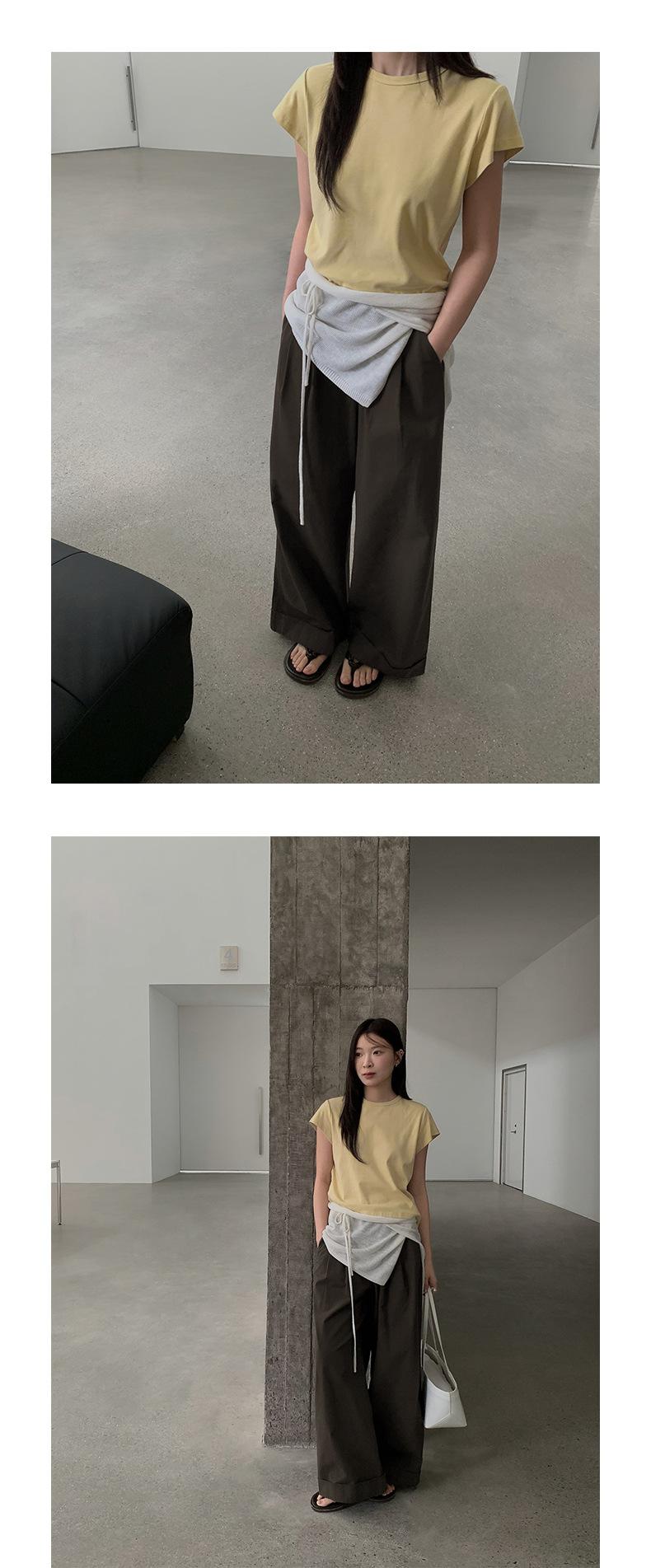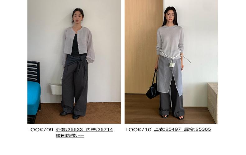 TG Serie Retro Chic Pantalones Casuales Cinturón Mujer 2025 Otoño Nuevo Cintura Alta Dobladillo Enrollado Pierna Ancha Pantalones Largos 25634