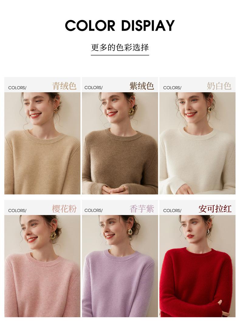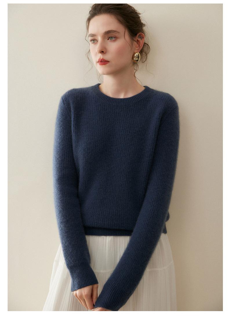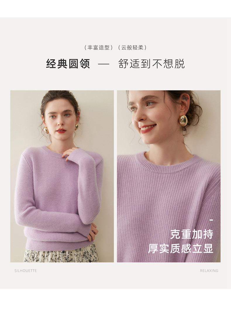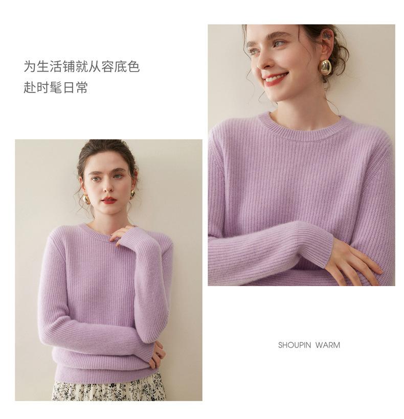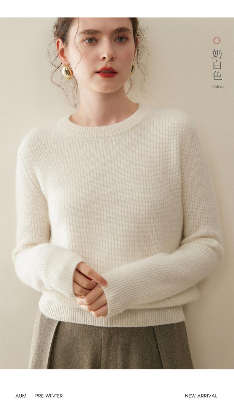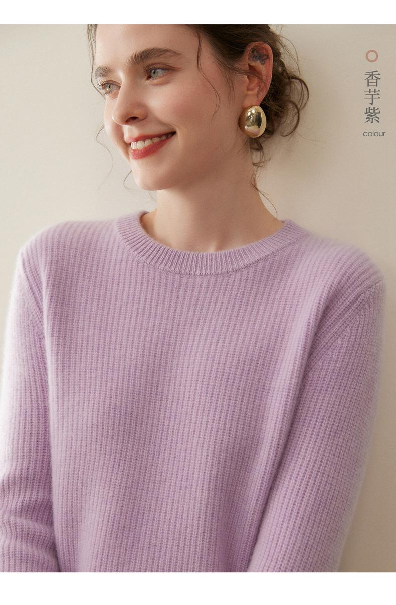 Nuevo Suéter de Punto de Cuello Redondo Grueso 100% Cachemira Otoño/Invierno para Mujer, Punto Canalé, Holgado, Versátil, Adelgazante