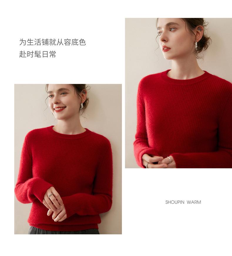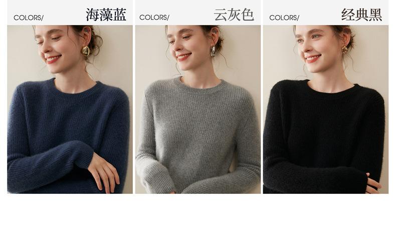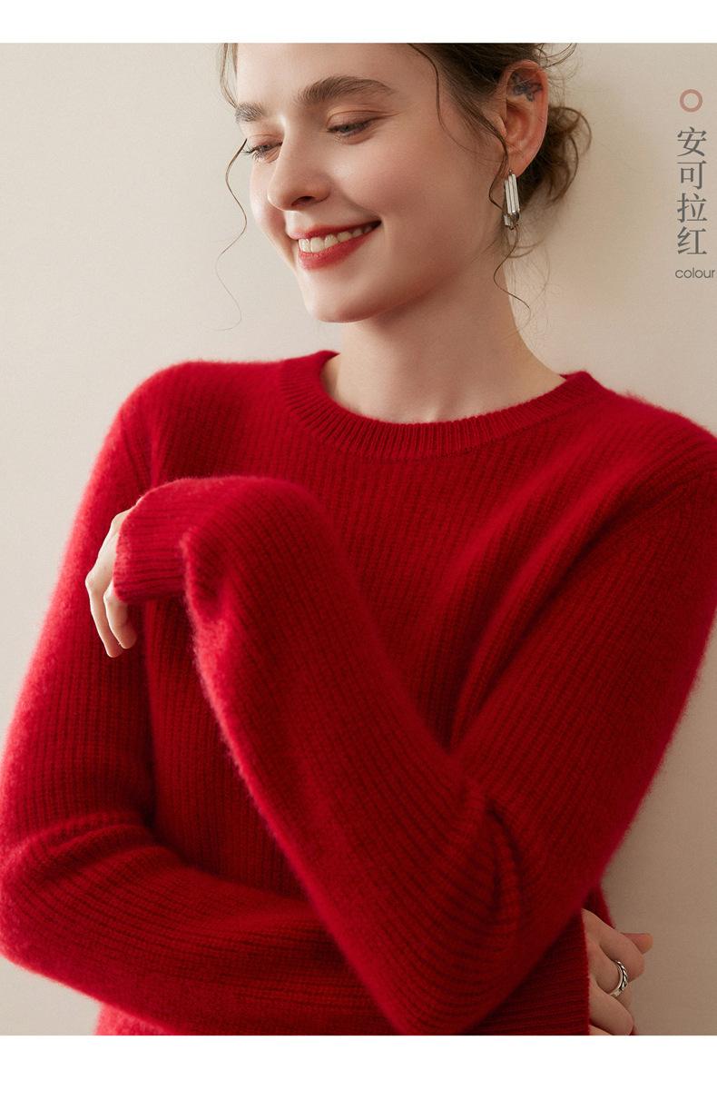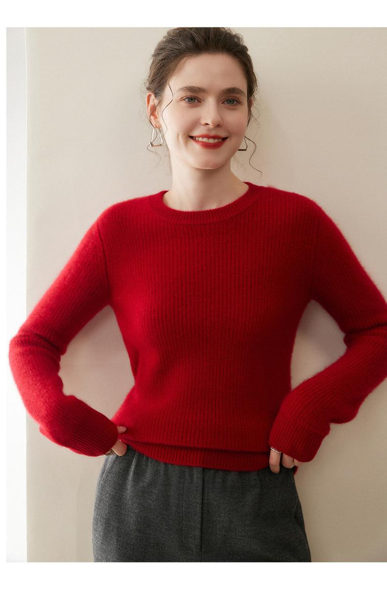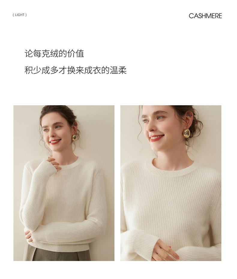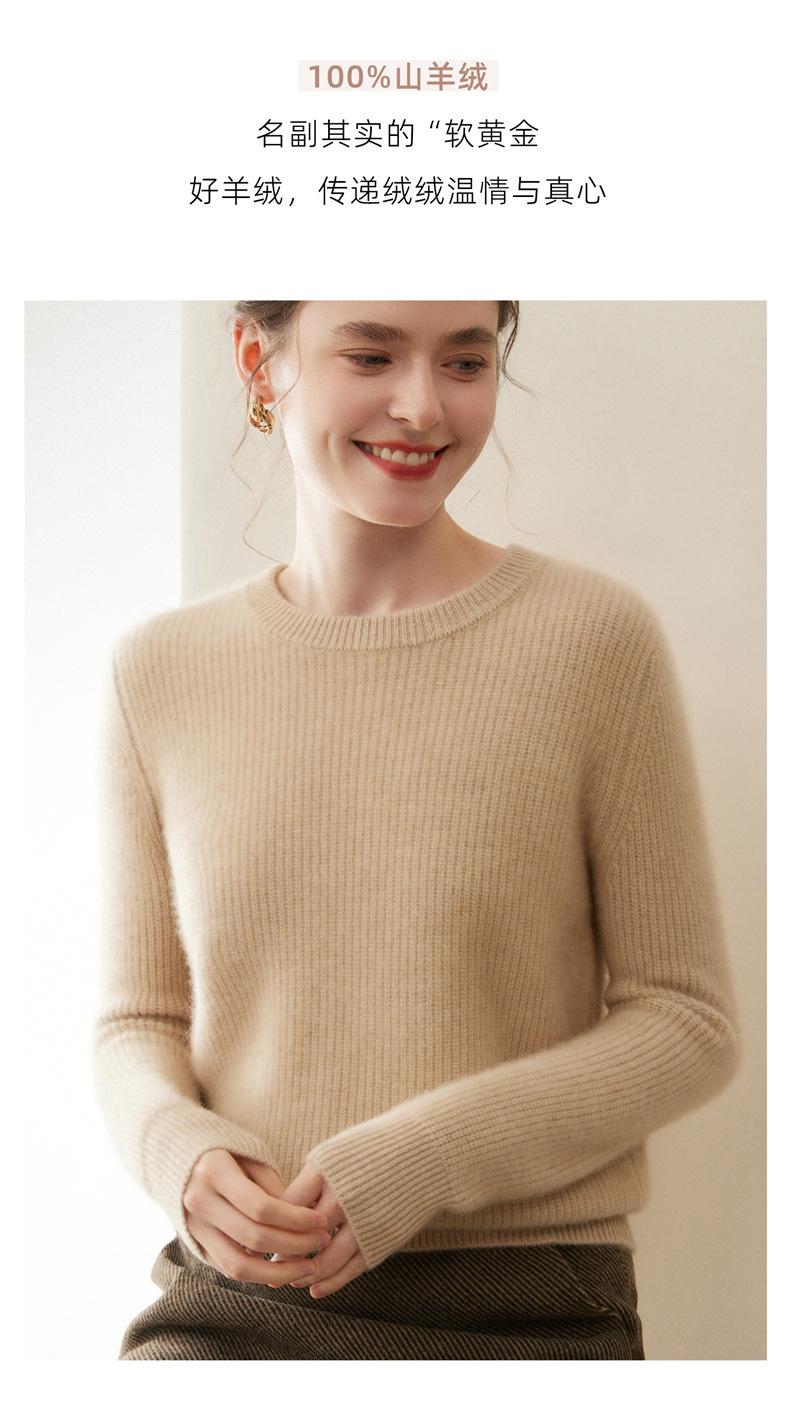 Nuevo Suéter de Punto de Cuello Redondo Grueso 100% Cachemira Otoño/Invierno para Mujer, Punto Canalé, Holgado, Versátil, Adelgazante