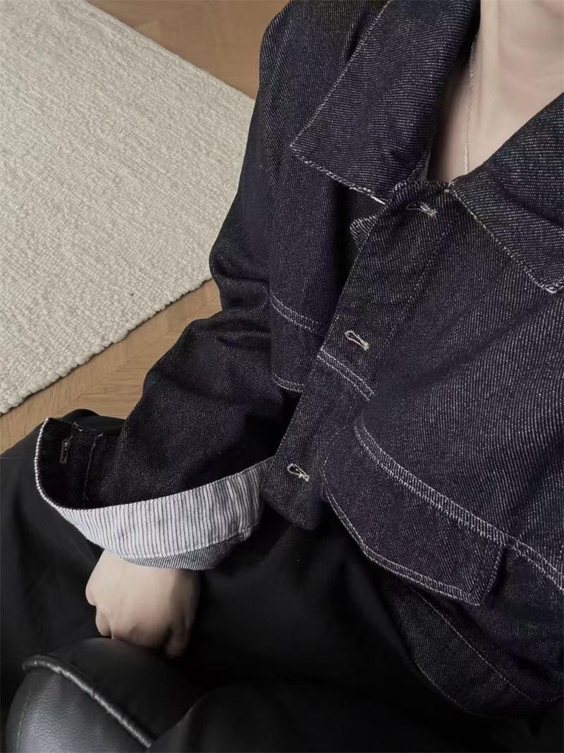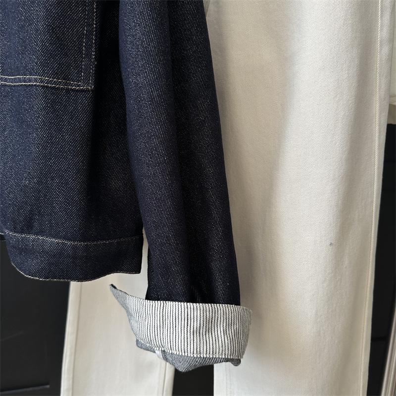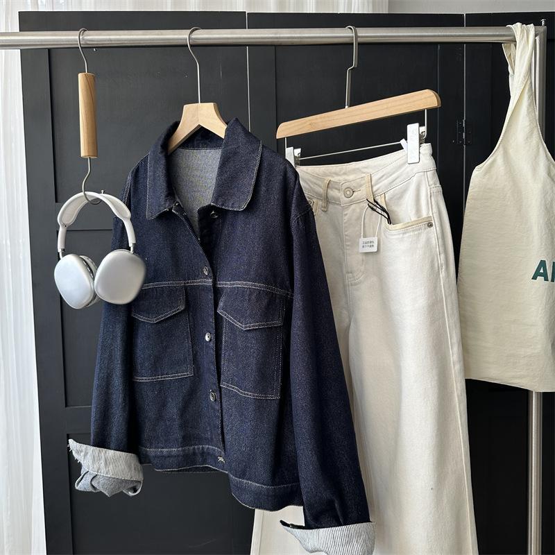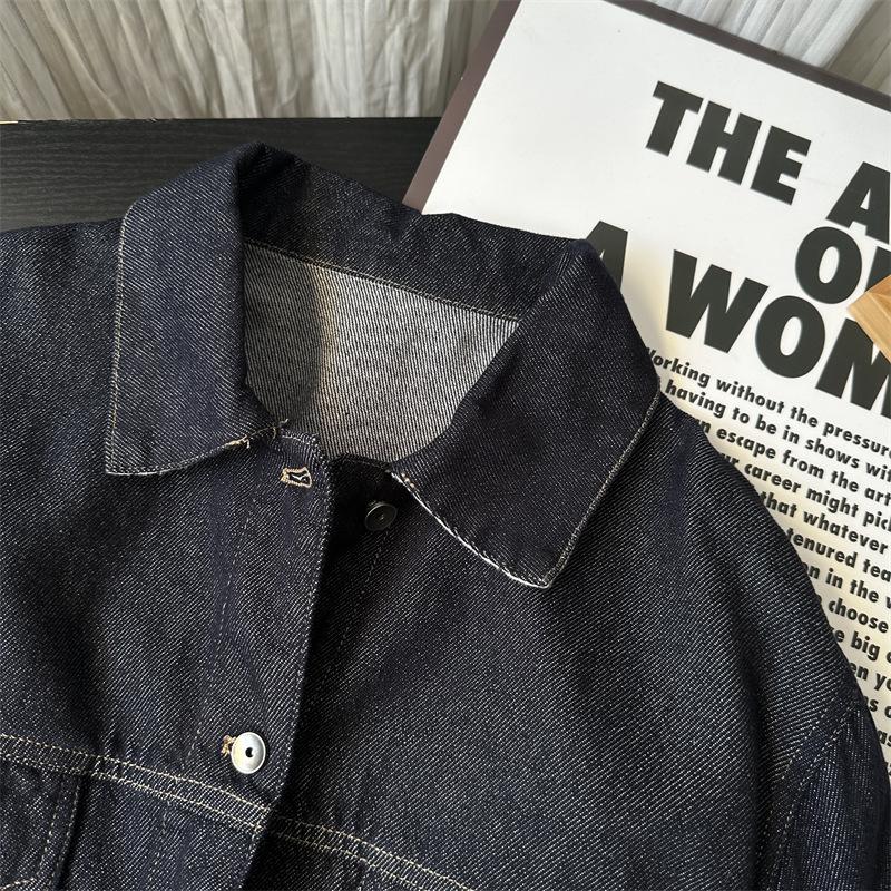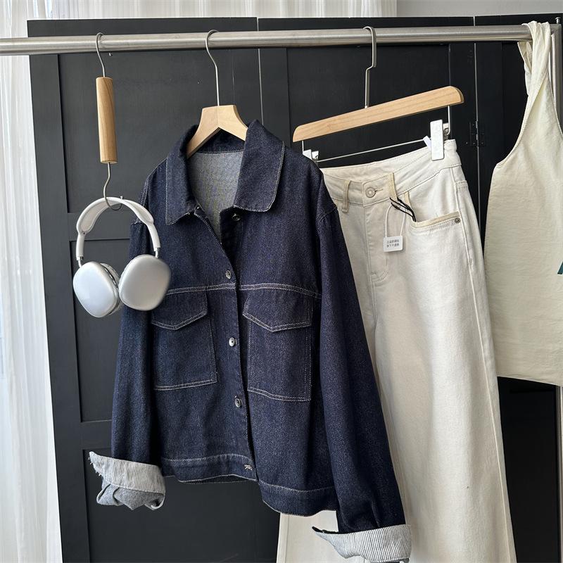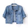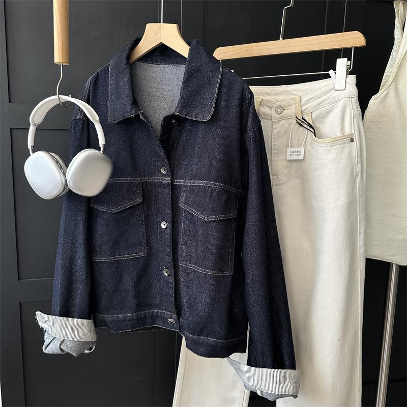 Chaqueta corta básica de mezclilla versátil estilo coreano para mujer, patchwork de cuadros verticales, nueva chaqueta abrigo adelgazante casual para primavera y otoño